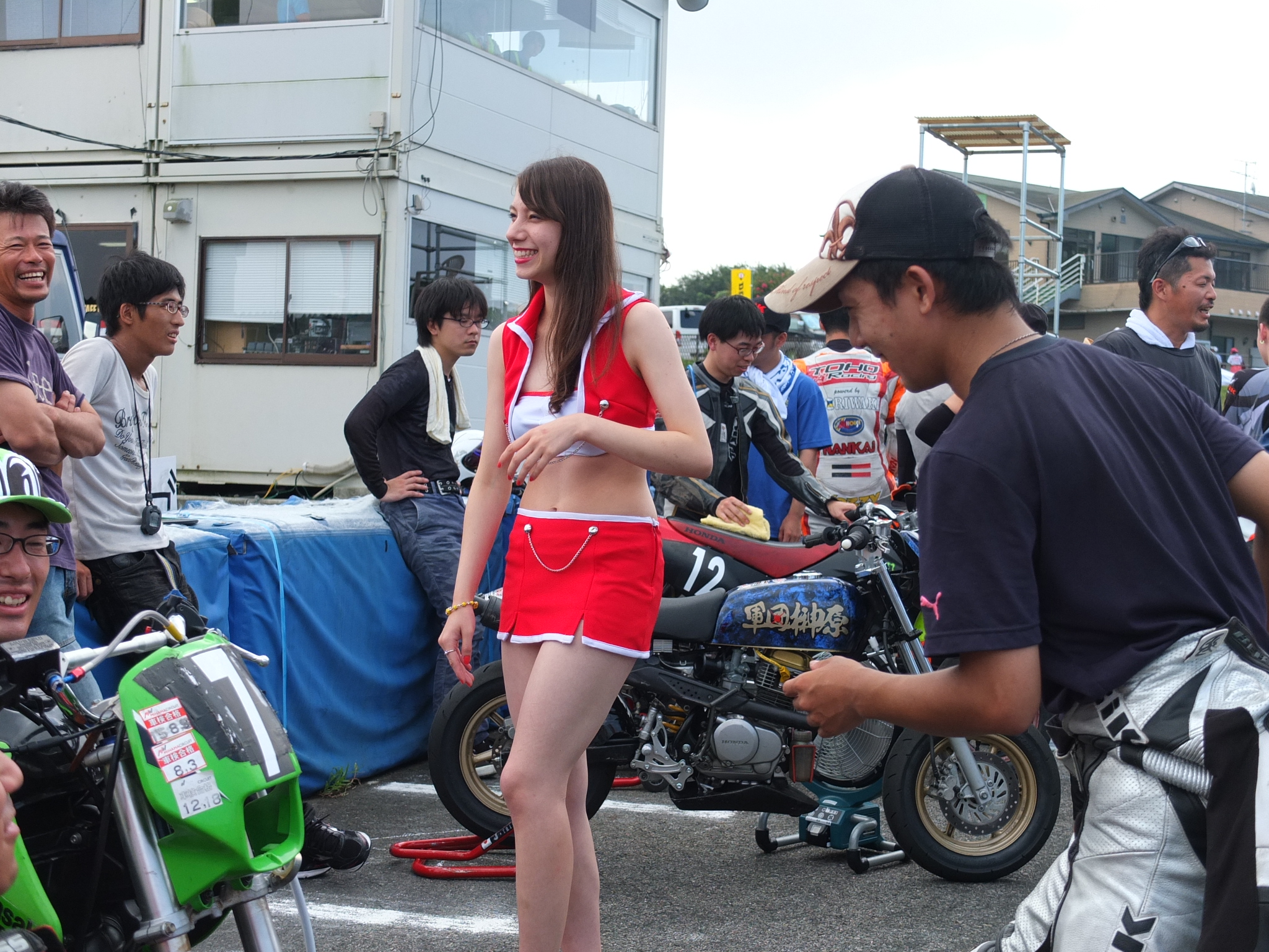 ちなみにスタート前にはキャンギャルのおねーちゃんが一チームずつ、写真を撮らせてくれました。