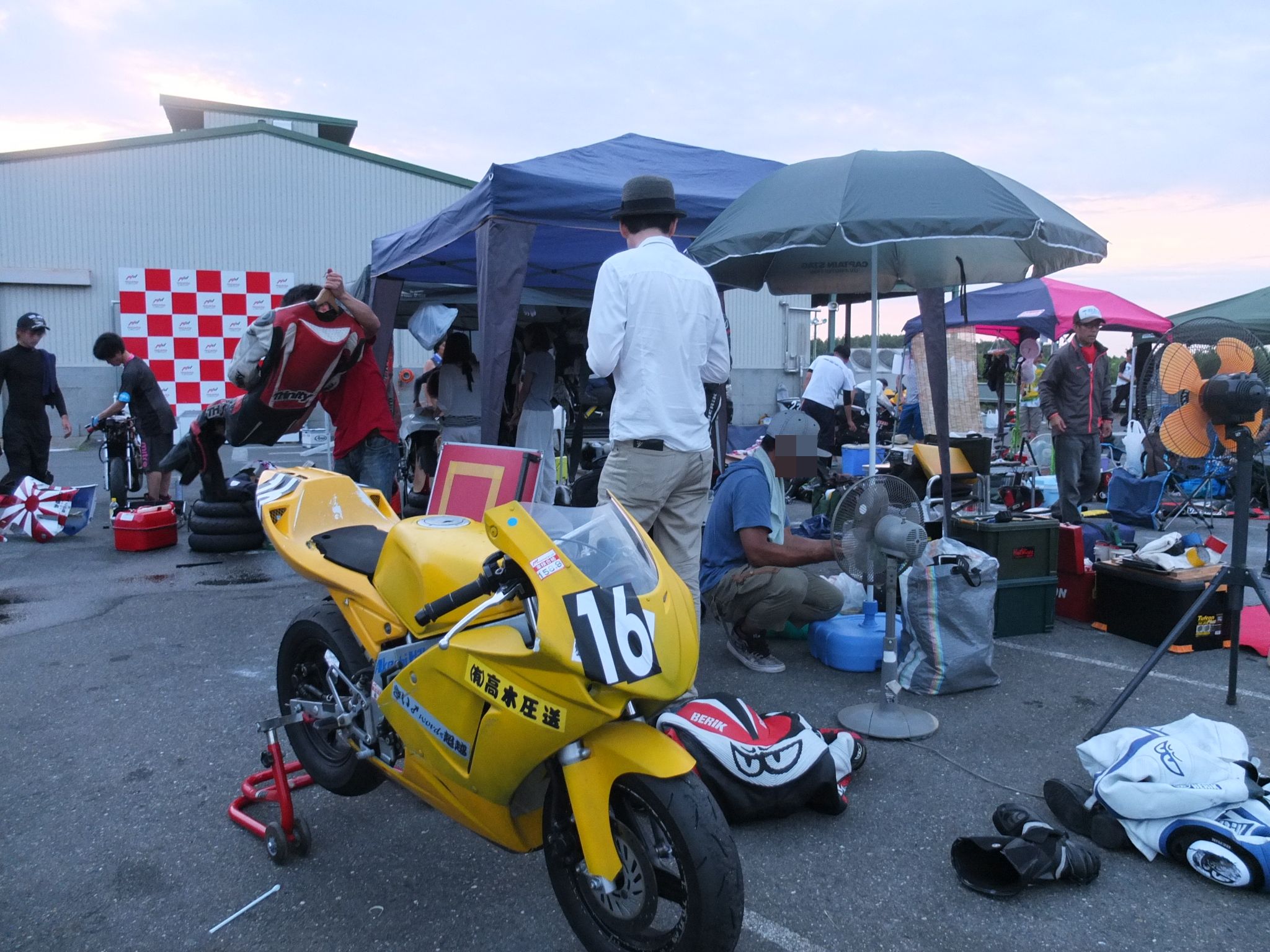 到着すると、他の人たちはすでに来ており、ピットの準備や車検とかもすでに終わっていました。(;´・Д・)スマソォ・・・・