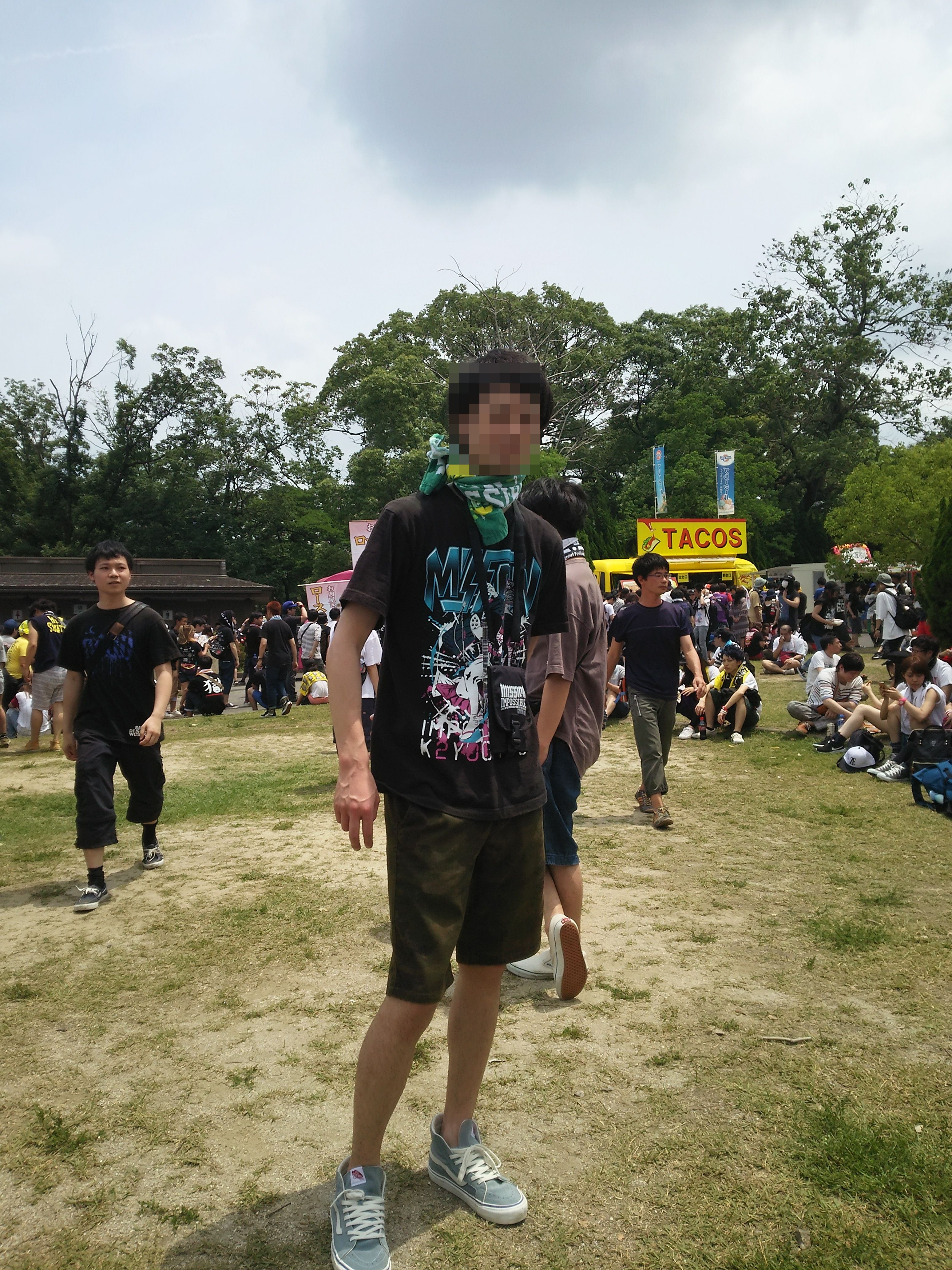 盛り上がっていると後ろでサークルモッシュが発生し、逃げると危ないので、参加すると、モッシュではじかれた人が飛んできて、まさかの下敷きに。