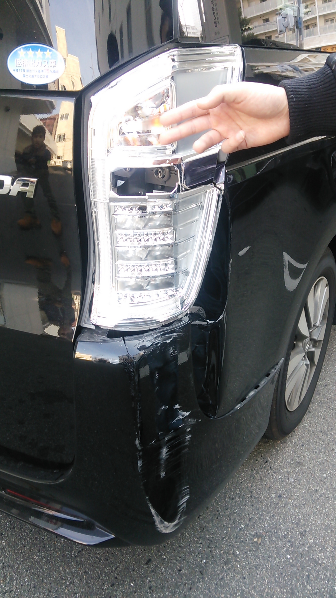 まずは車を見てみると、右後ろがつぶれて、テールレンズも割れていた状態でした。