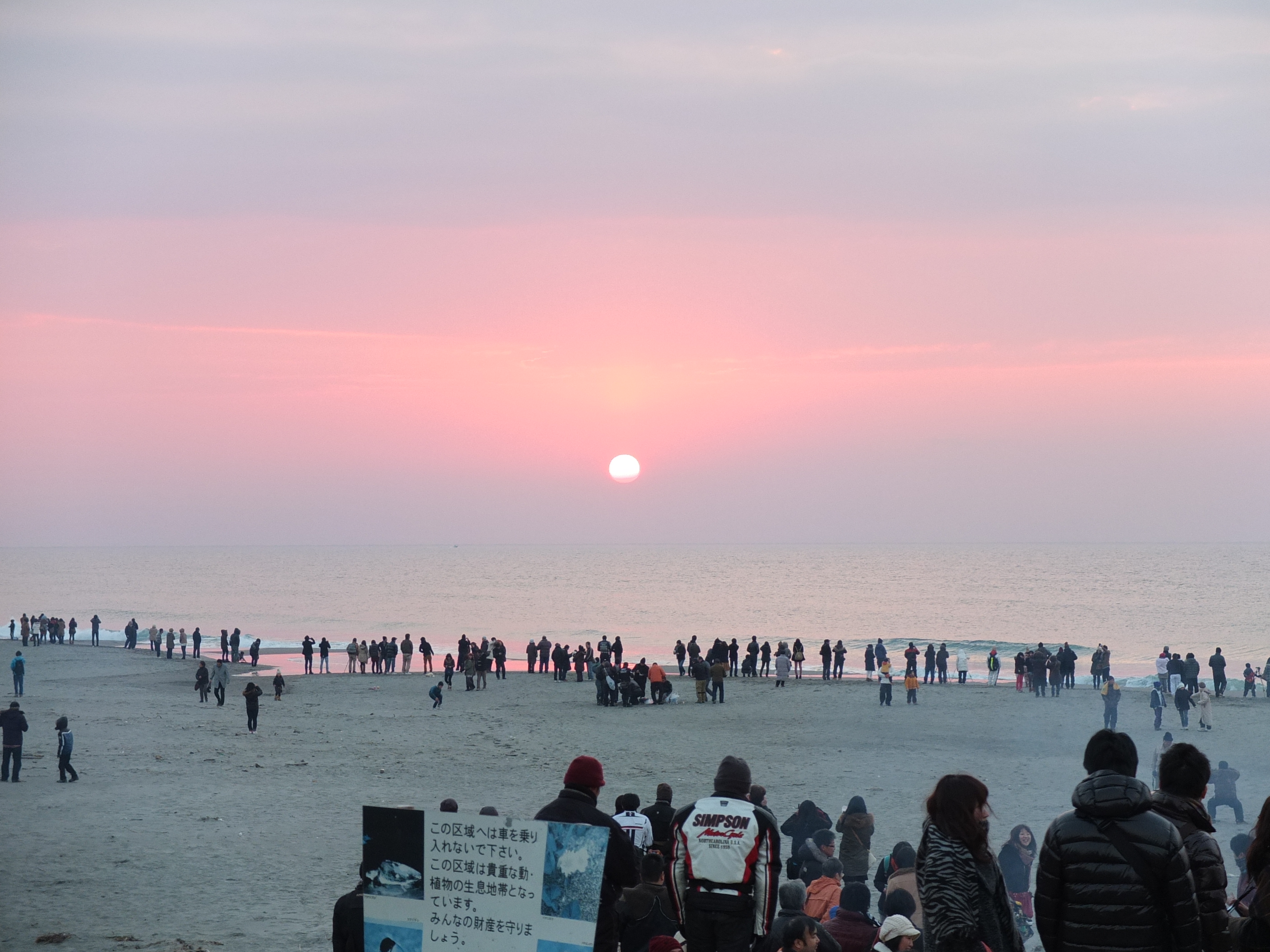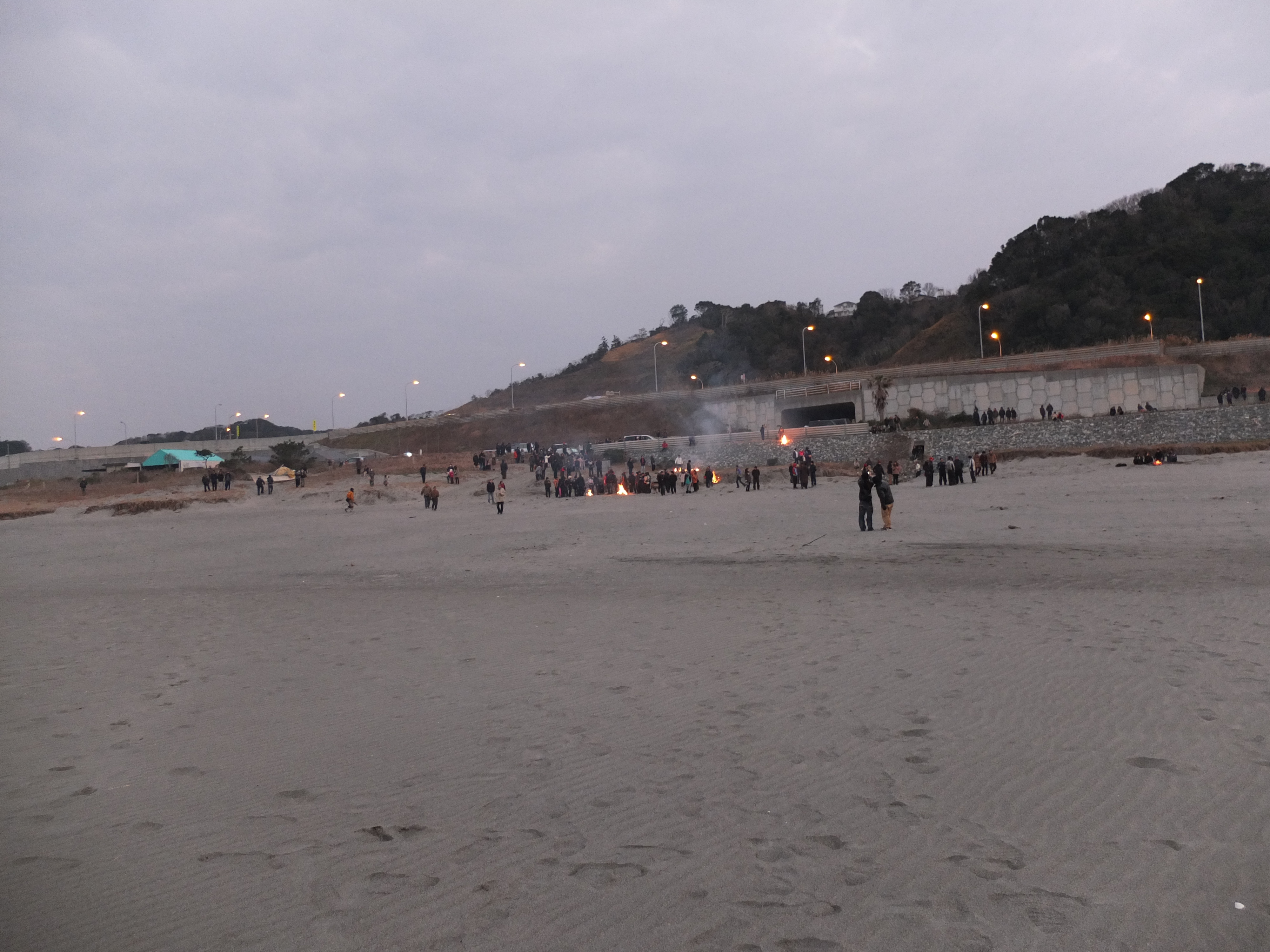 海岸では焚火をしていたり、結構人がいて、初日の出待ちをしてました。