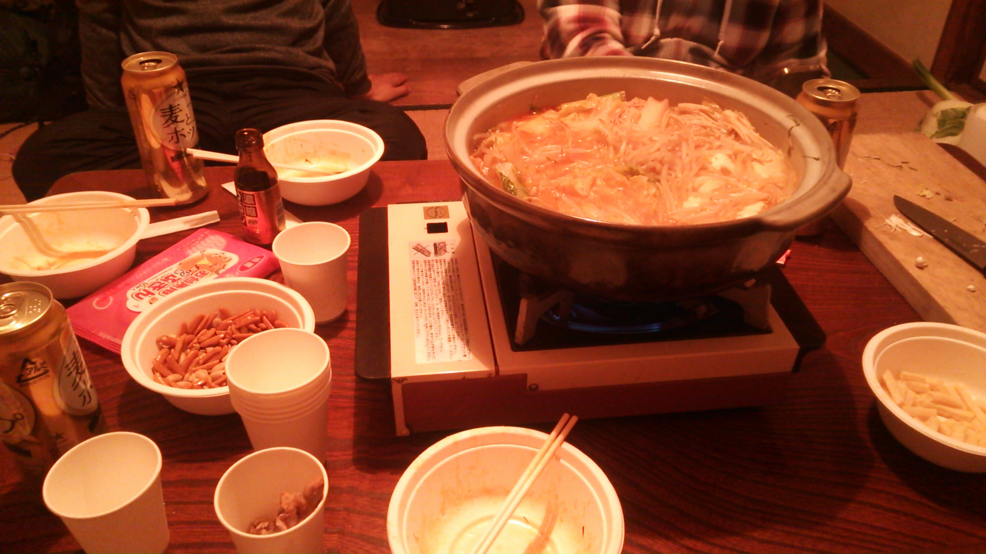 キムチ鍋をやりつつ、泊まり組は呑んで、ツイキャスもやったりと楽しい時間でした。