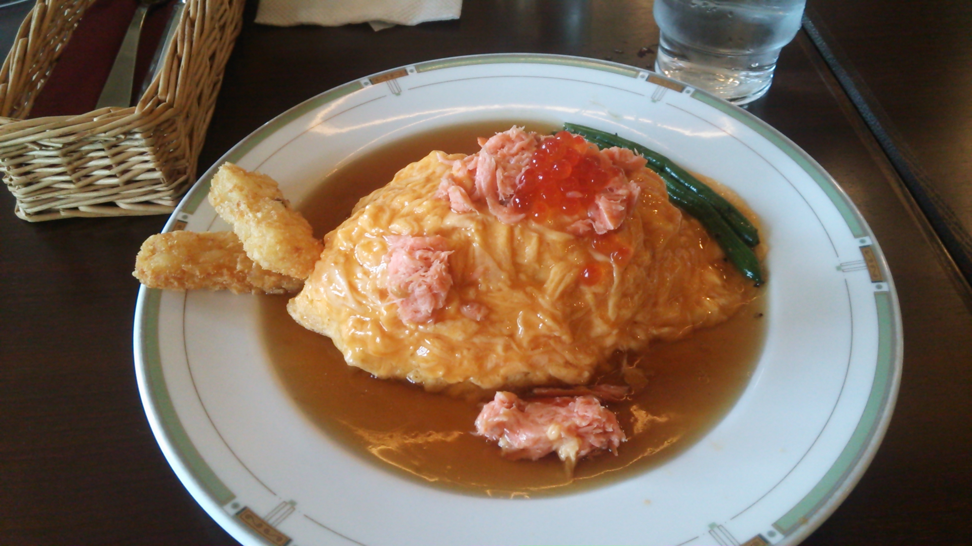 限定メニューの鮭といくらの和風あんかけオムライスを親子そろって注文。