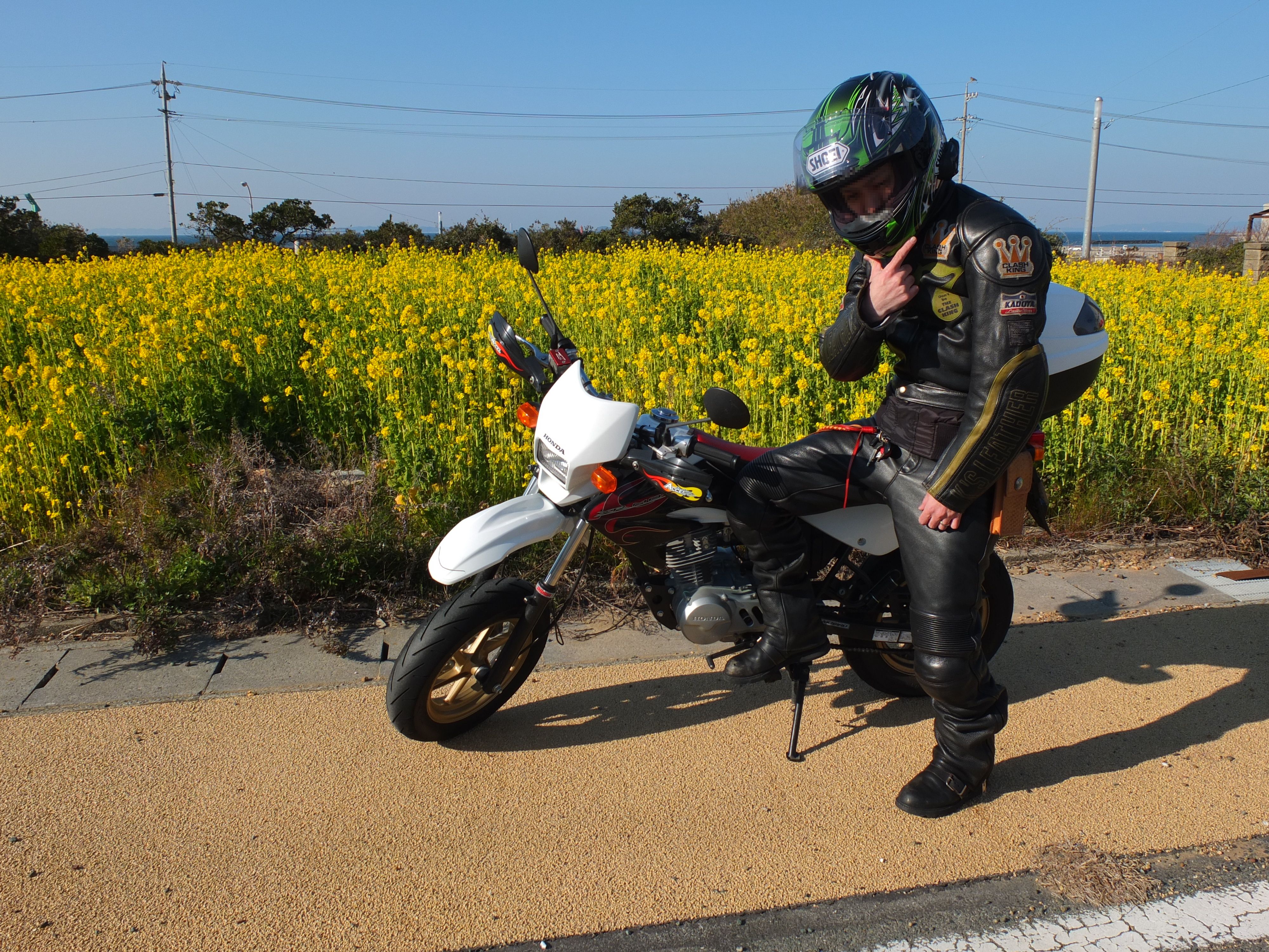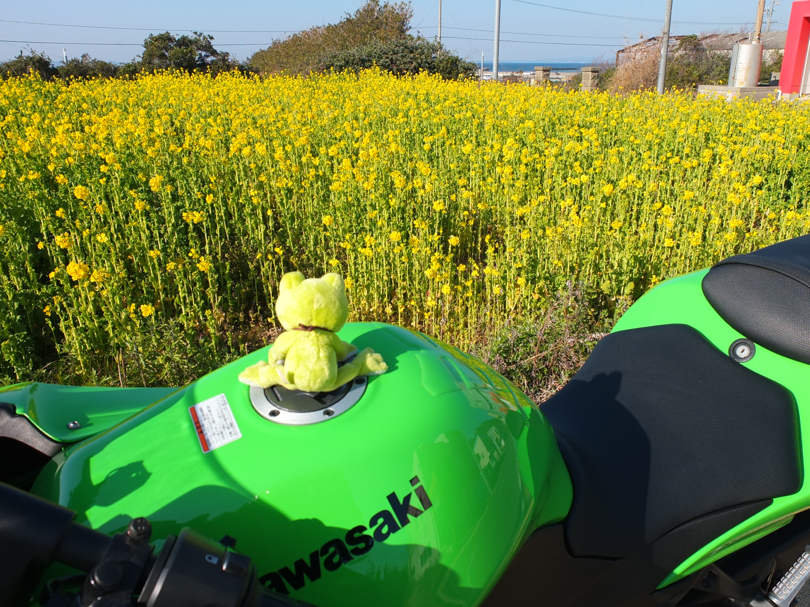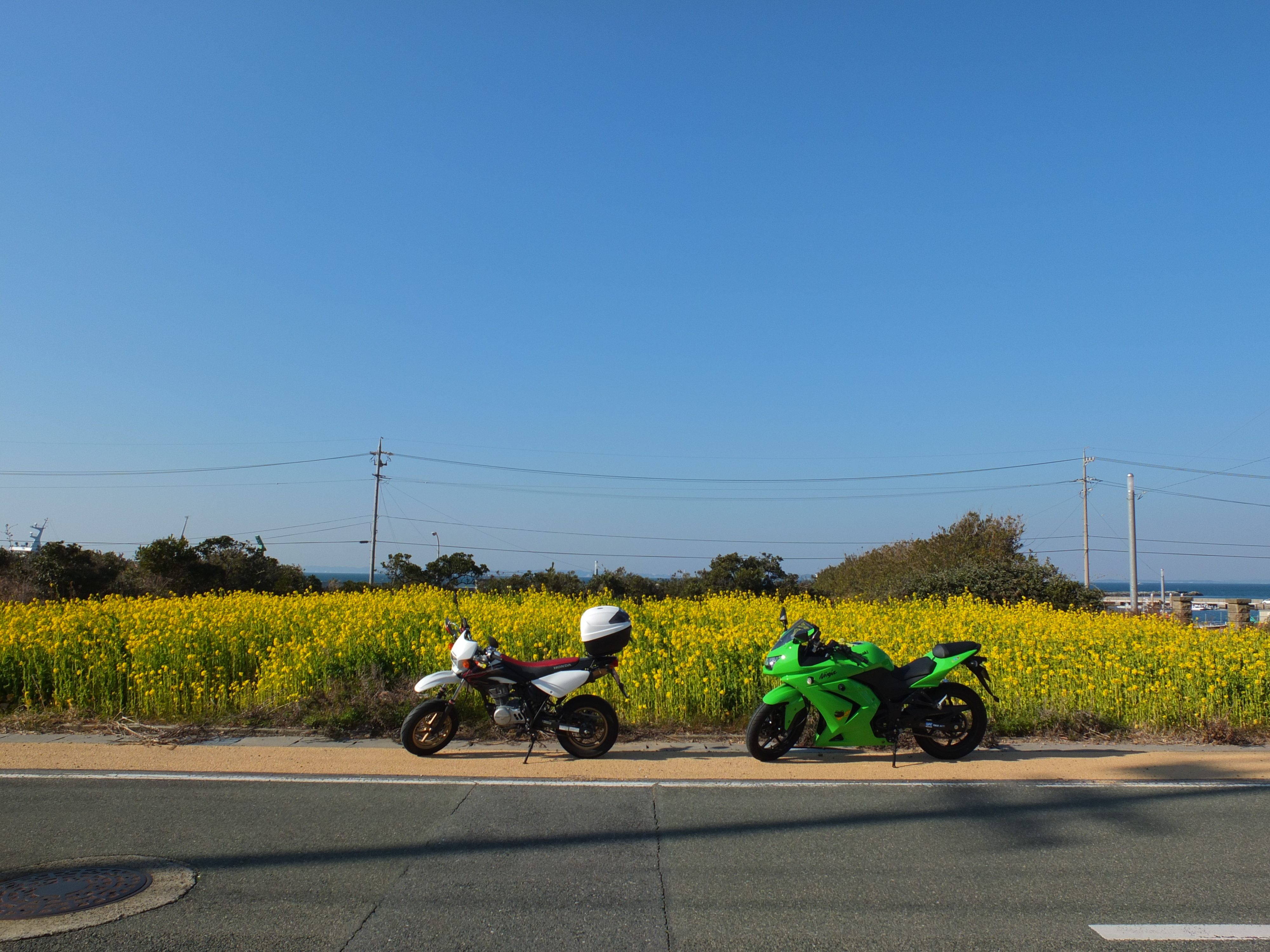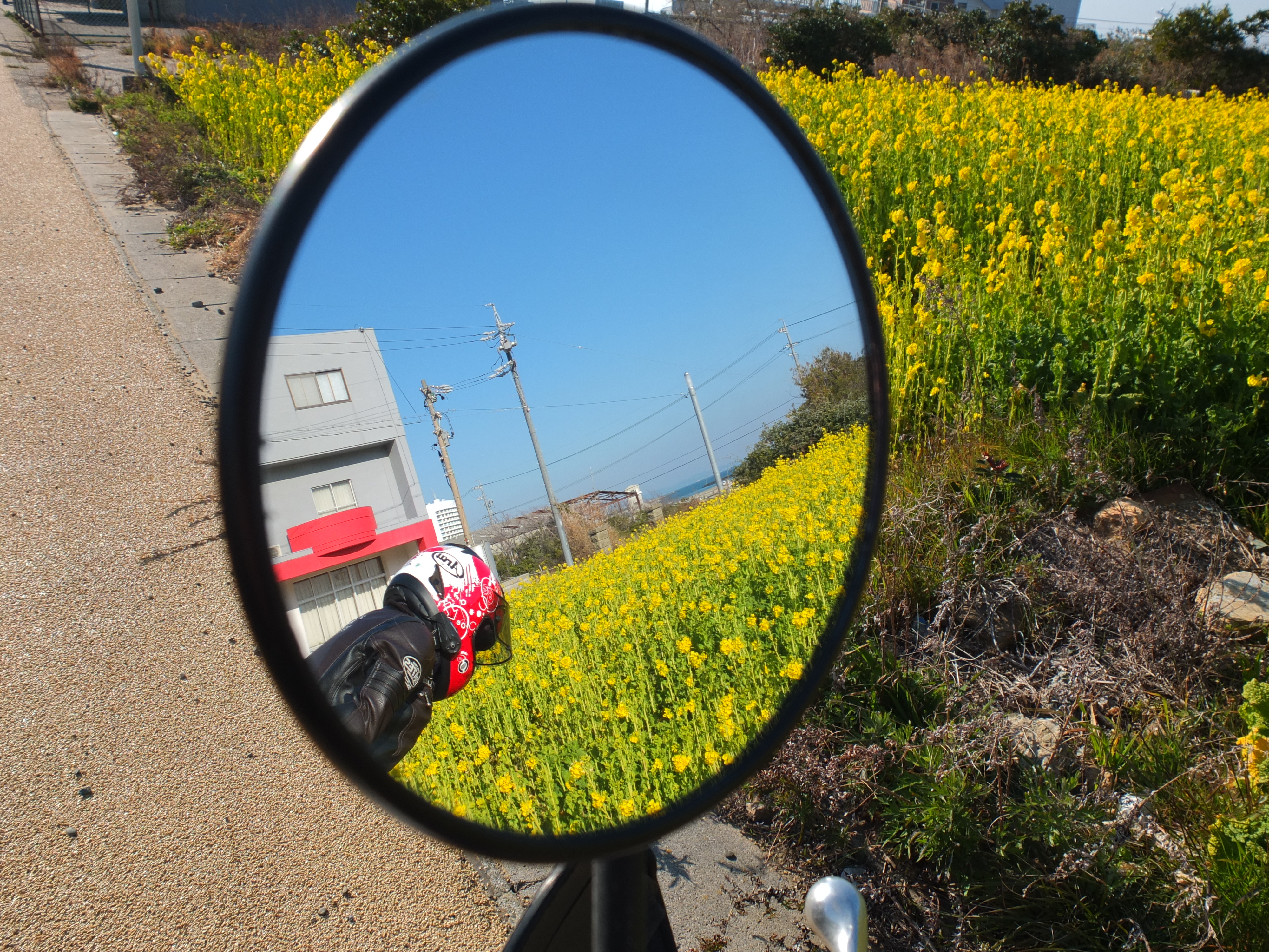 ここは、バイクのバックに菜の花が撮れていい感じの場所でした。