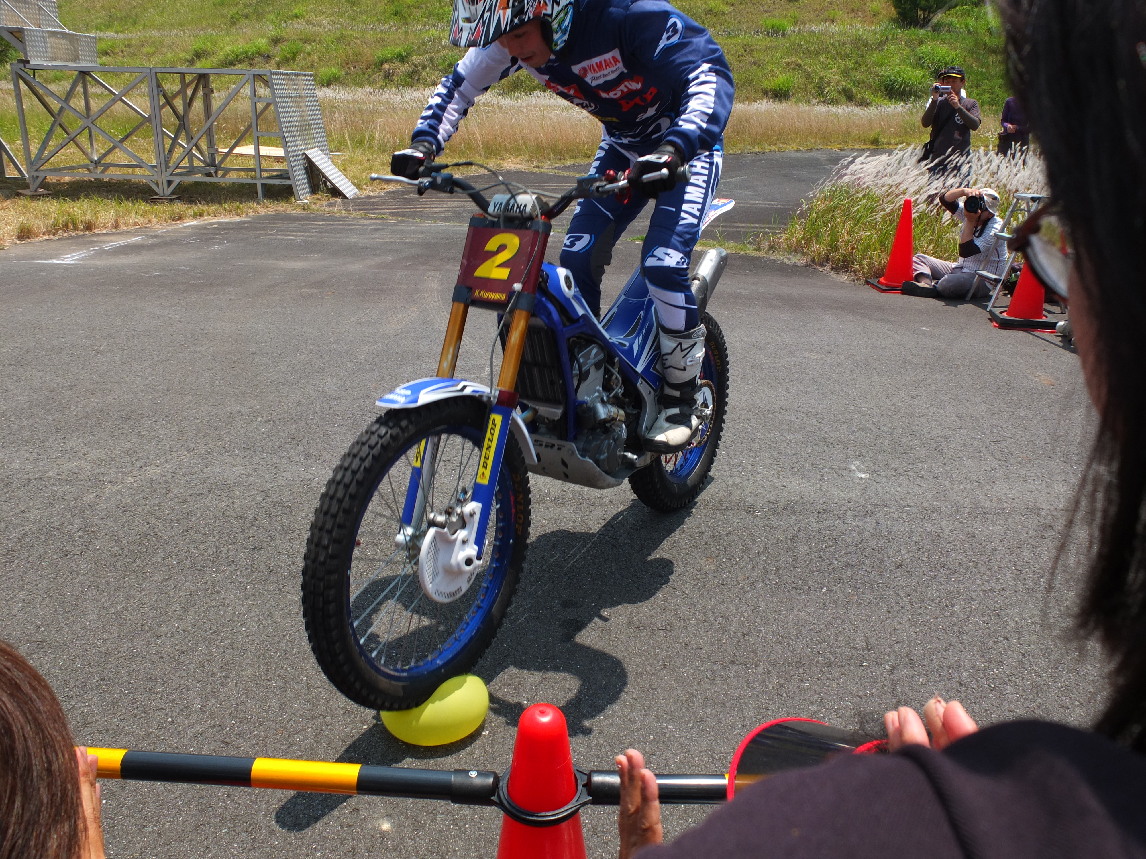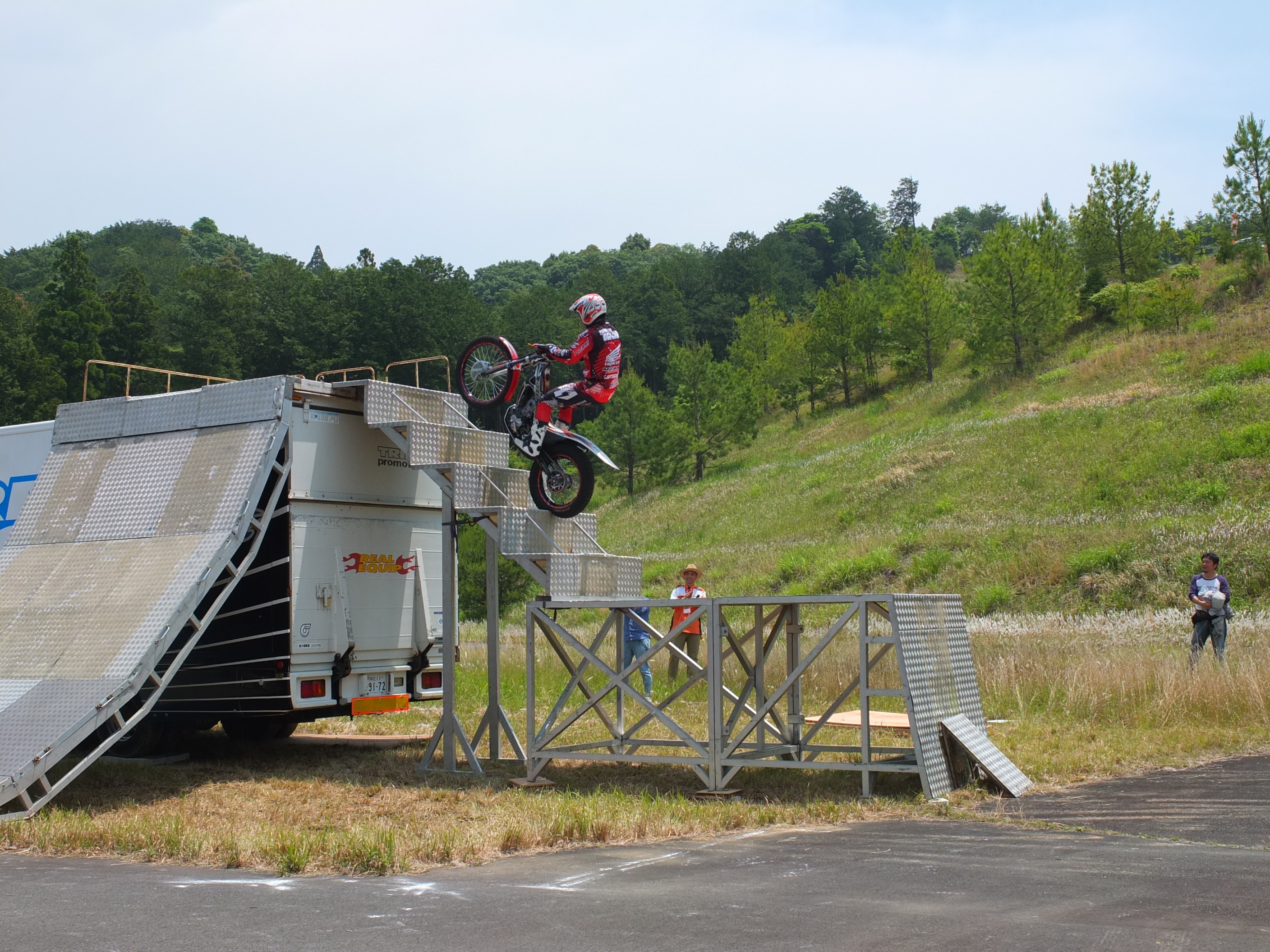 試乗会はもうすでにいっぱいだったのであきらめて、お店の方をいろいろ物色していましたが、特にこれがほしいってものもなく、どうしようかなーって思っていたら、トライアルのデモがスタートしました。