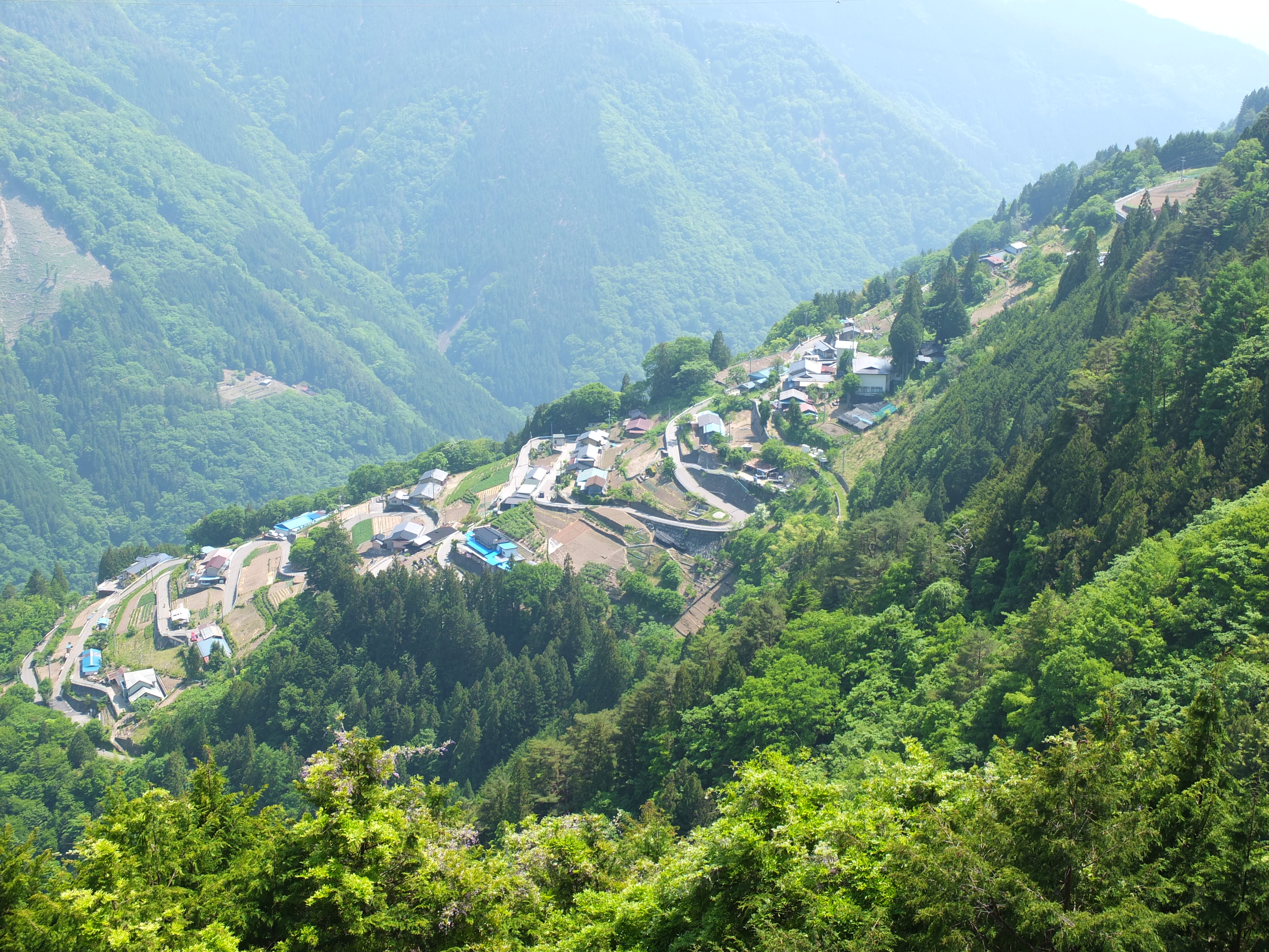 相変わらず集落の中を抜けていくクネクネ急勾配の山道を超え、一番上の駐車場まで行きました。