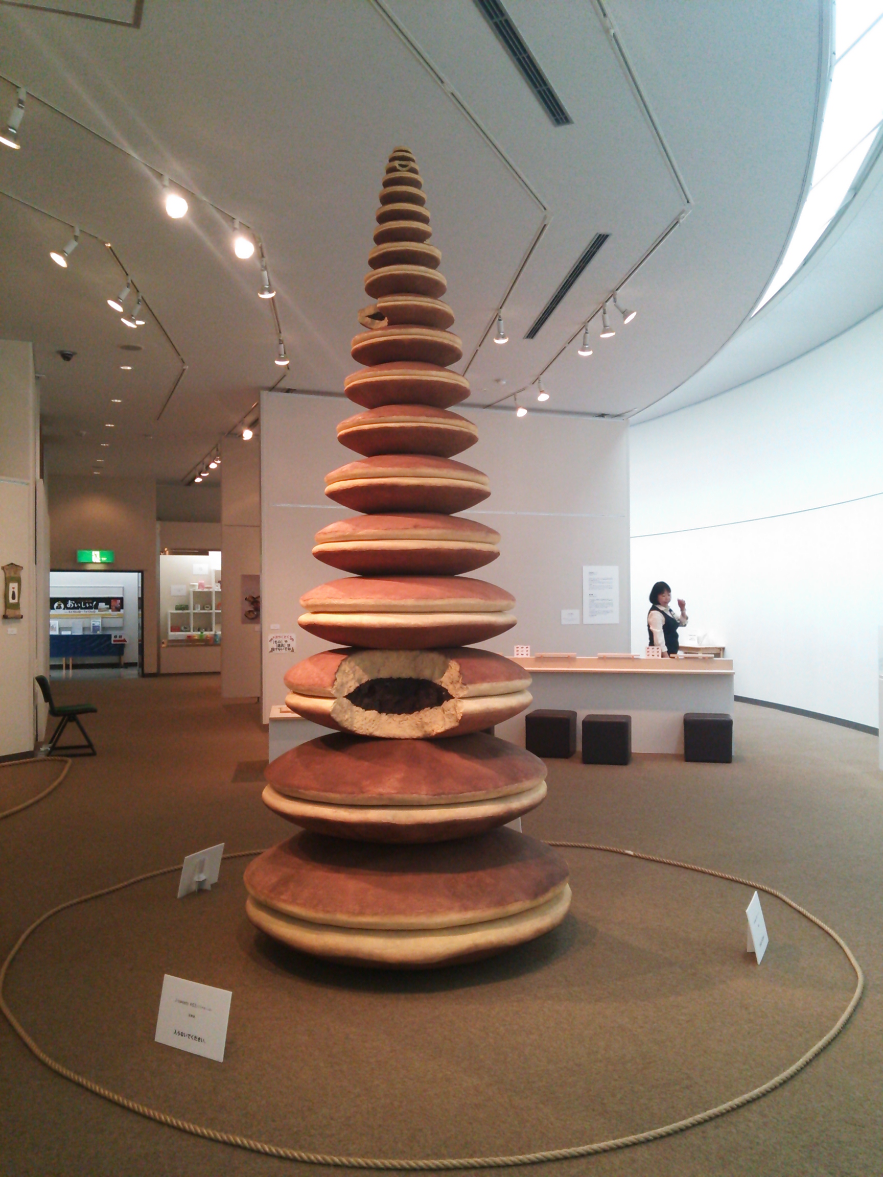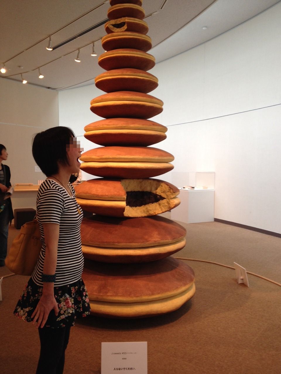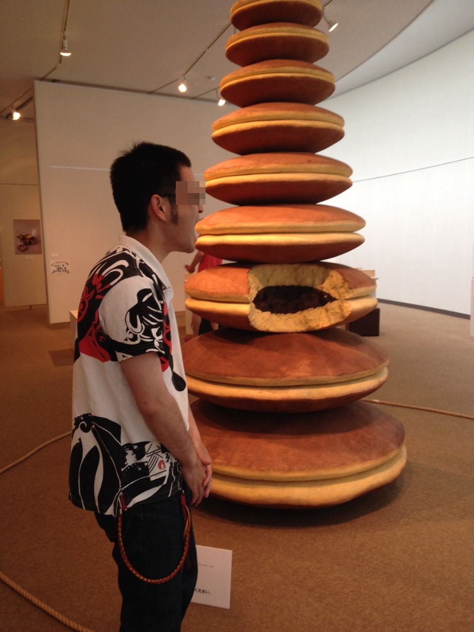 中に入ると、大きいどら焼きとか、食べ物を使ったアートがいっぱいありました。