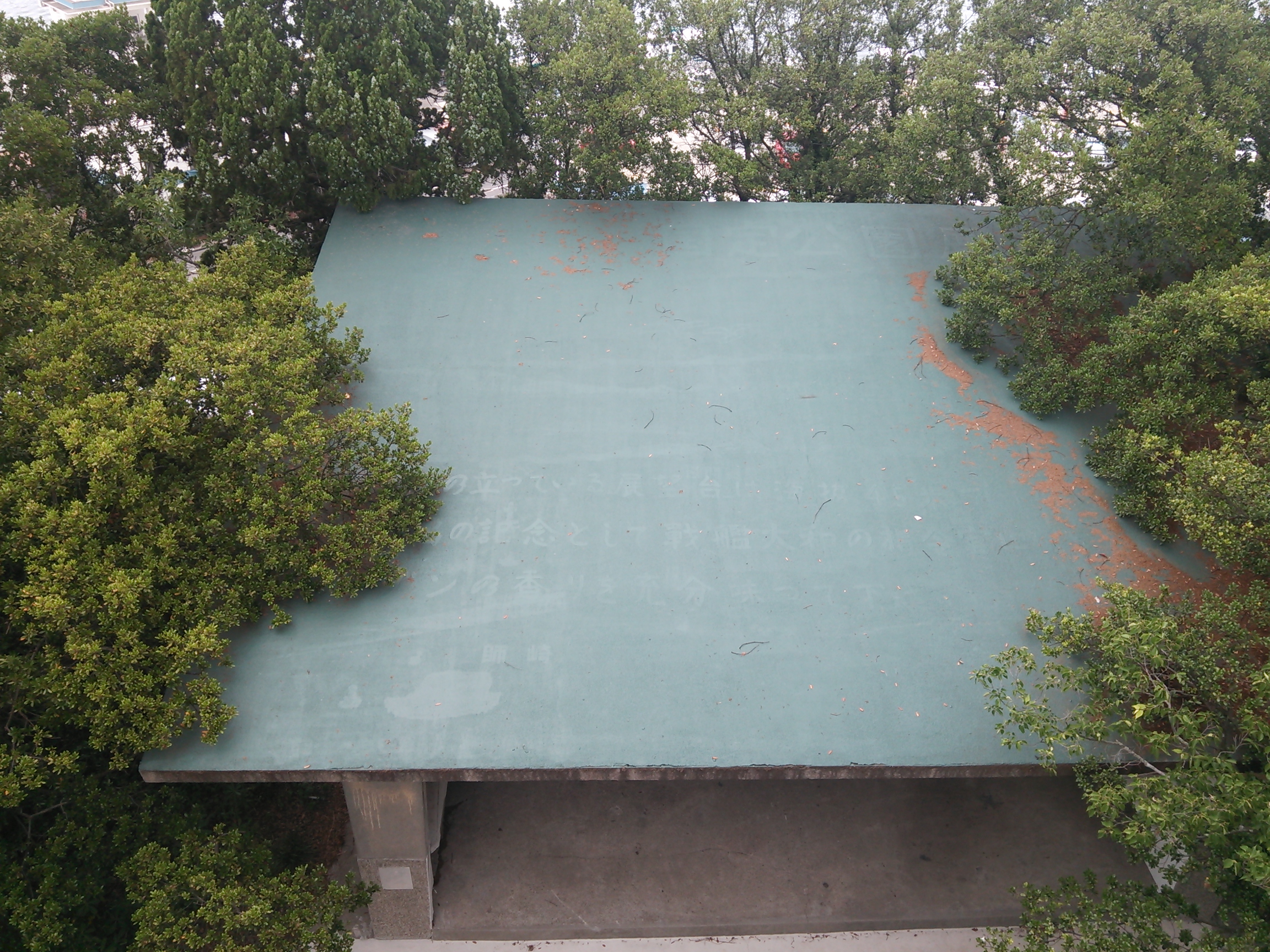 下の休憩所の屋根に何か書いてあったのですが、消えてしまっており、読めませんでした。