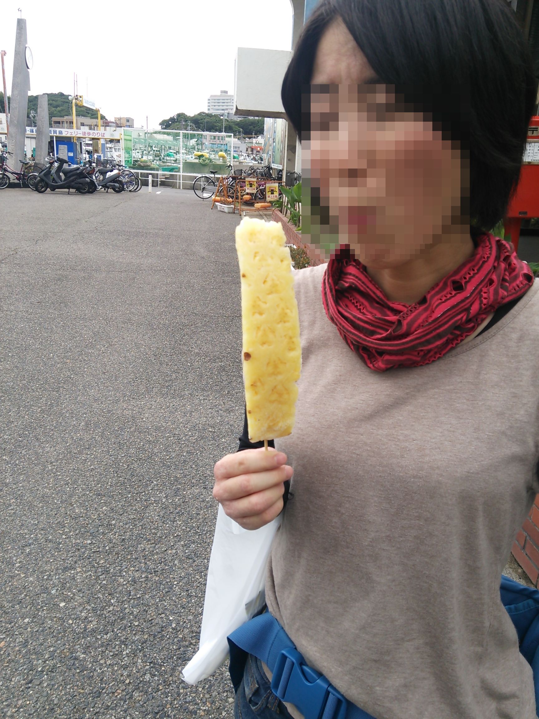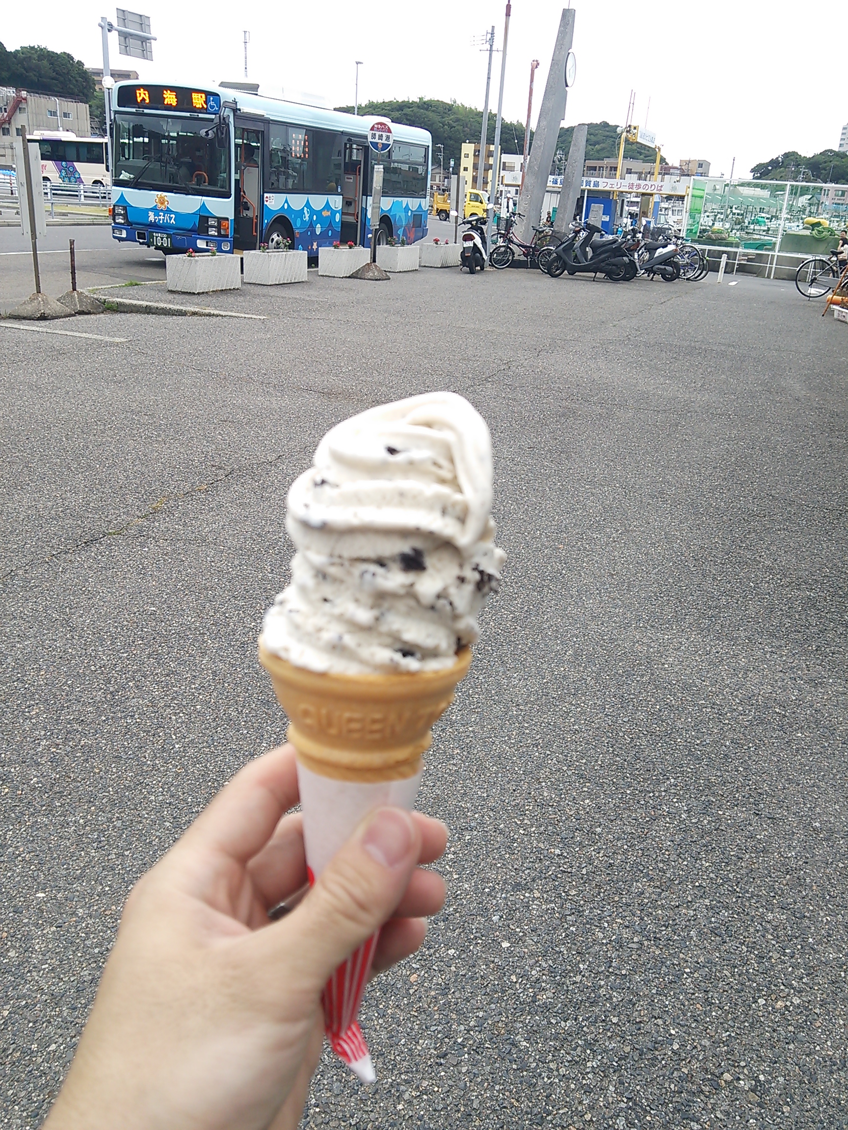 フェリー乗り場でソフトクリームとパイン棒を買いました。