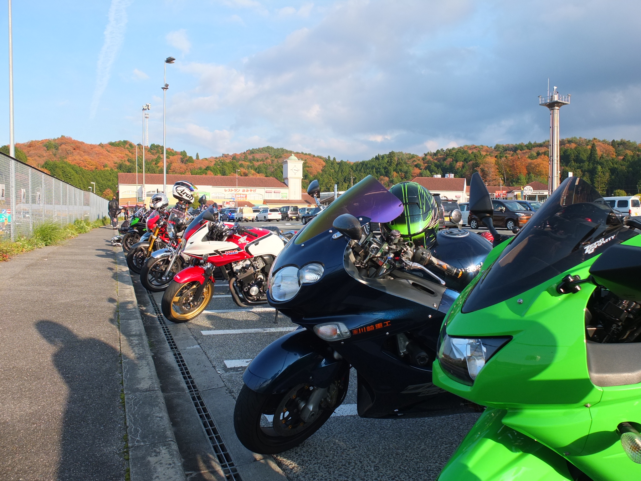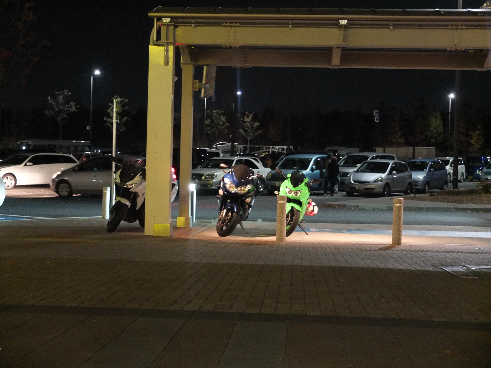 とりあえず、バイクがいっぱいだったので、端っこの方に停めました。