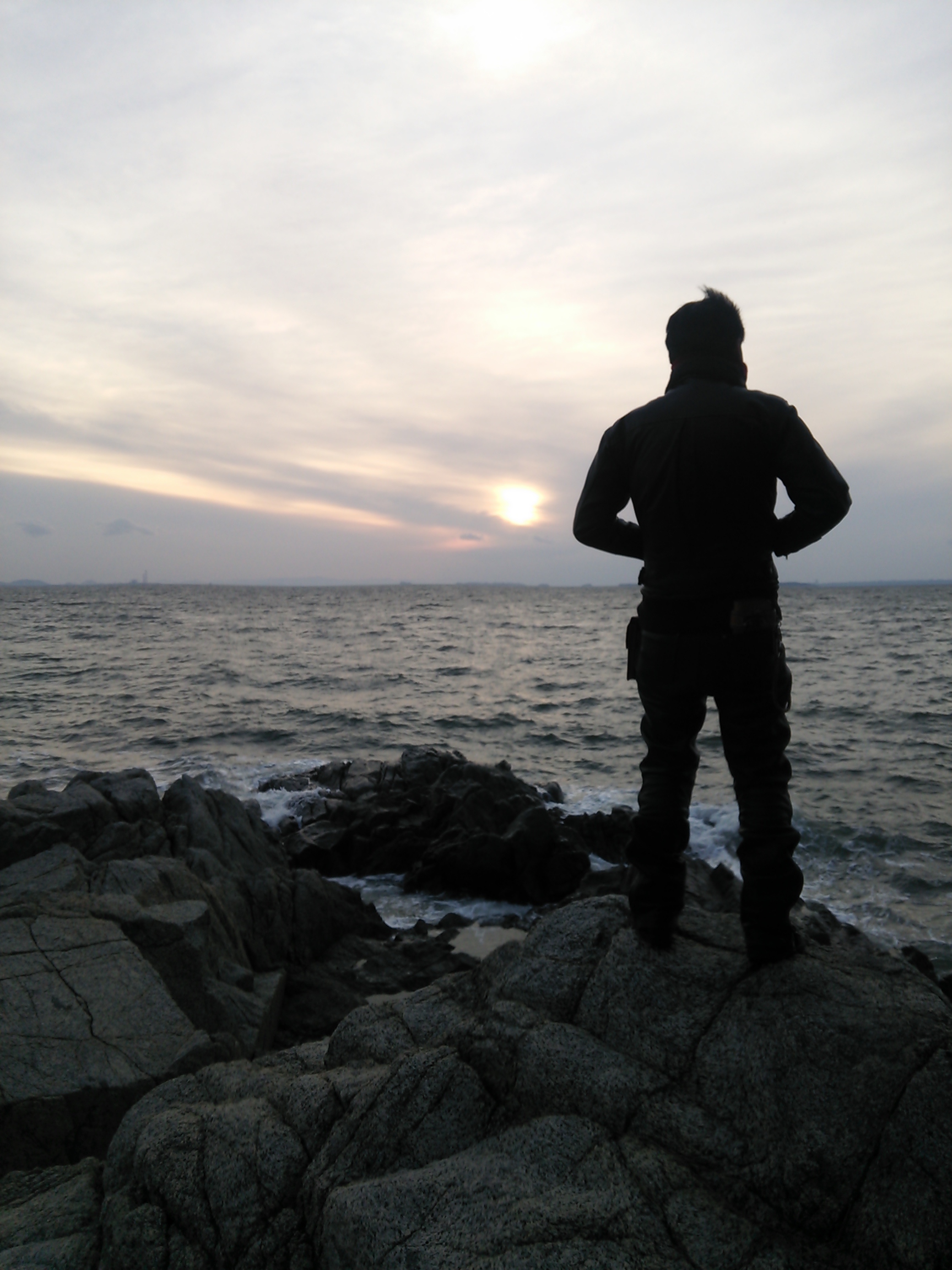 ここにバイクを停めて、海岸の辺をぷらぷらしていたら、膝の高さくらいの木の杭があったので、登ったら折れてこけましたw