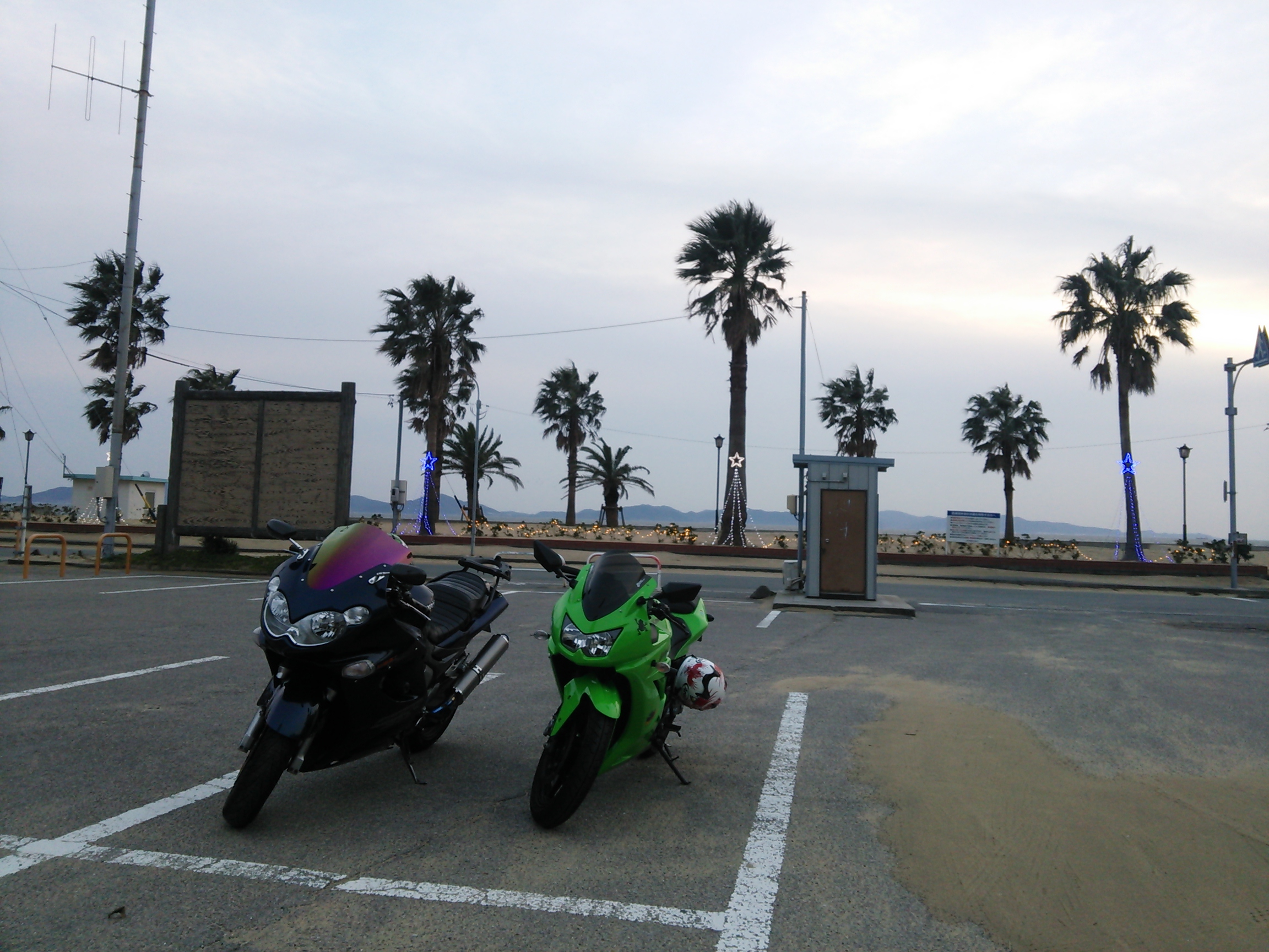 こんな感じで遊びつつ、バイクの方に戻るとだいぶ暗くなっていました。