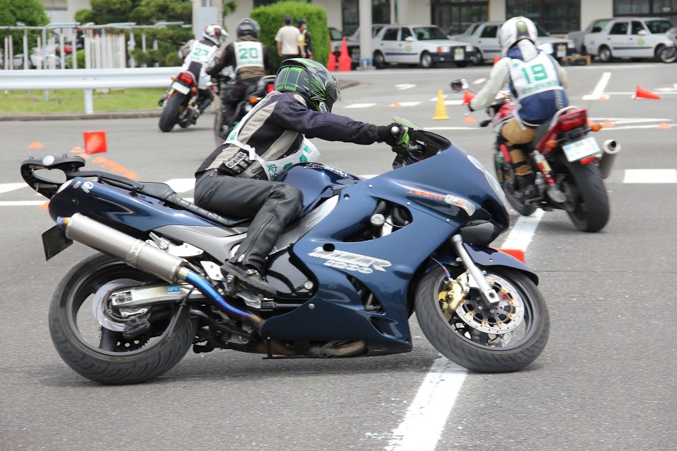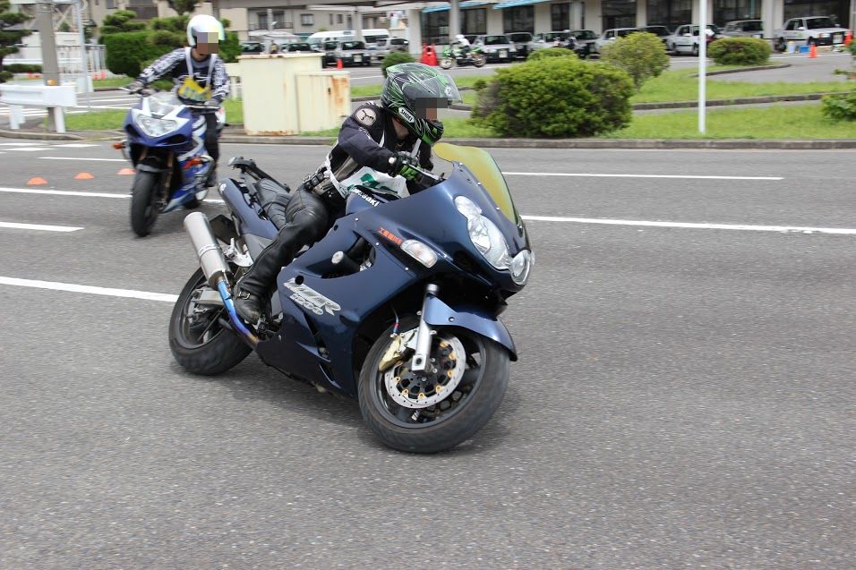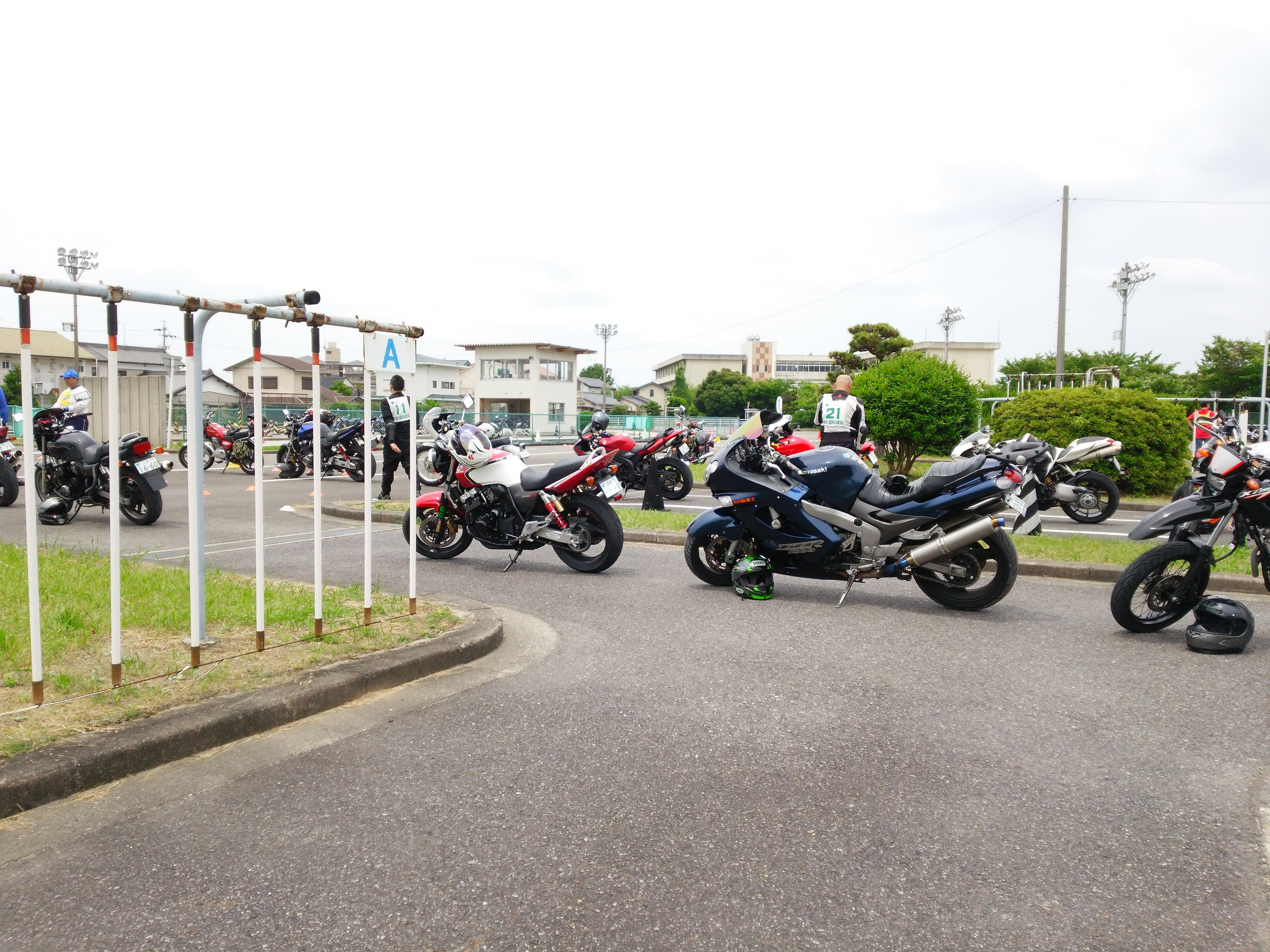 乗車姿勢の話や、ブレーキのかけ方の違い等の座学を受け、準備運動後スタートしました。