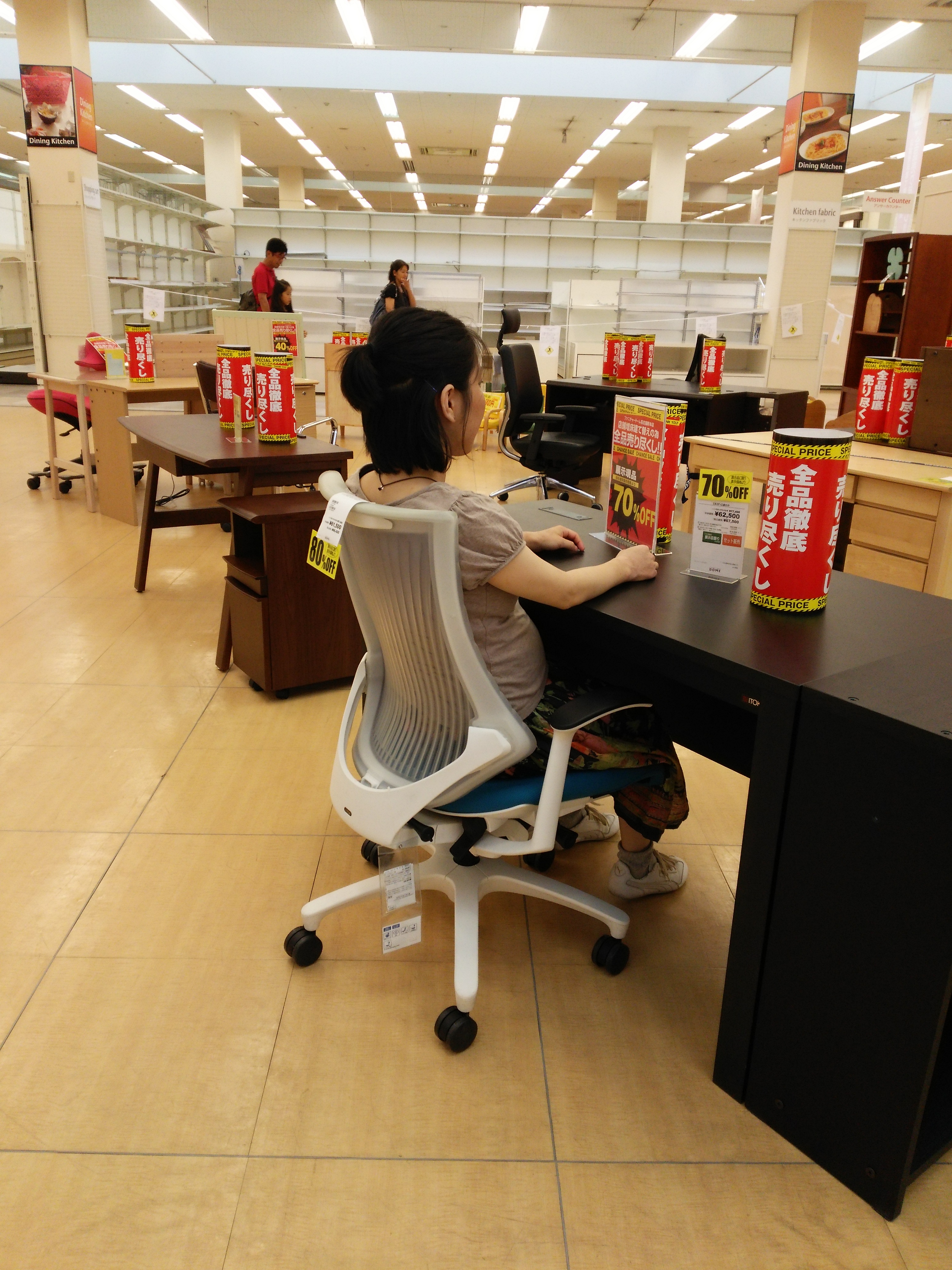 ここで、嫁さんが在宅で仕事をするための椅子を欲しがっていたので、いろいろ見るつもりでしたが、店舗改装のため、中がガラガラでした。