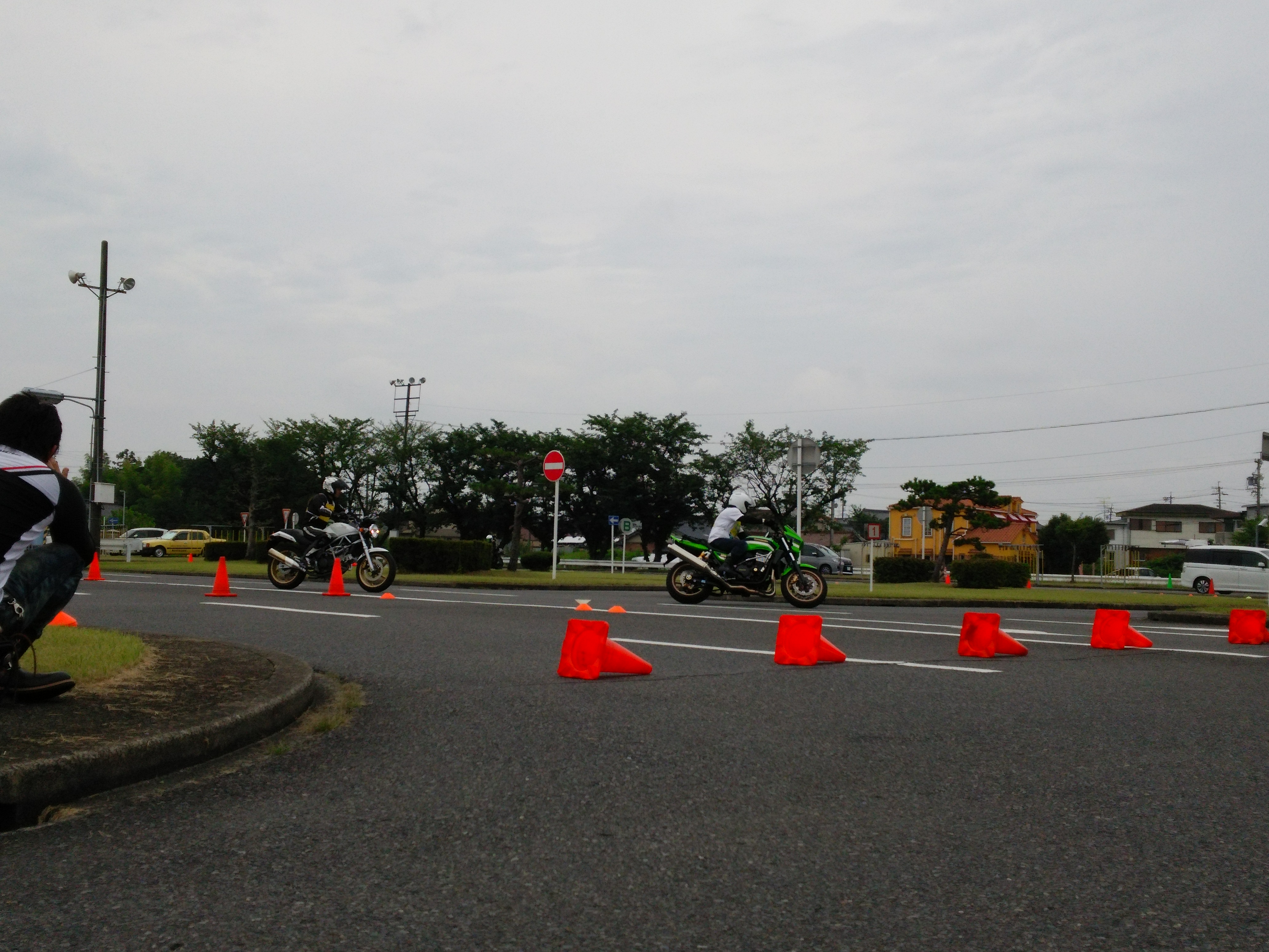 何回かやっていると、どうしても右旋回がうまくいかなくて、アドバイスをお願いすると、指導員の方がアドバイスをくれて、その通りにやってみるとうまくいくようになって、たまに気持ちいい感じに曲がれる時がありました。