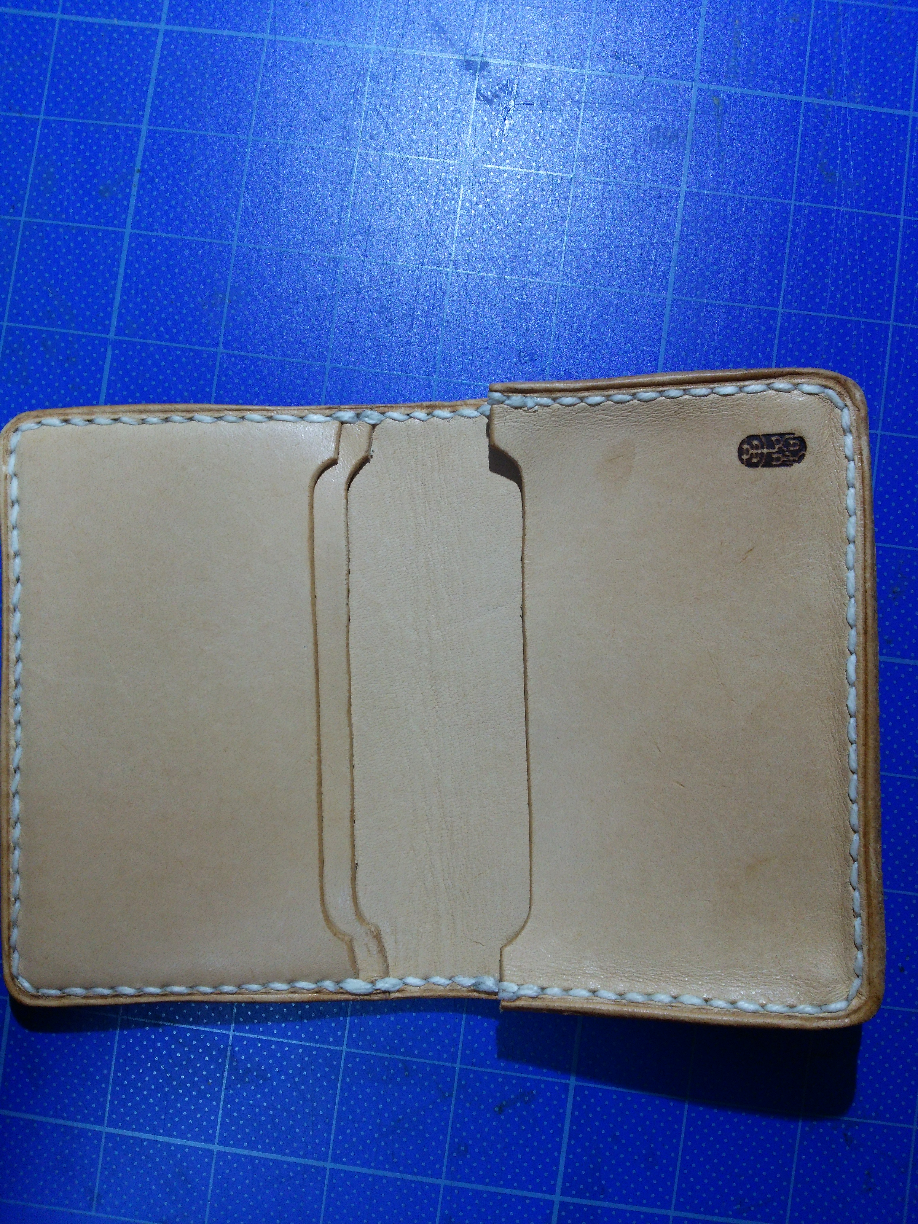 左右に名刺が入るようにとの事だったので、片方はある程度まとめて入るようにマチをつけて、反対は少しだけ入るようにと2段にしまして、完成です。