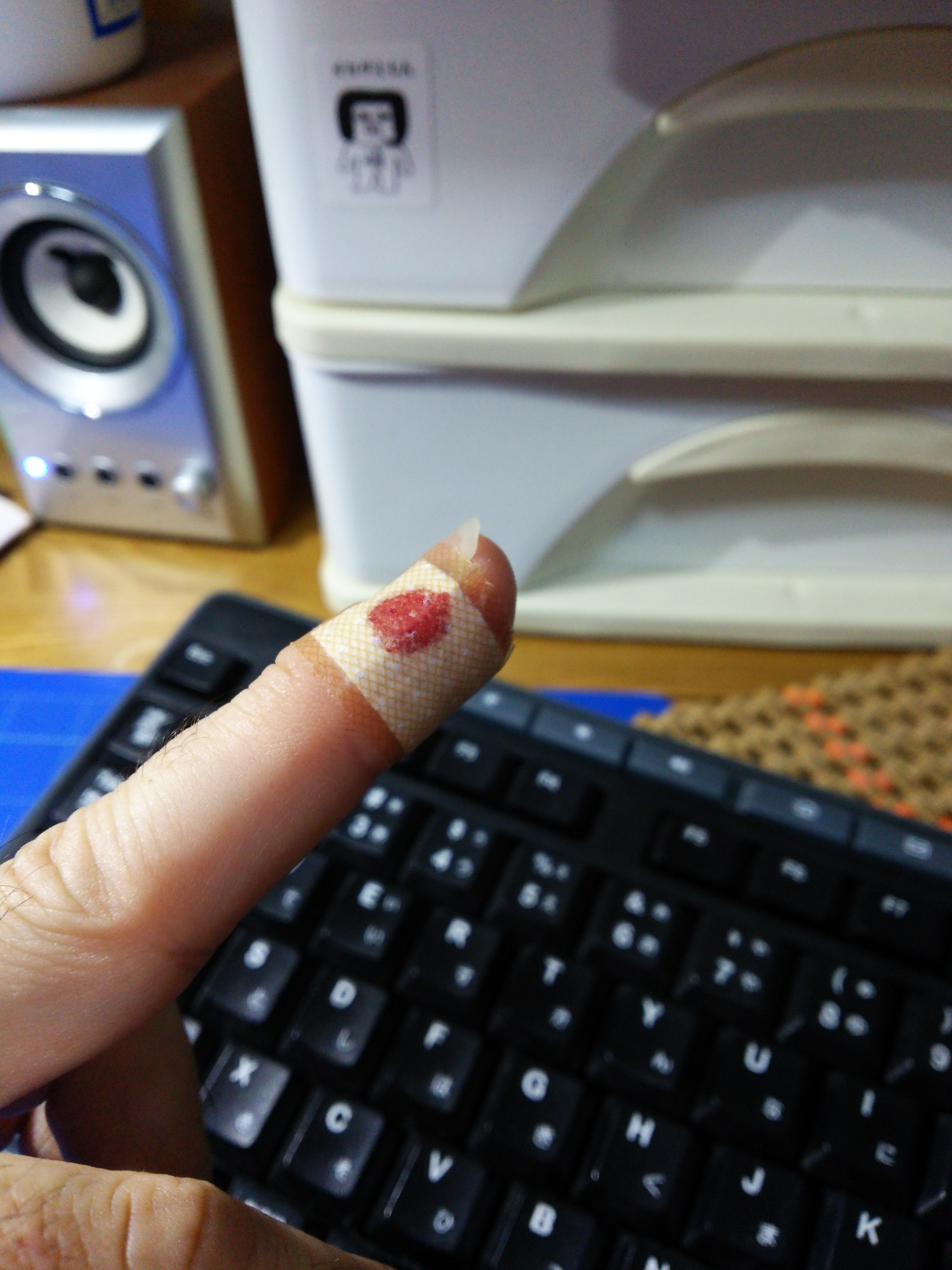 ちなみに今日は久しぶりに晩御飯作っている最中に、指を切ってしまいました。