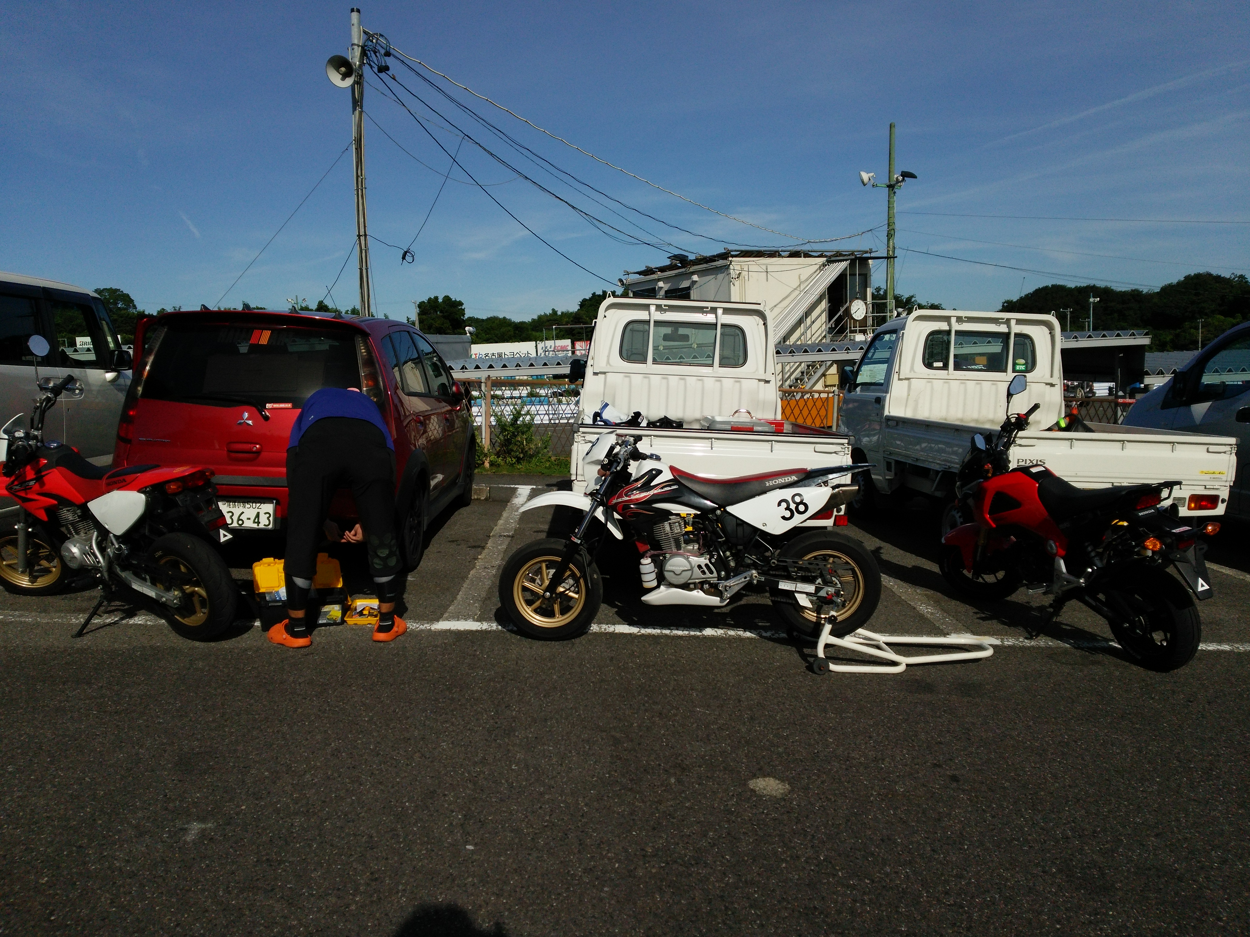 とりあえず、駐車場に停め、バイク屋さんのお客さんが2人来るってことだったのですが、探してもまだ来ていないみたいだったので、とりあえずバイクを降ろしたりして準備してました。