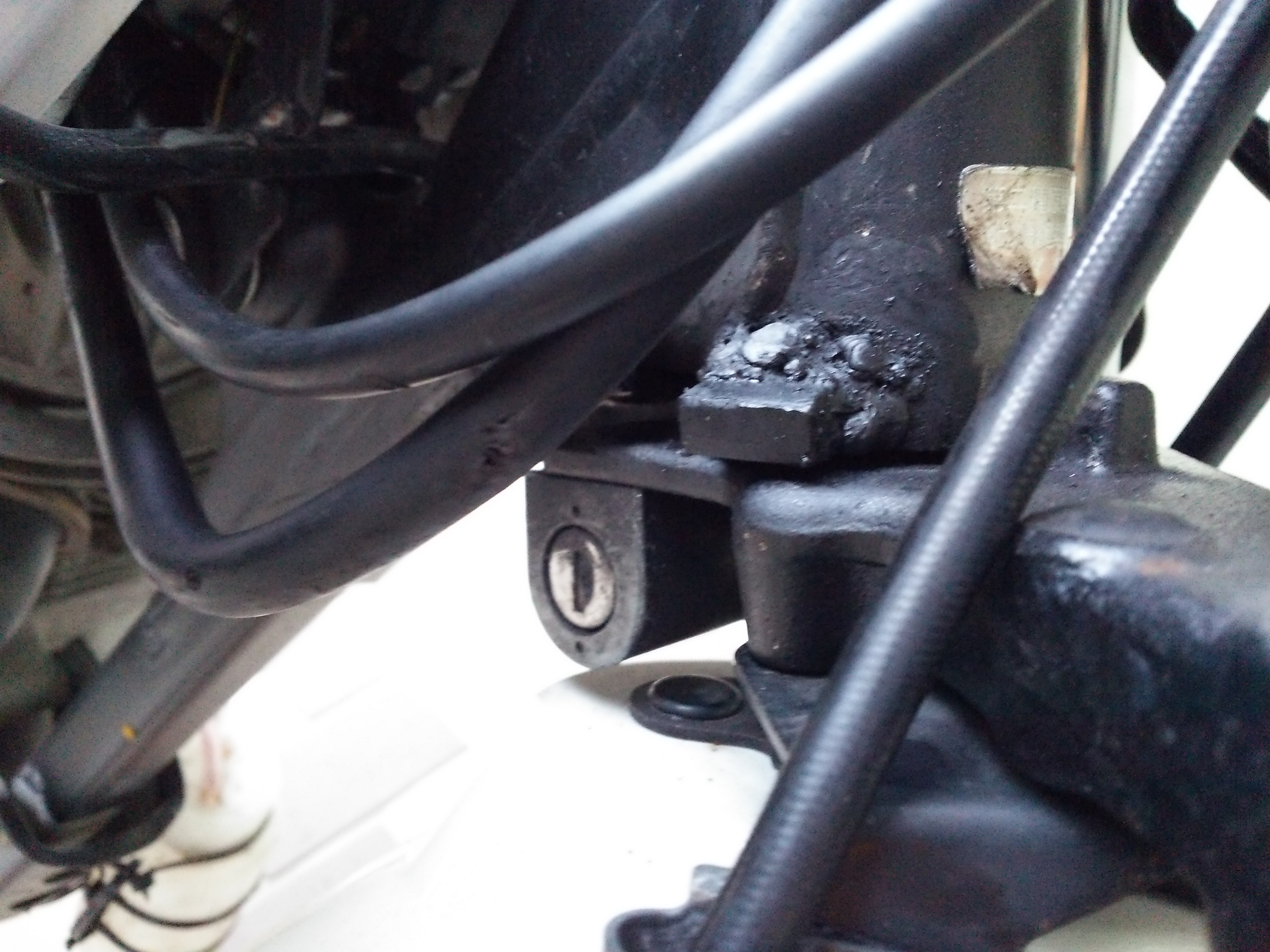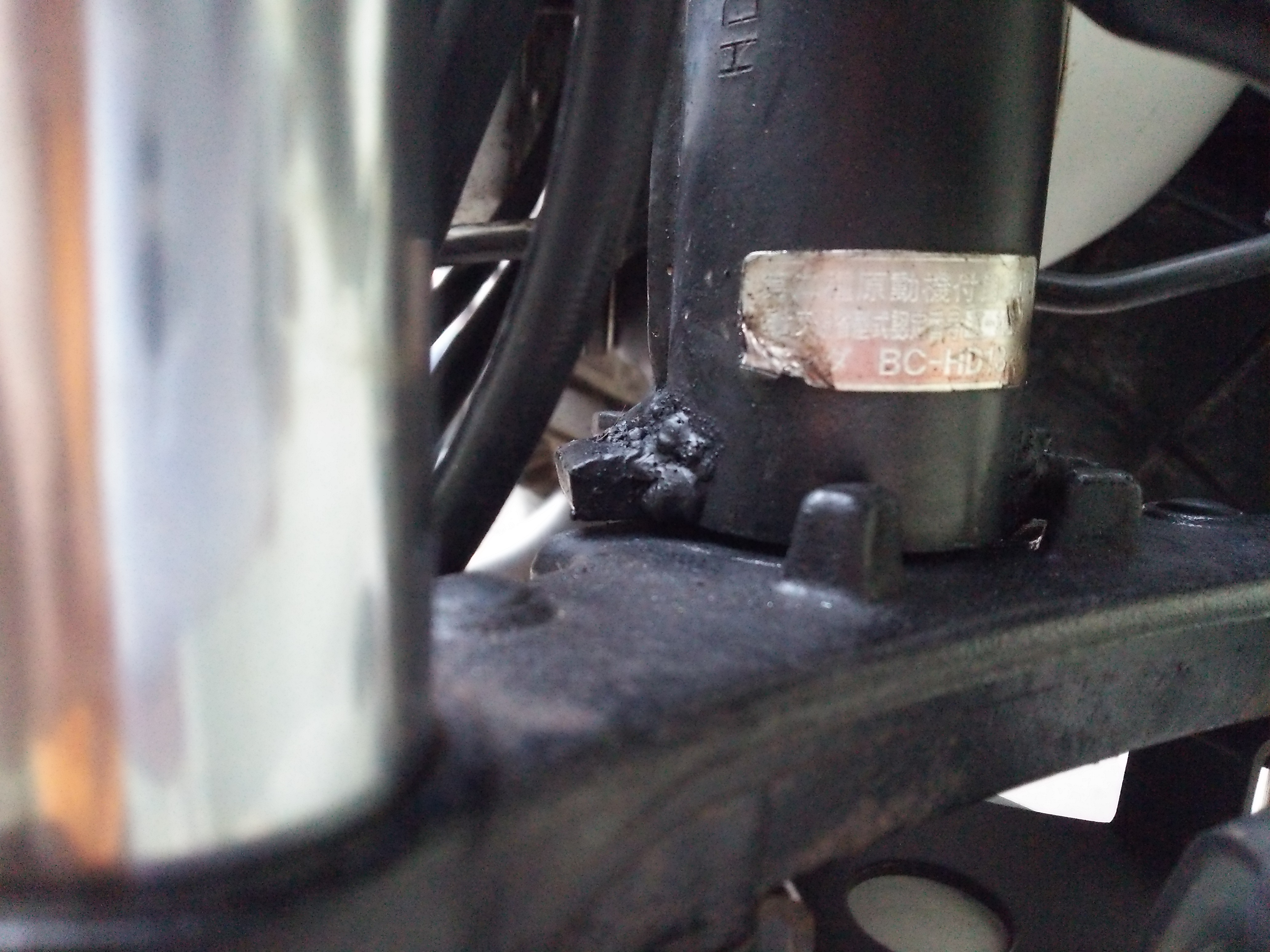 先日の美浜の練習会でこけた時にハンドルストッパーが飛んでいってしまったので、新たに溶接を。