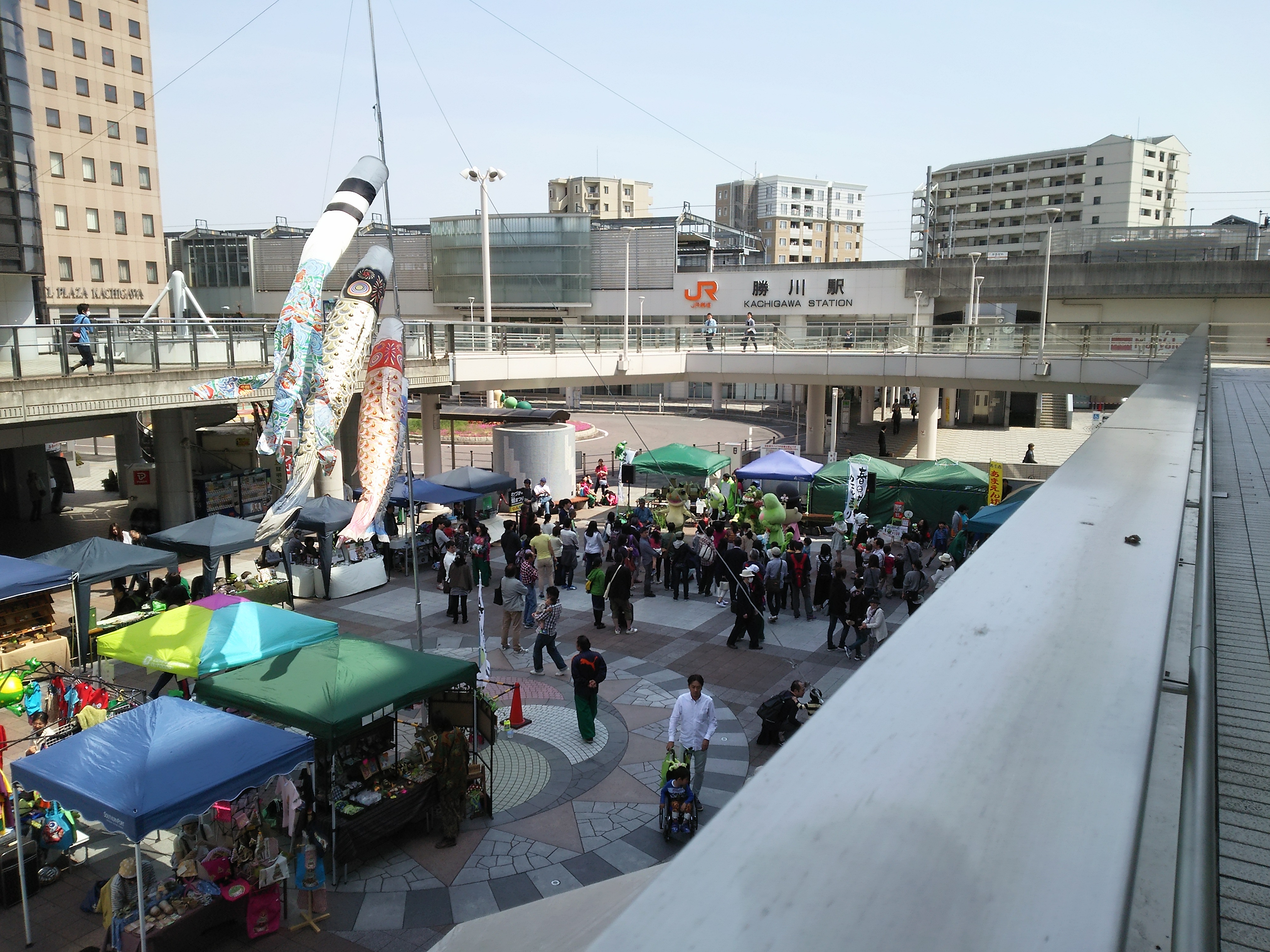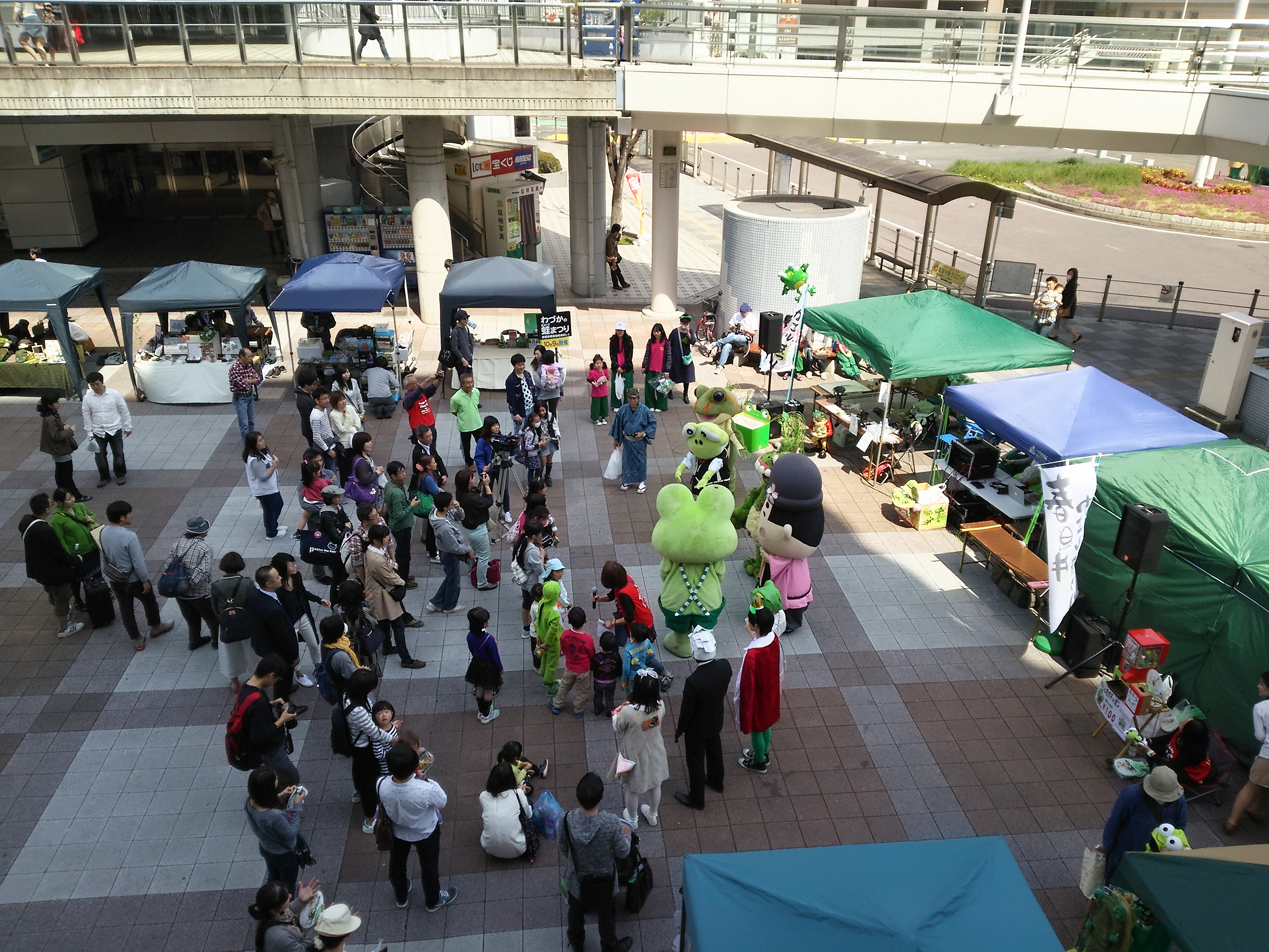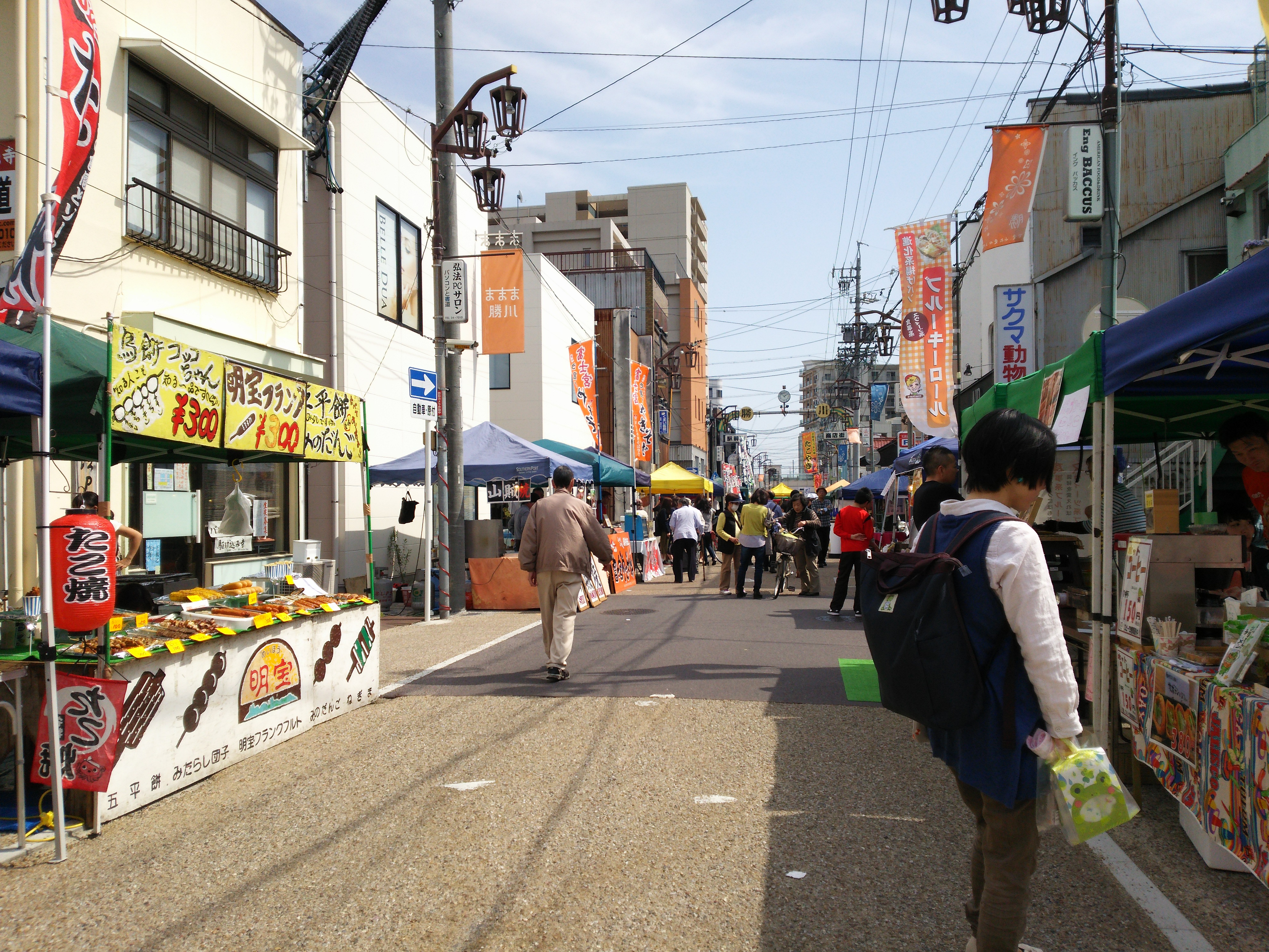 道路はさんで反対側ではカエルは関係ないけど、いろいろ出店が出ていてお祭りをやってました。