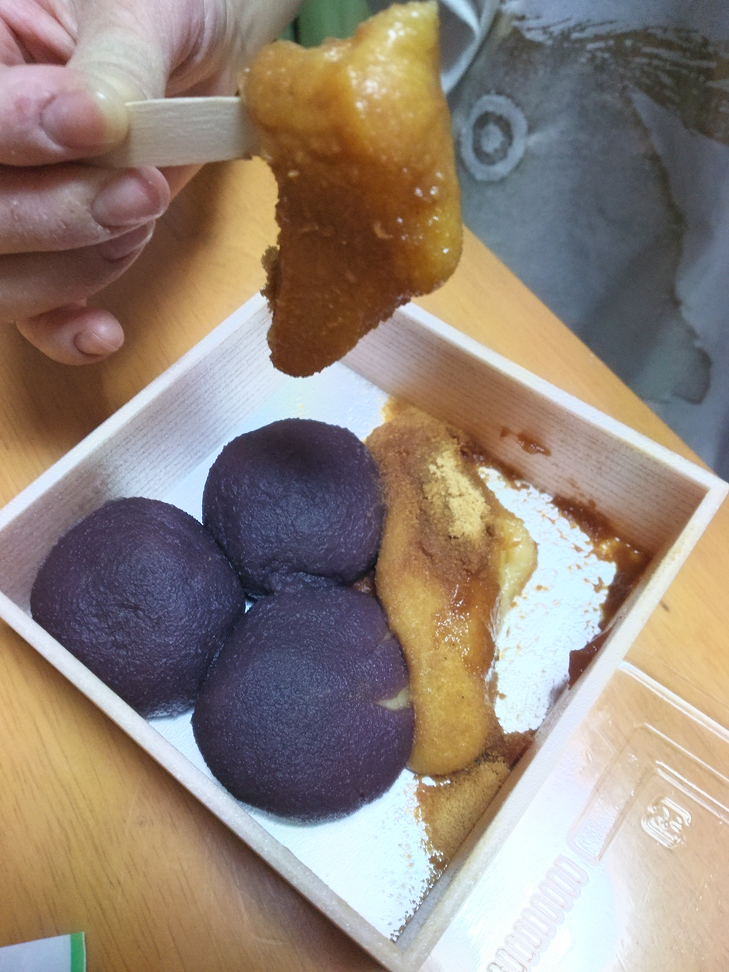 中の写真は撮り忘れたのですが、おじいちゃんとか5人くらいいて、注文するとその場で餅をちぎっては投げちぎっては投げと作ってくれます。