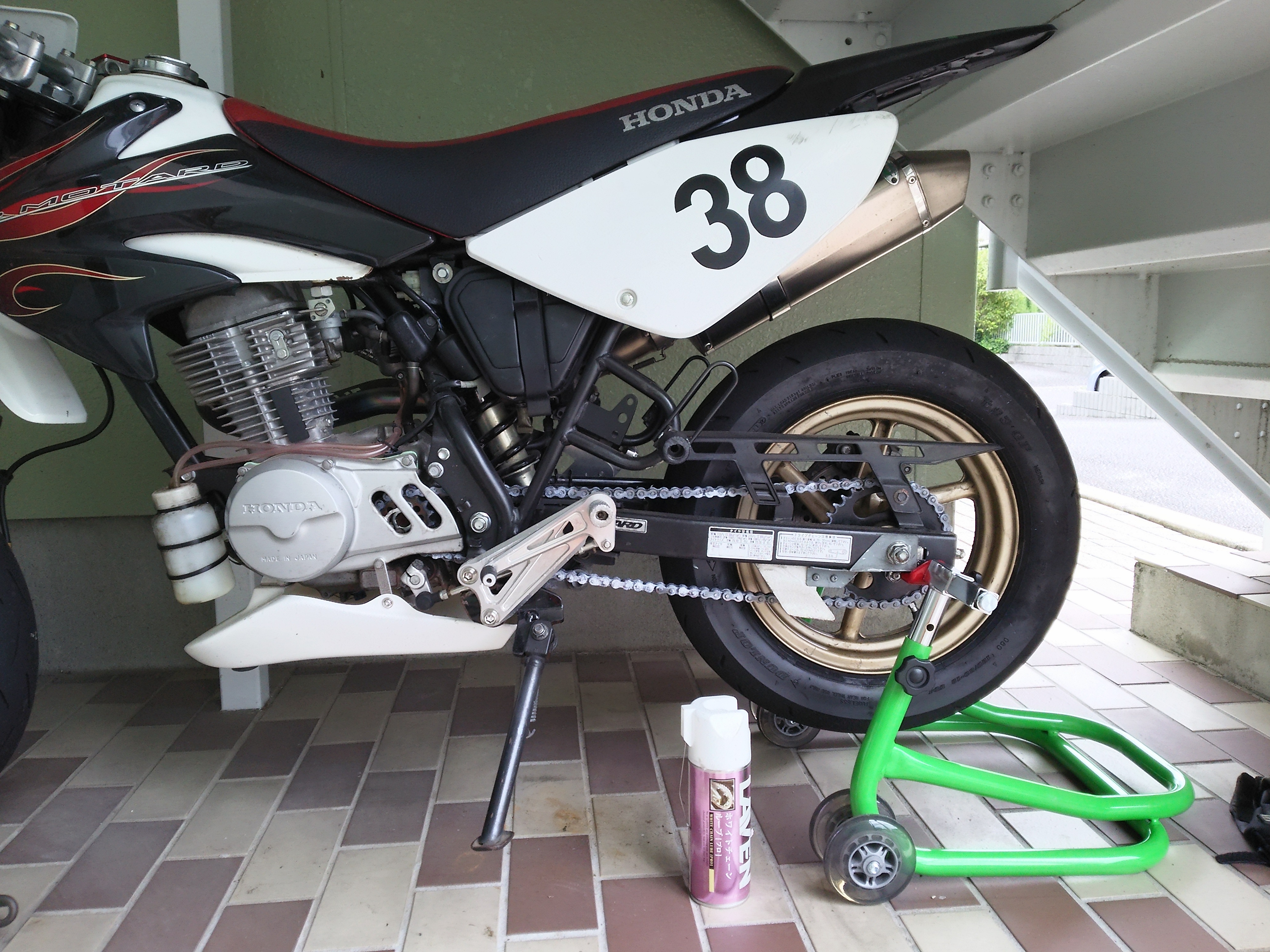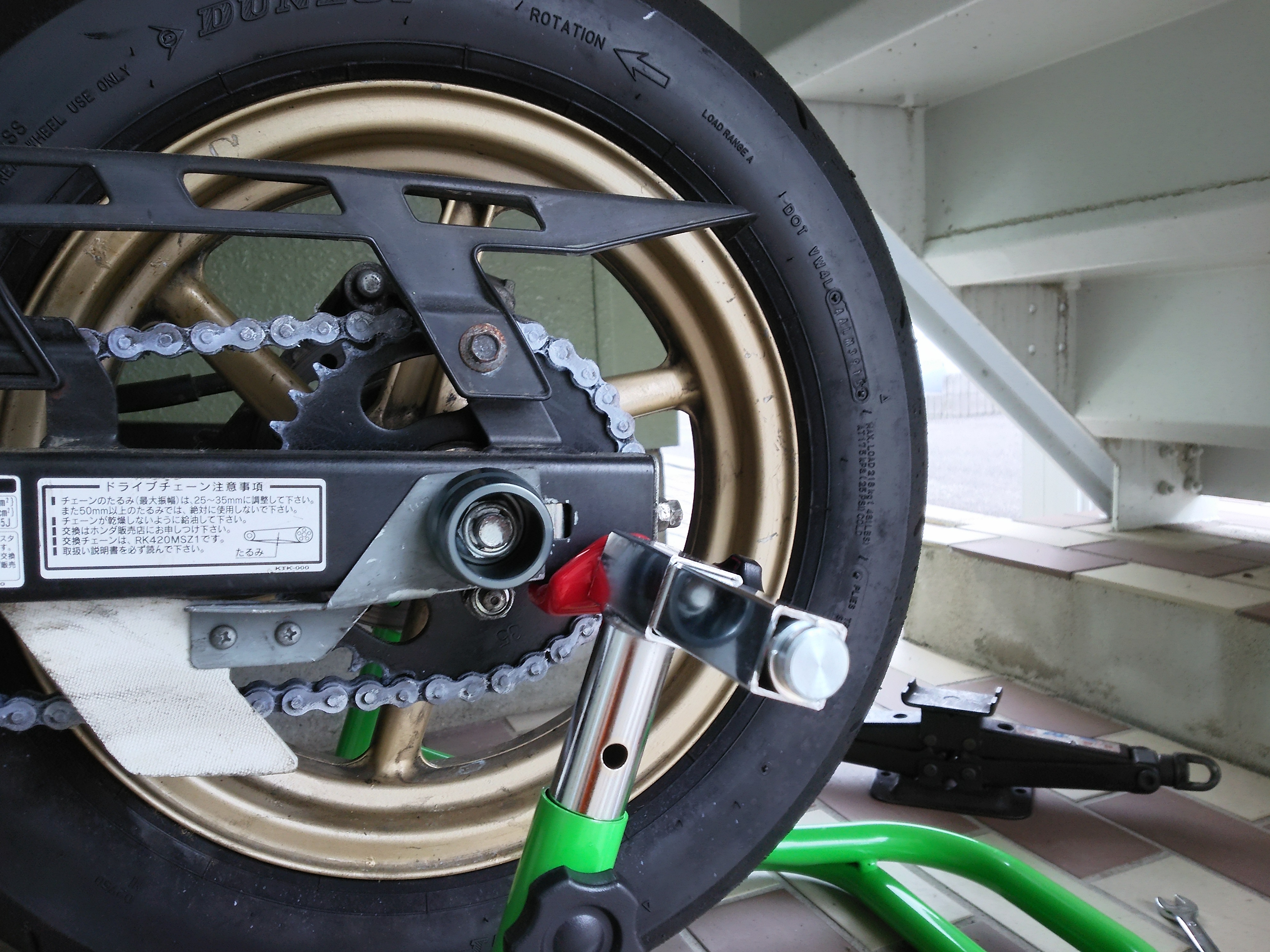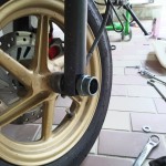 とりあえずリアからつけるため、スタンドかけて