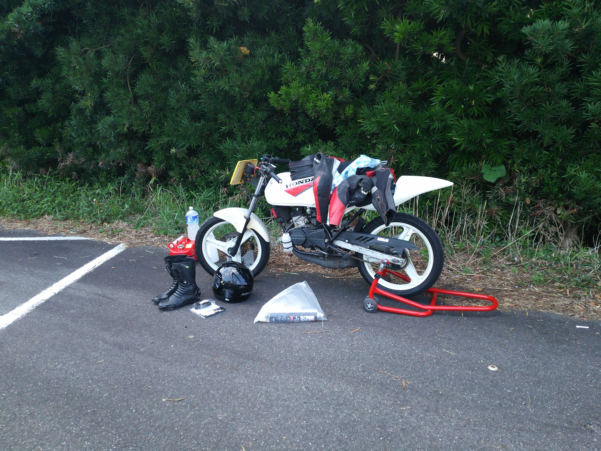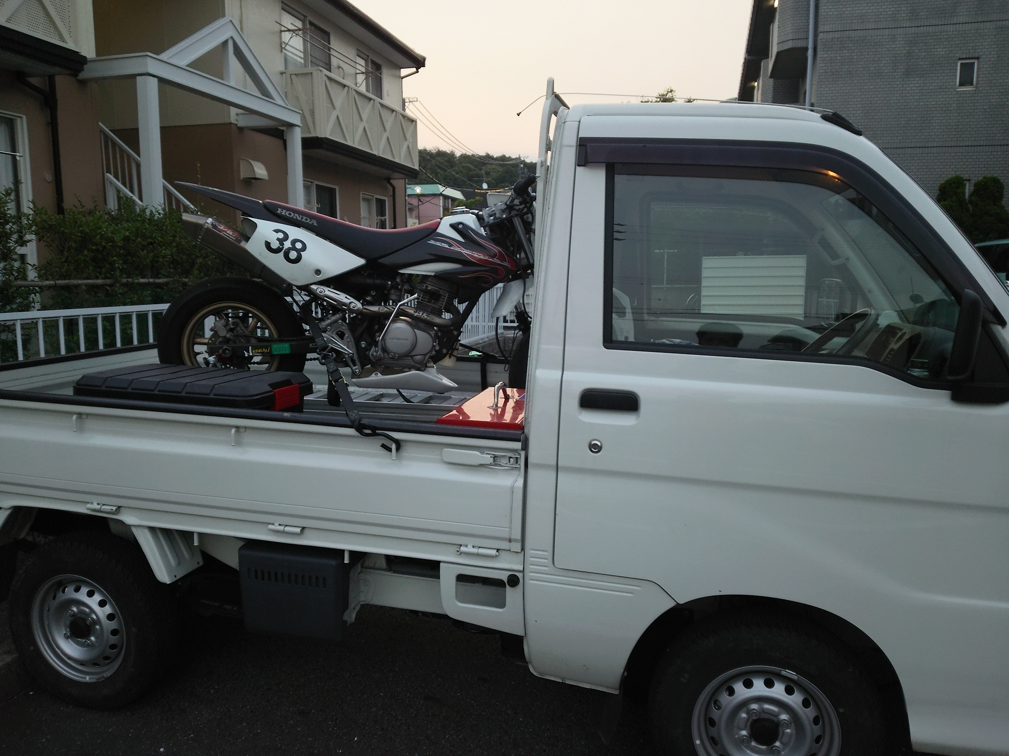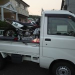前日から嫁さん実家で軽トラを借りてきて、バイクだけは積み込みをしておきました。