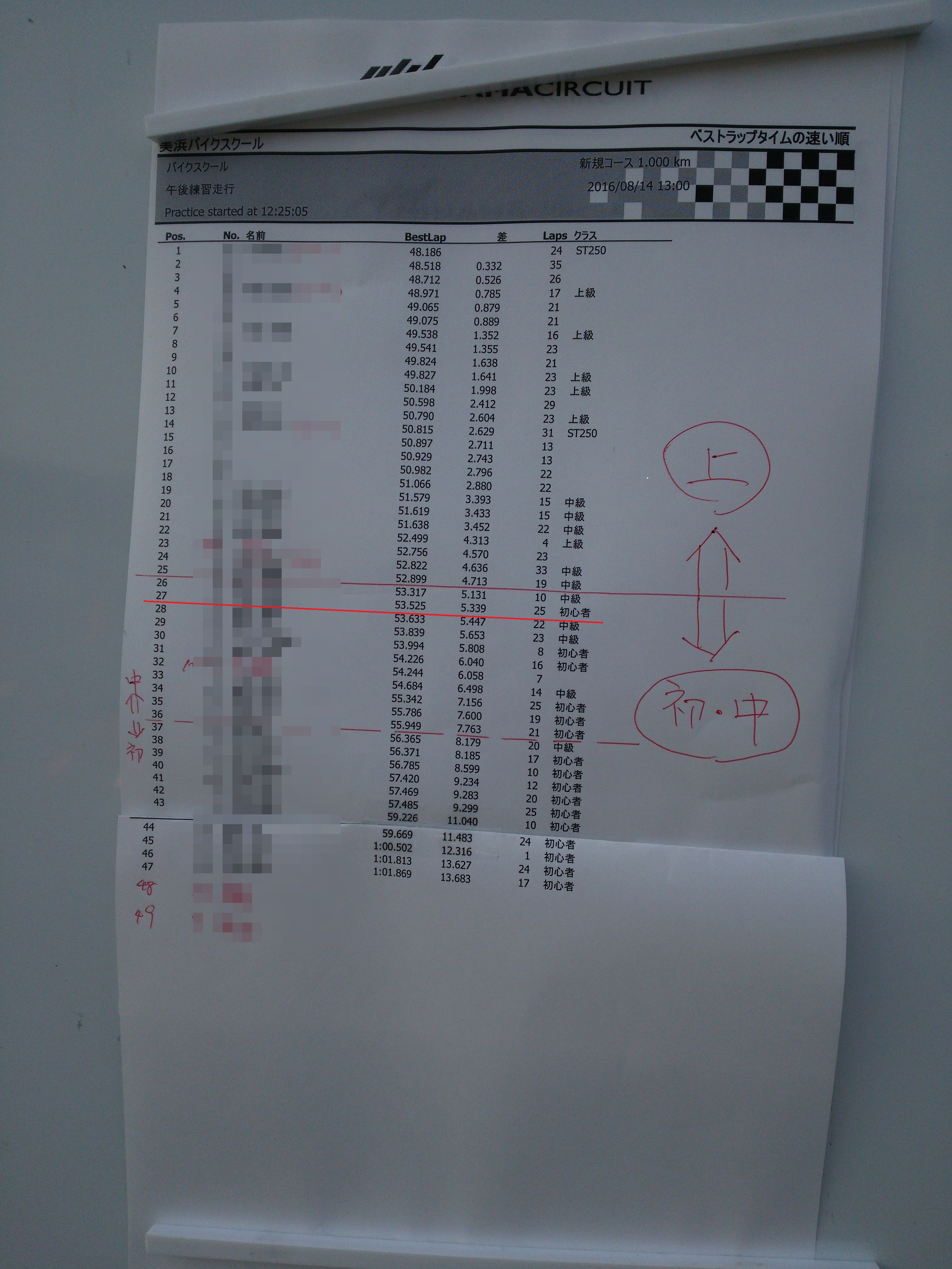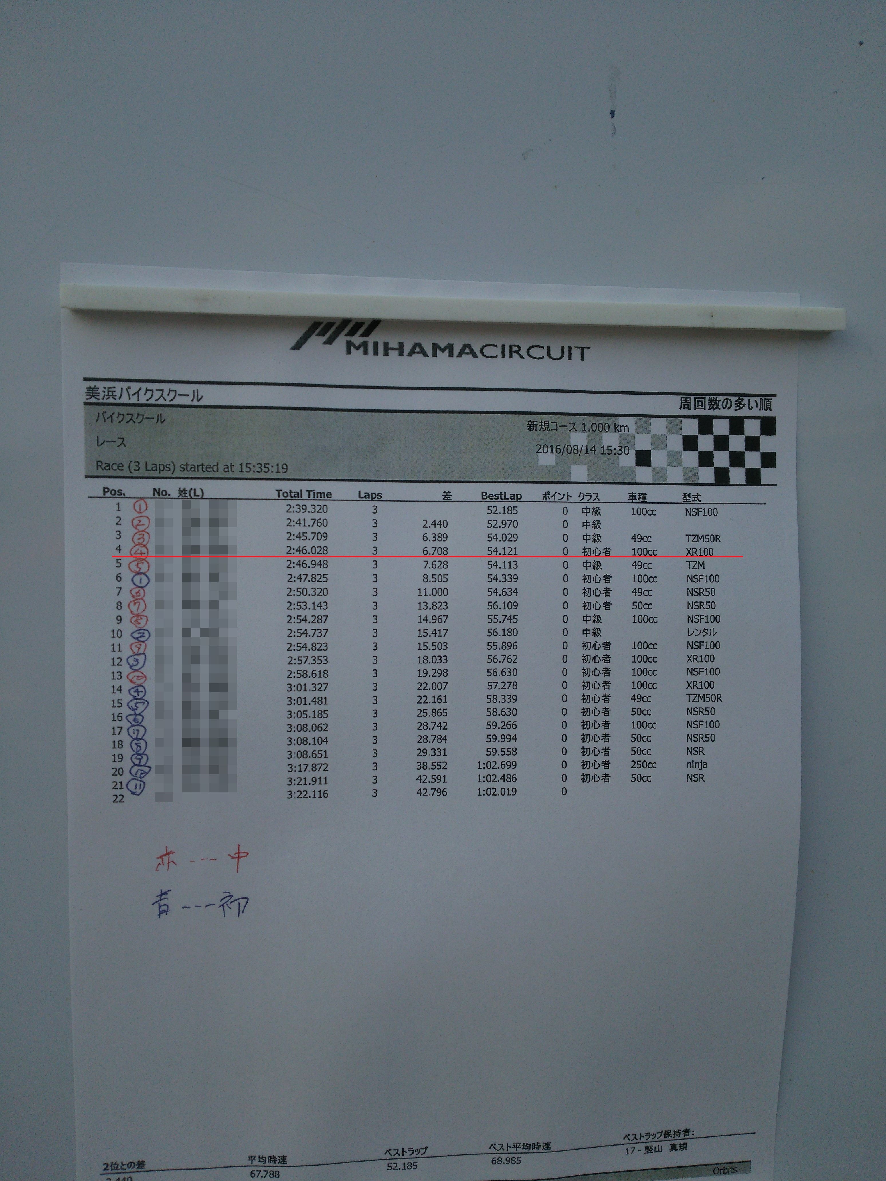 ここでクラス分けと先生が決まるみたいですが、久しぶりに乗るのと美浜も冬に走った以来だったので、なかなかビビりミッターがいい感じに働いていました(´д`ι)