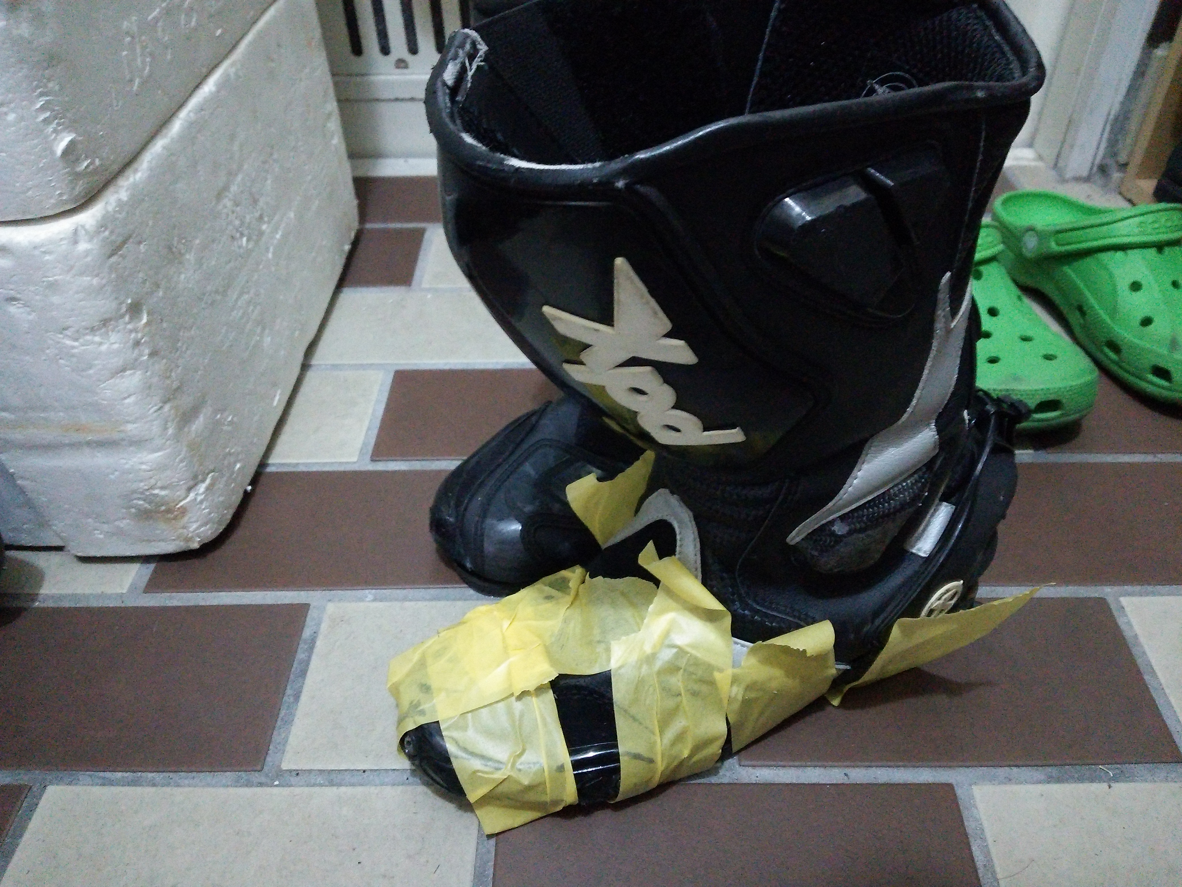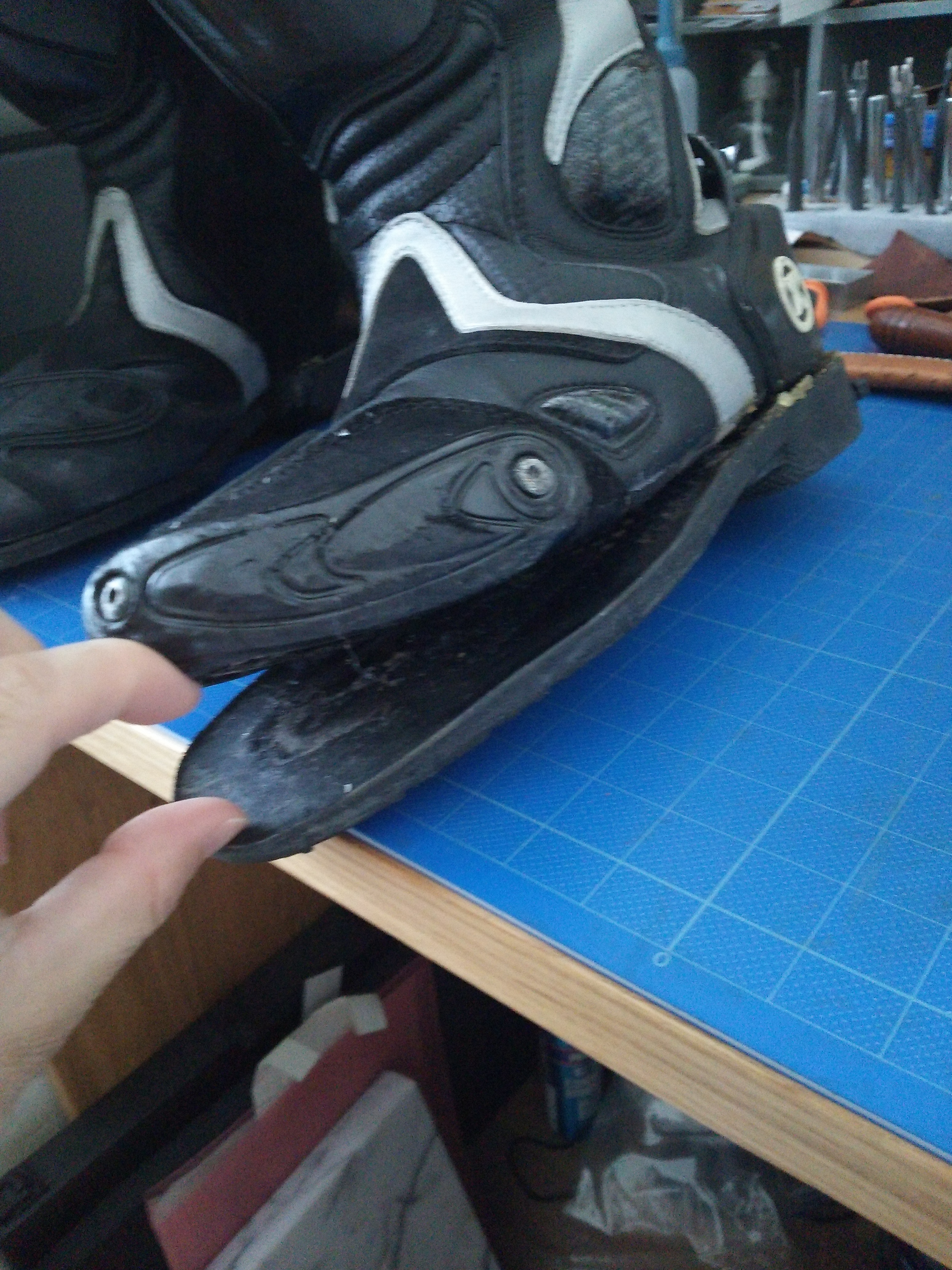 今履いているレーシングブーツなのですが、8年くらい前に初めてレースに出た時に買ったXPD製のブーツなのですが、先日の美浜の練習で靴底がパカパカになってしまいました。