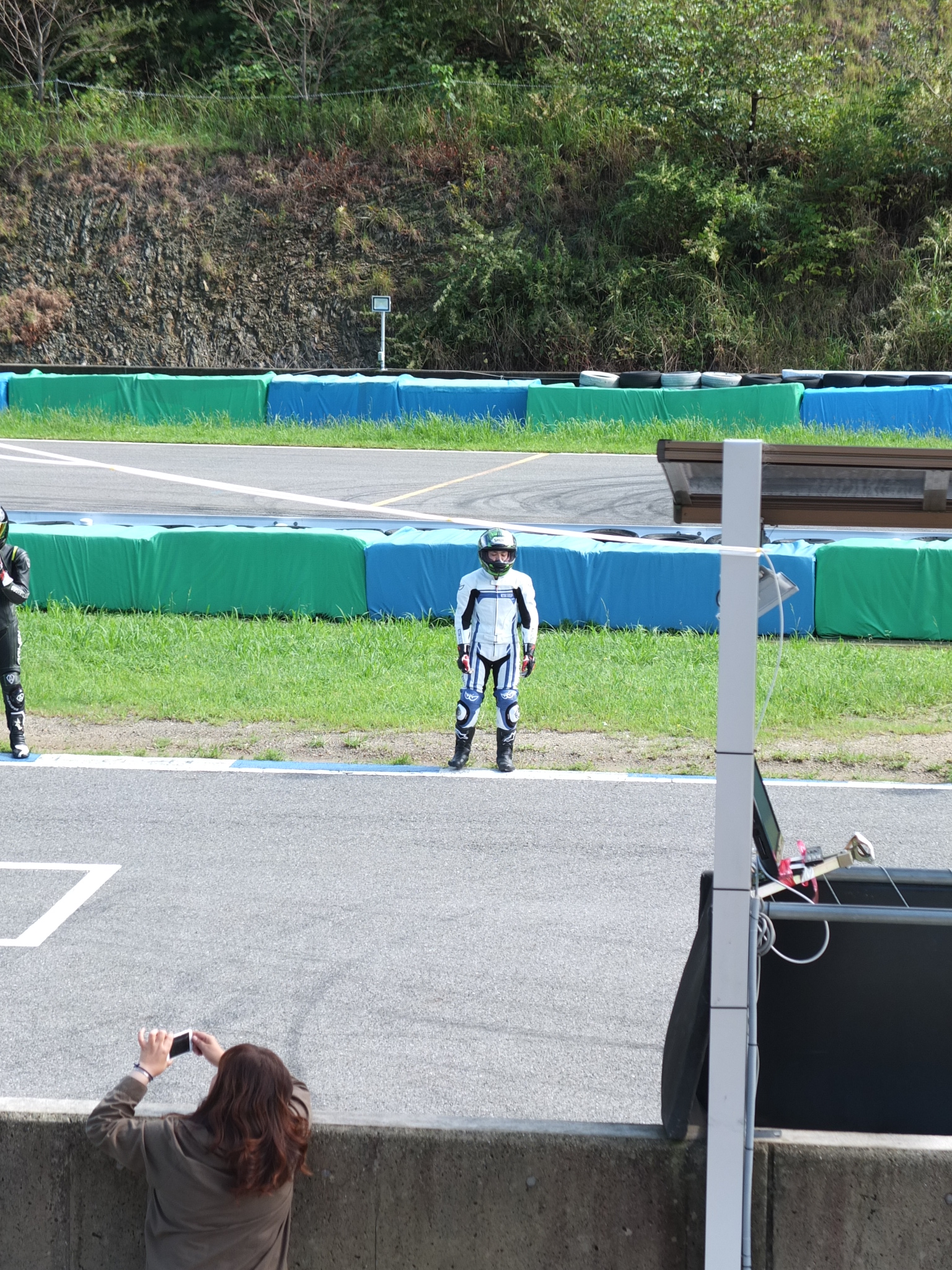 その前にコース上で記念撮影ができたので、親父と兄貴の写真を撮り、