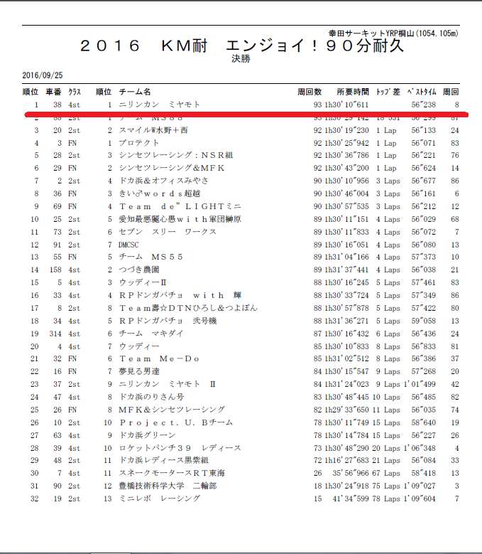 ちなみに一緒に走ったバイク屋さんのお客さんたちは23位と初めてにしてはいい結果だったと思います。