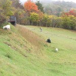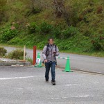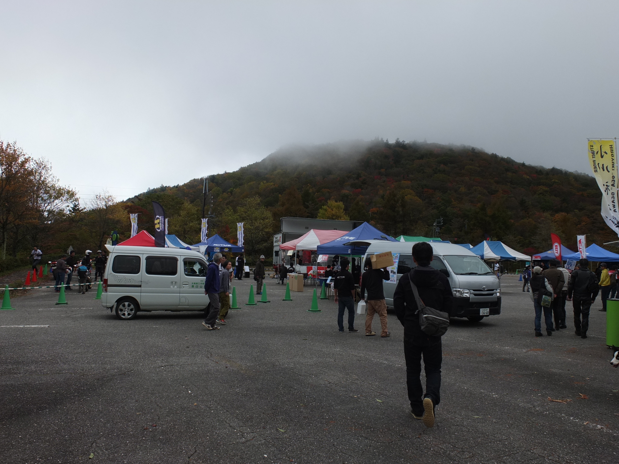 茶臼山高原道路を走っていくと、途中パトカーが何台か止まっていて、こっち来て~みたいな感じで棒を振っていたので、これが噂に聞く車検場か?と思っていたら、この先で事故があったらしく、通行止めだから迂回してってことでした。