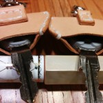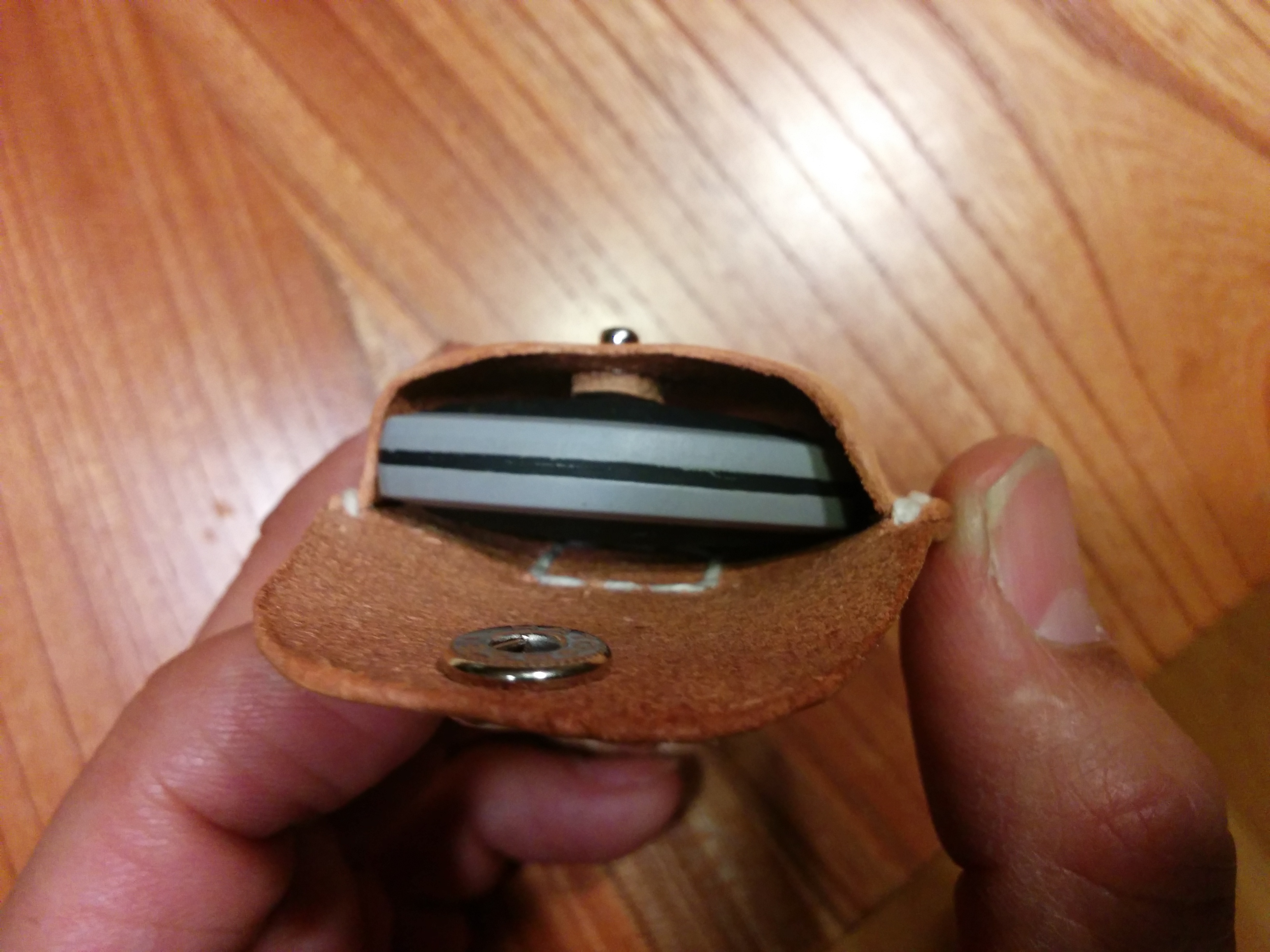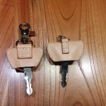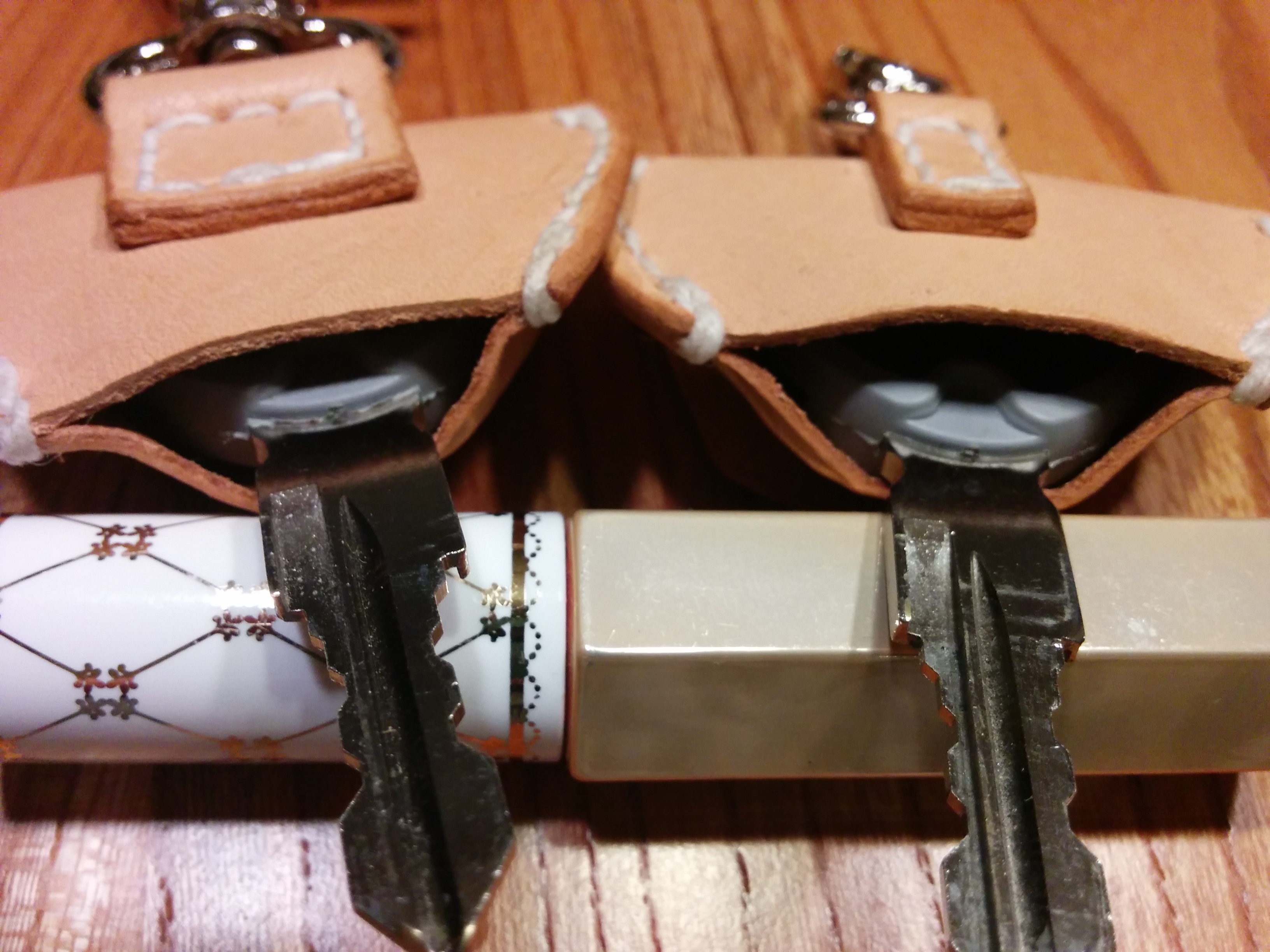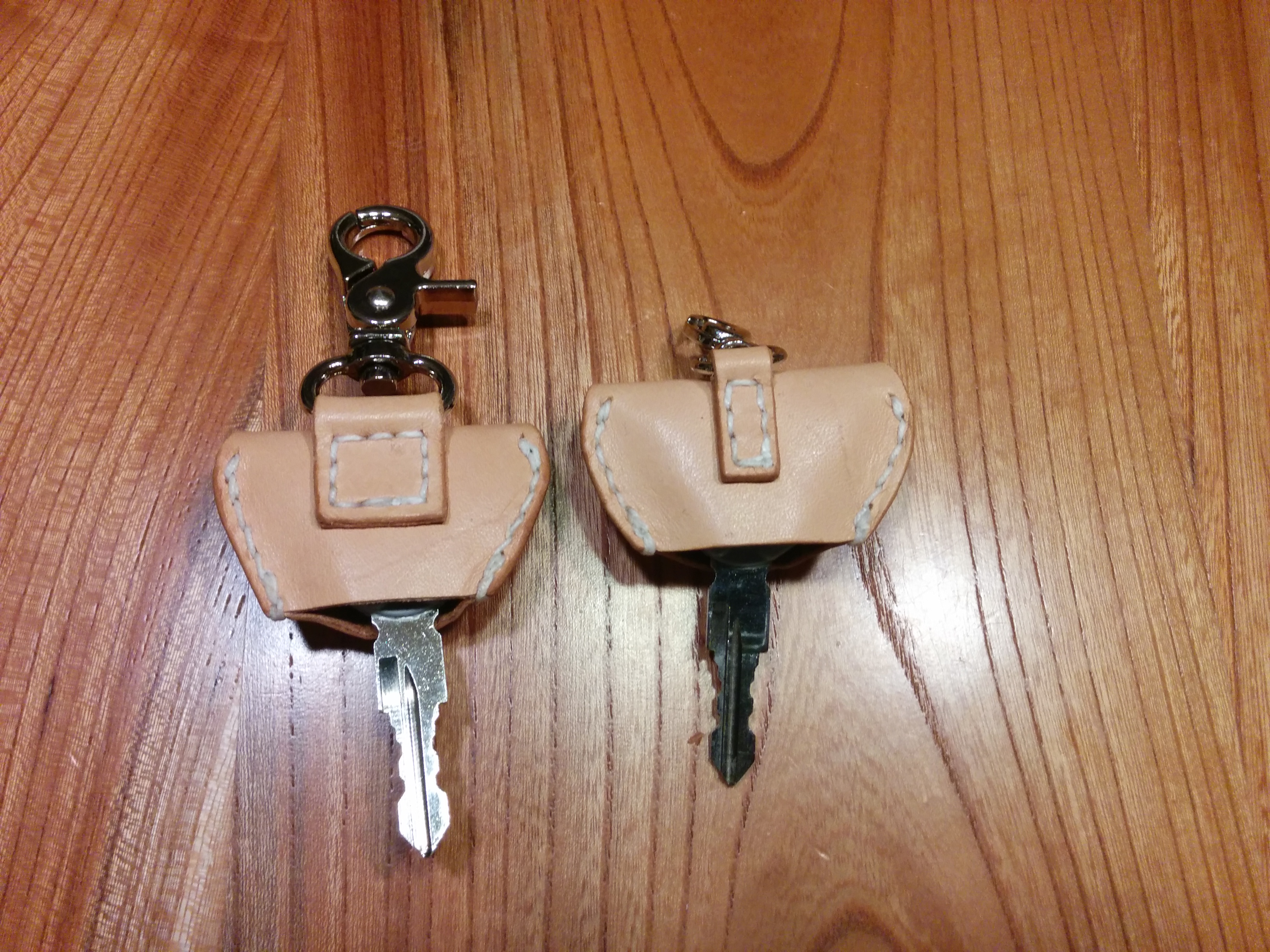 鍵の真ん中がくぼんでいる鍵だったので、裏に厚めの当て革をしておきました。