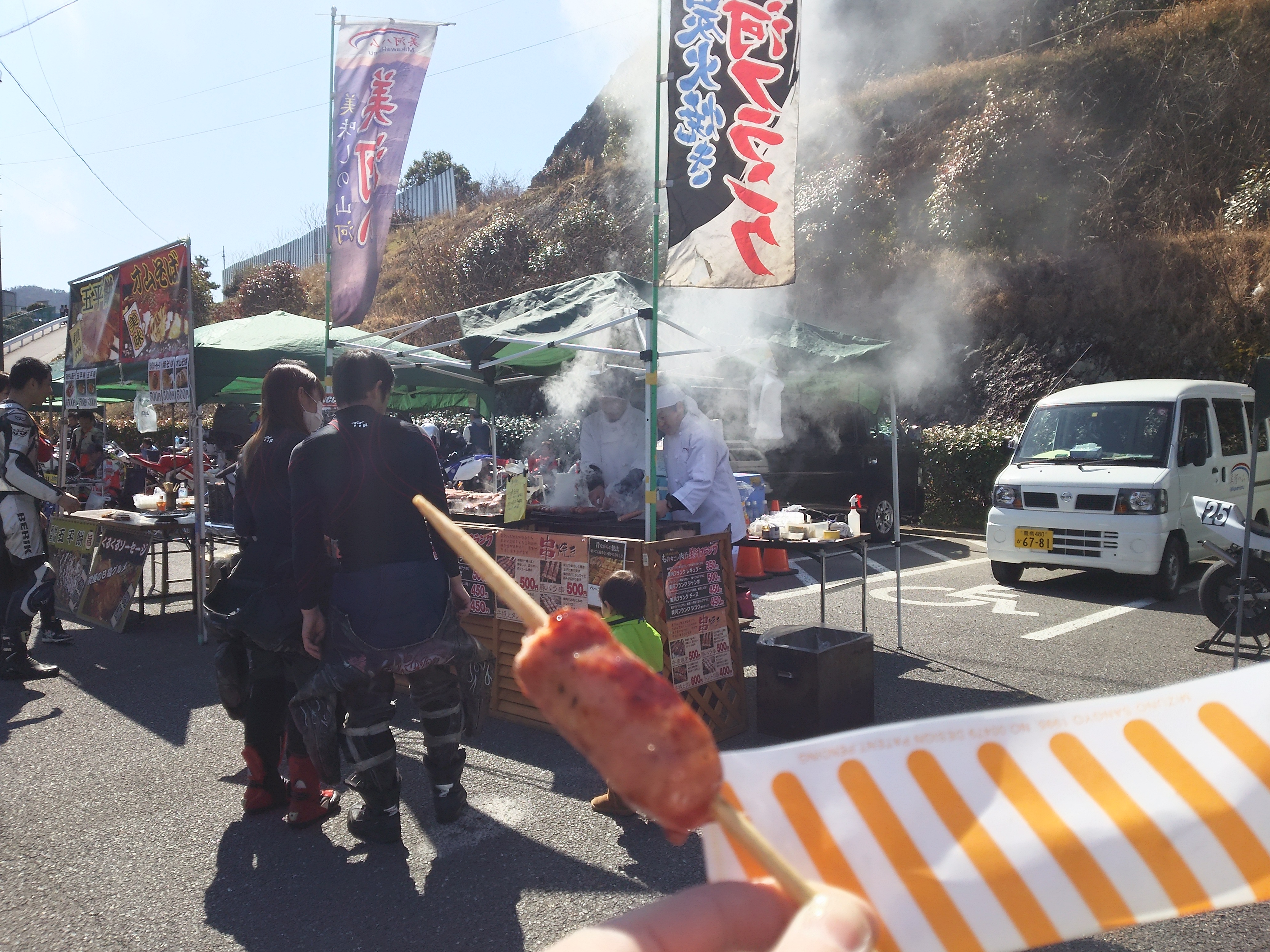 2本目が終わったとこでお昼休憩にし、持ってきていた弁当をたいらげたのですが、目の前にこの出店が出ており、我慢ができませんでした。