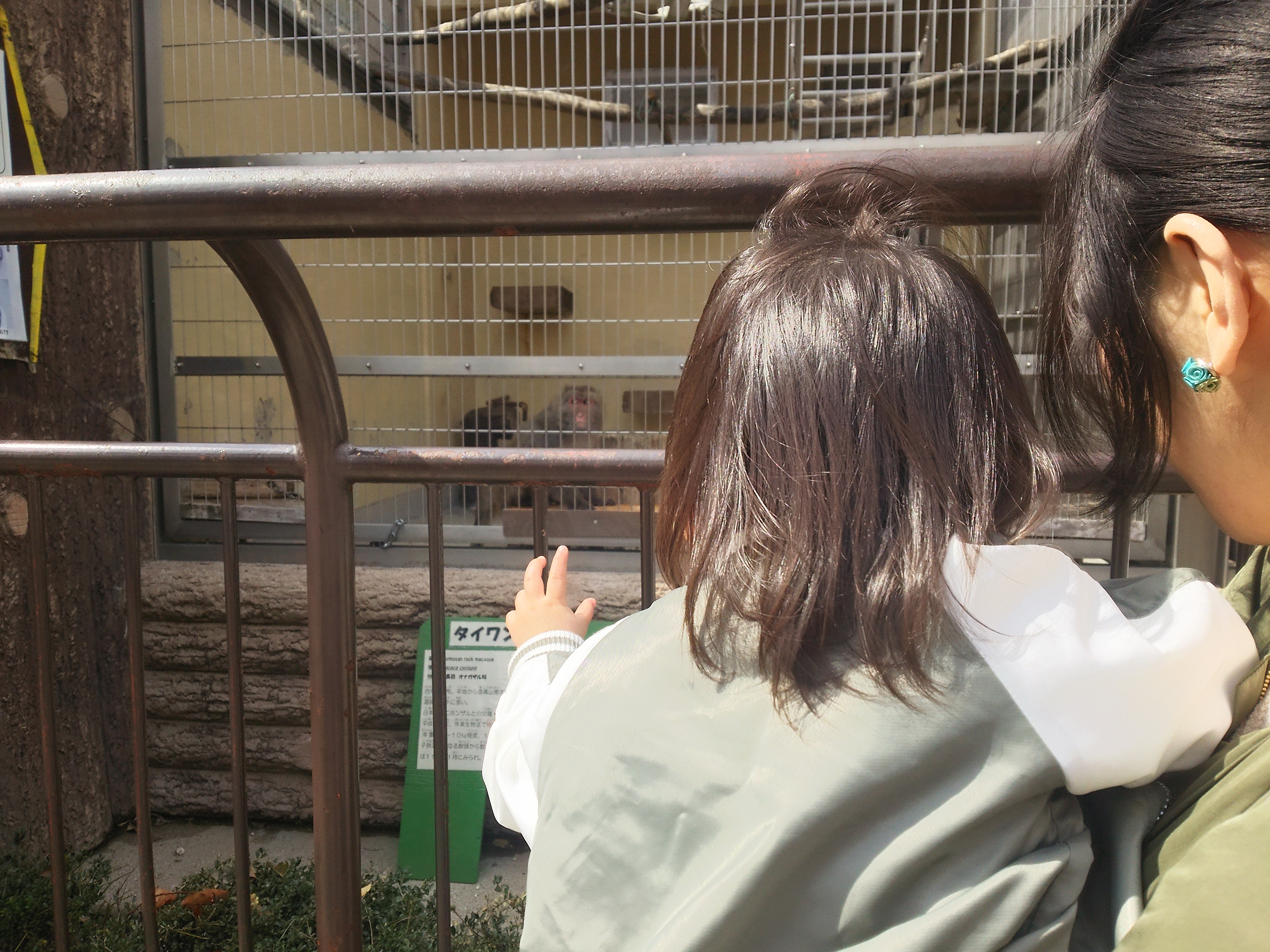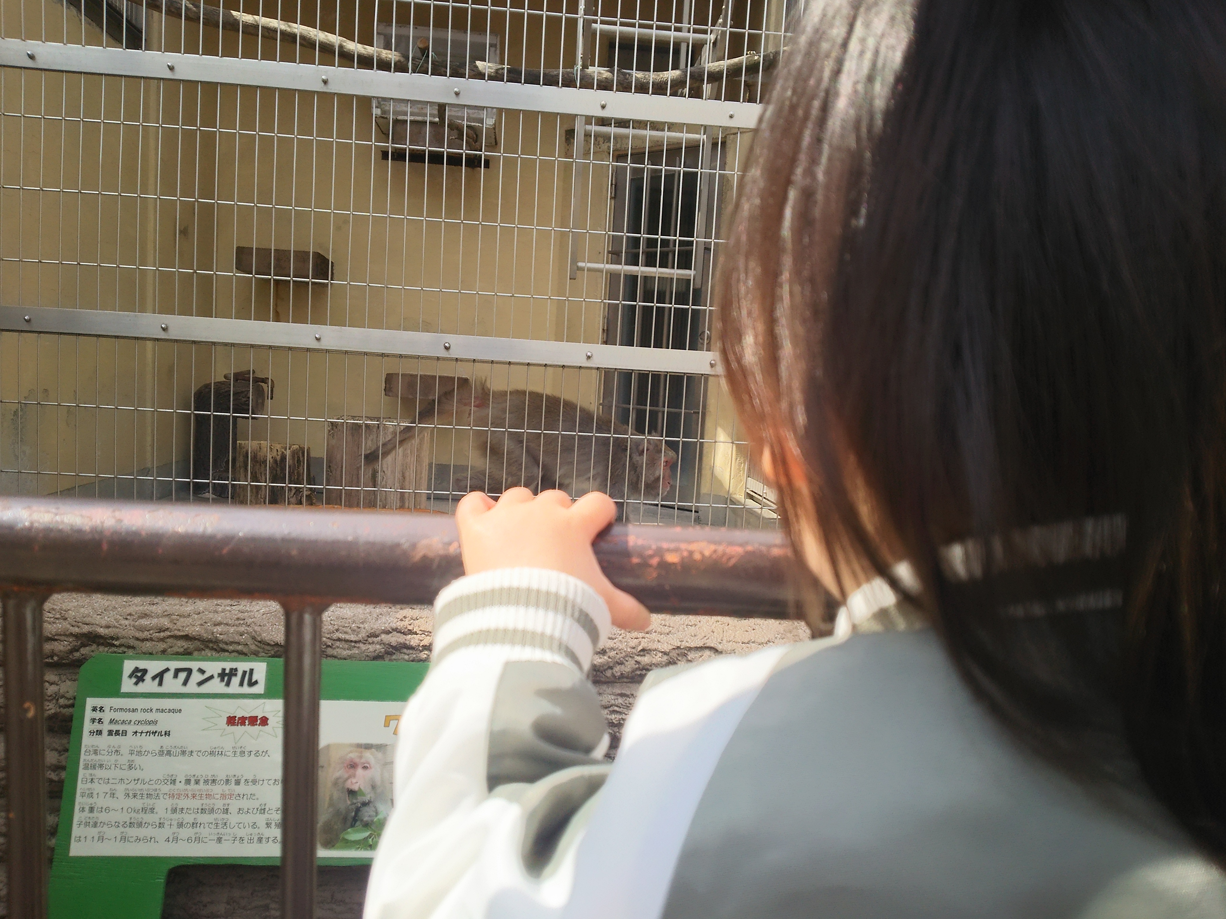 最初はサルを見に行き、初めて見たので、子供が興味津々でした。