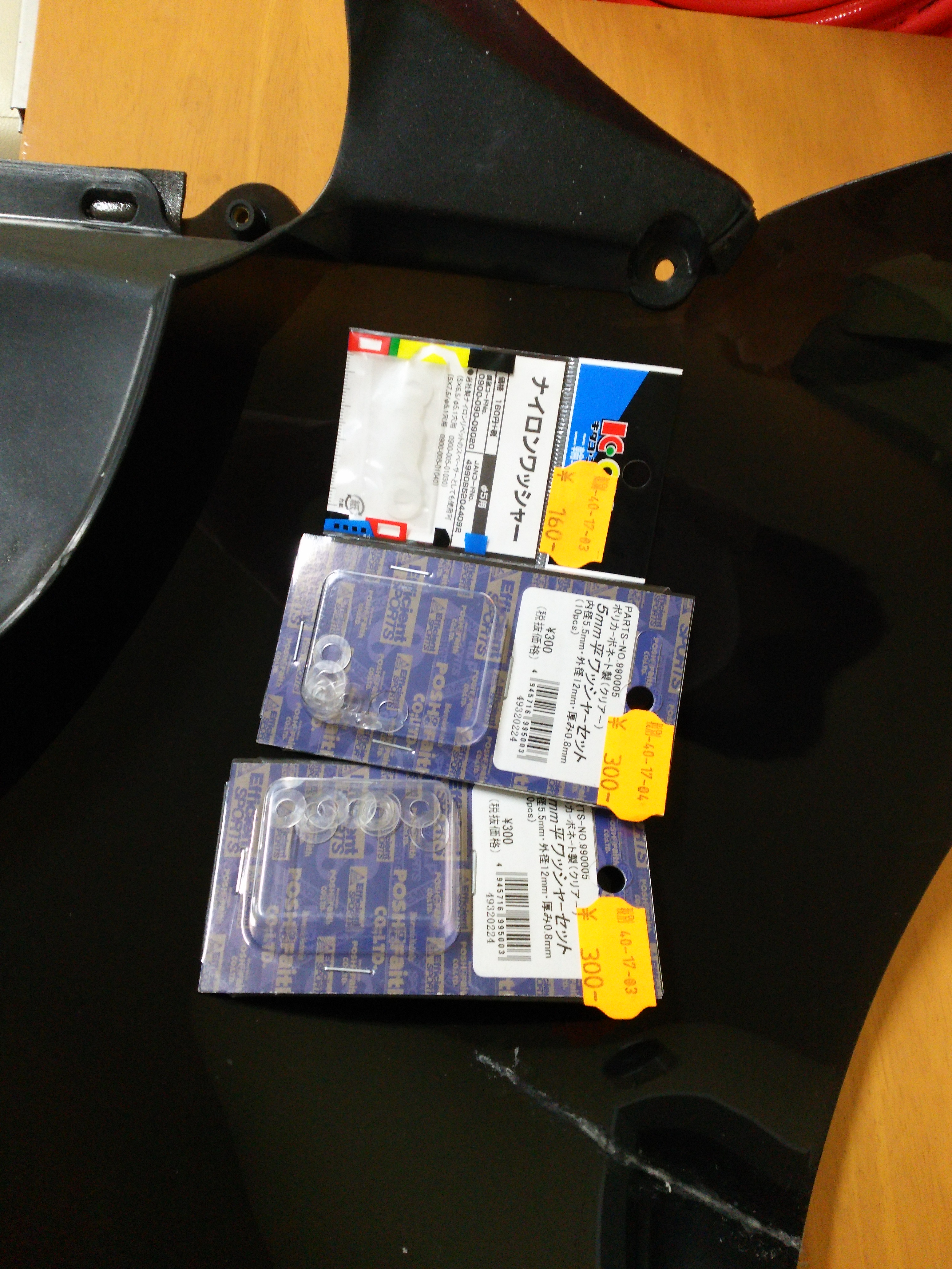 スクリーンとかカウルを留めているボルトのゴムのワッシャーがちぎれたりしていたので、ついでにプラワッシャーに交換しました。
