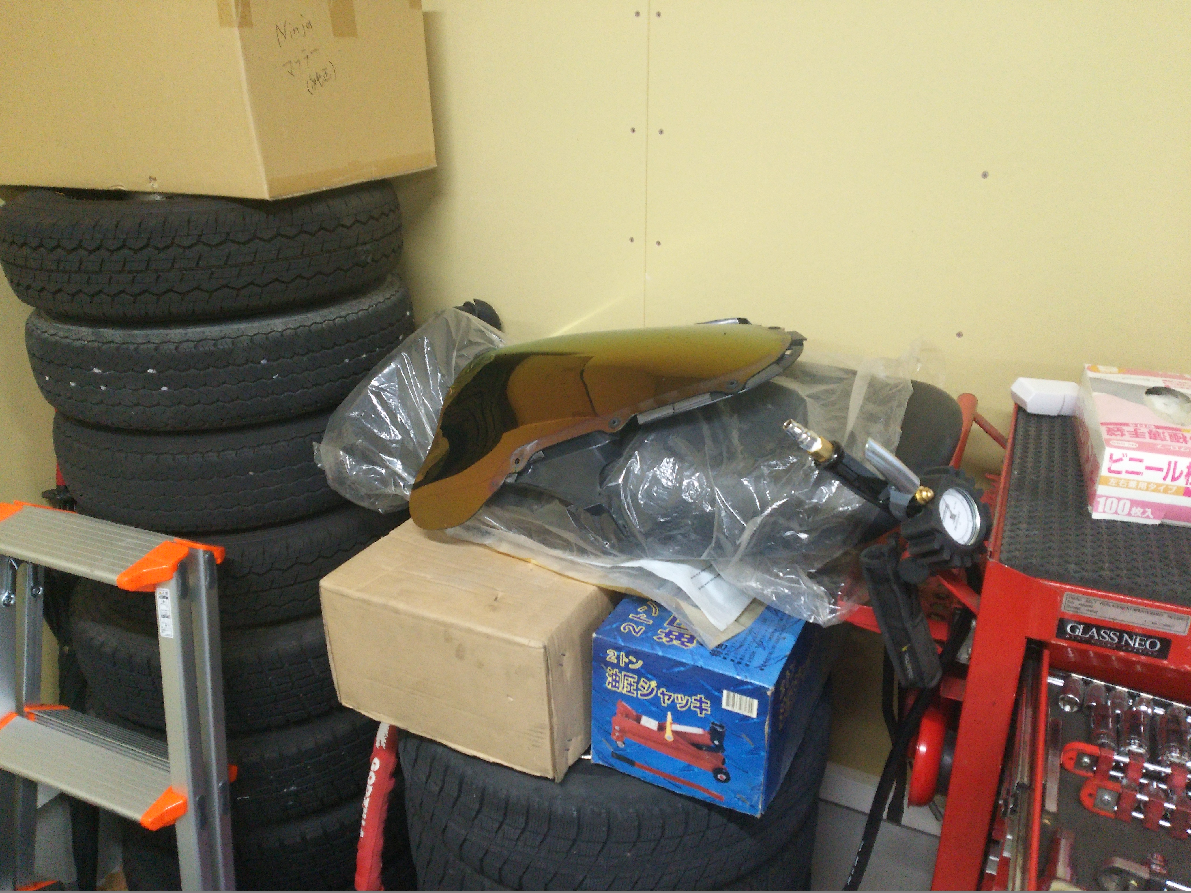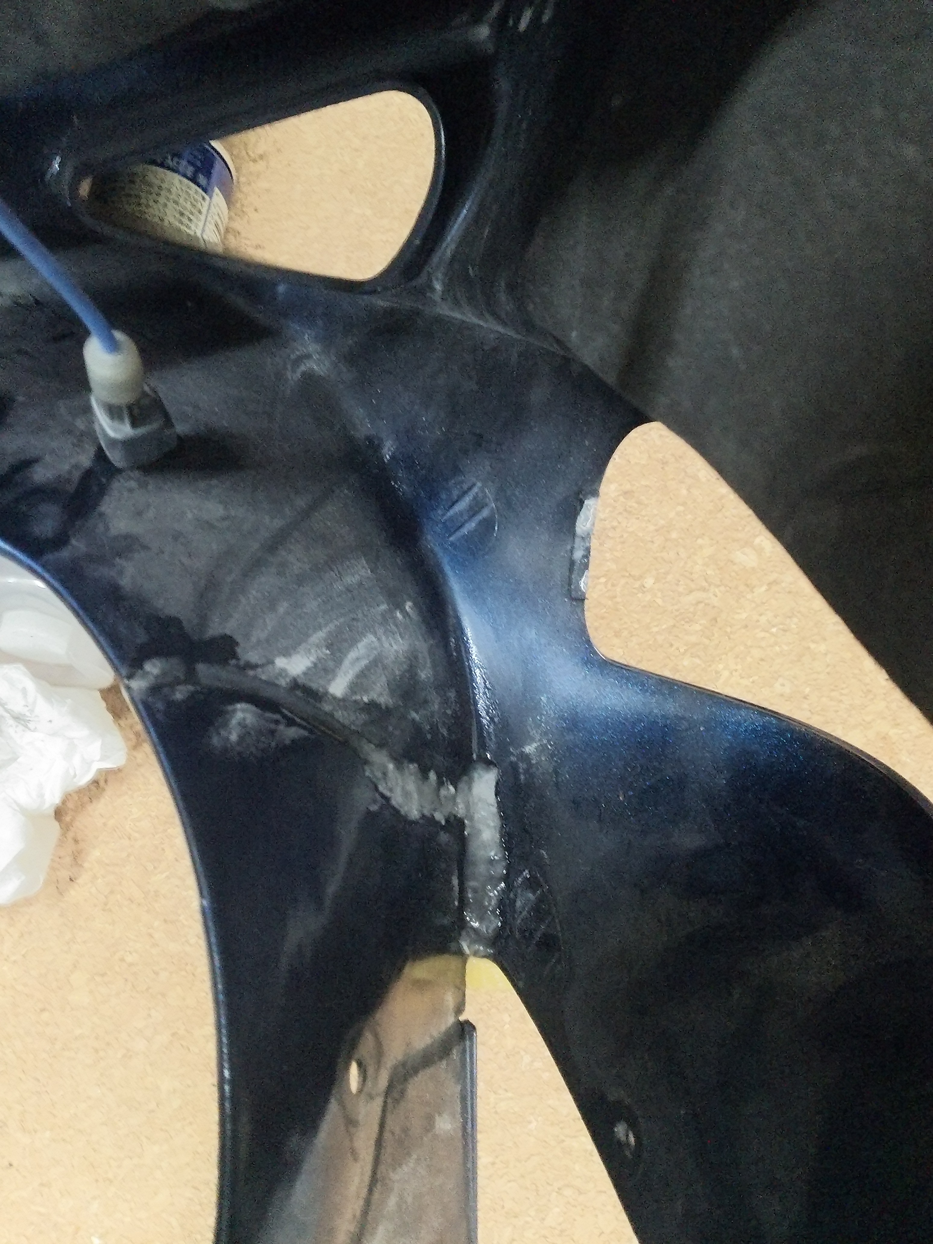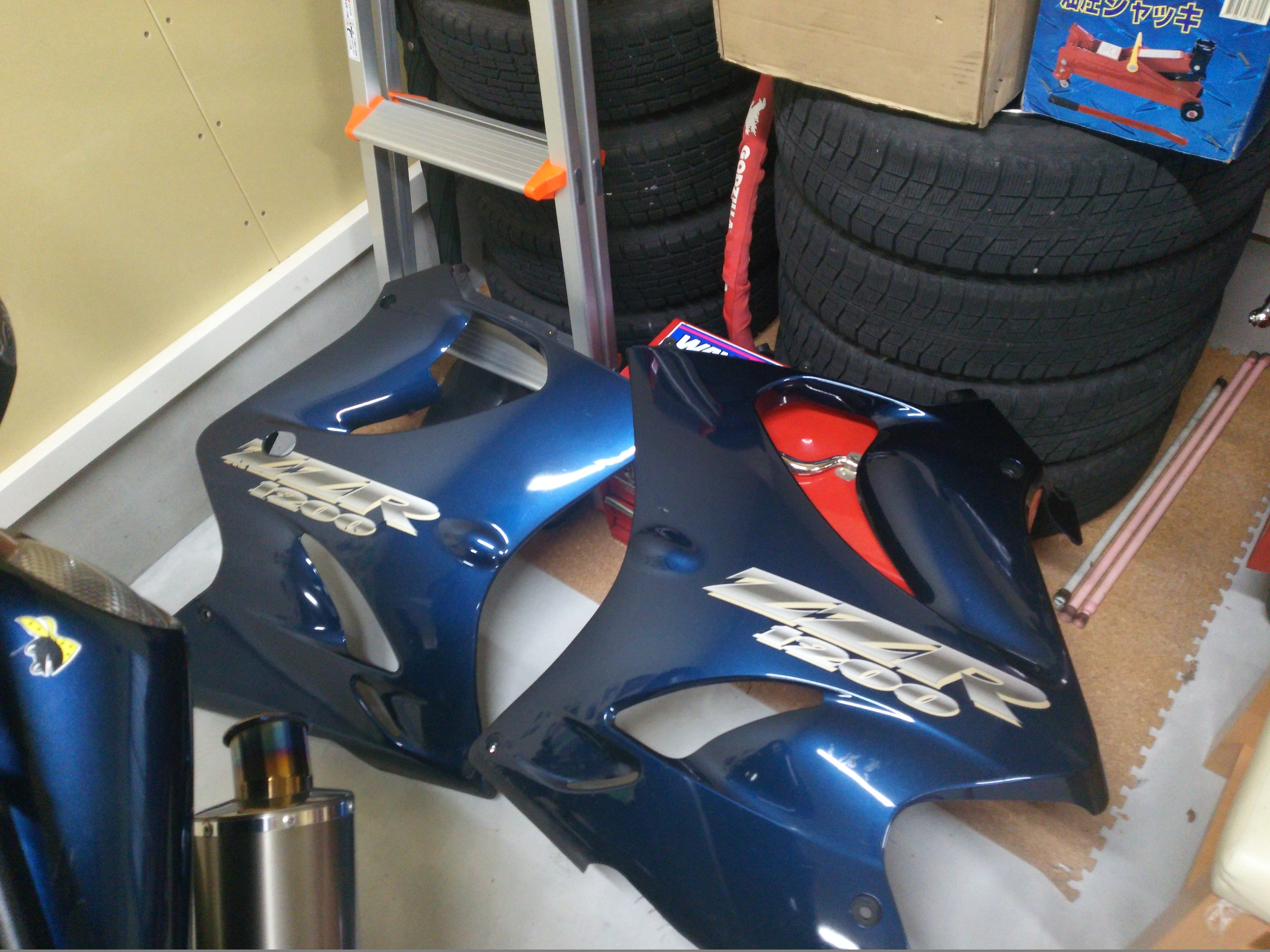 先日立ちゴケしたカウルですが、とりあえずの応急処置しかしていなかったので、ちゃんと補修せないかんと思い、やっとやることにしました。
