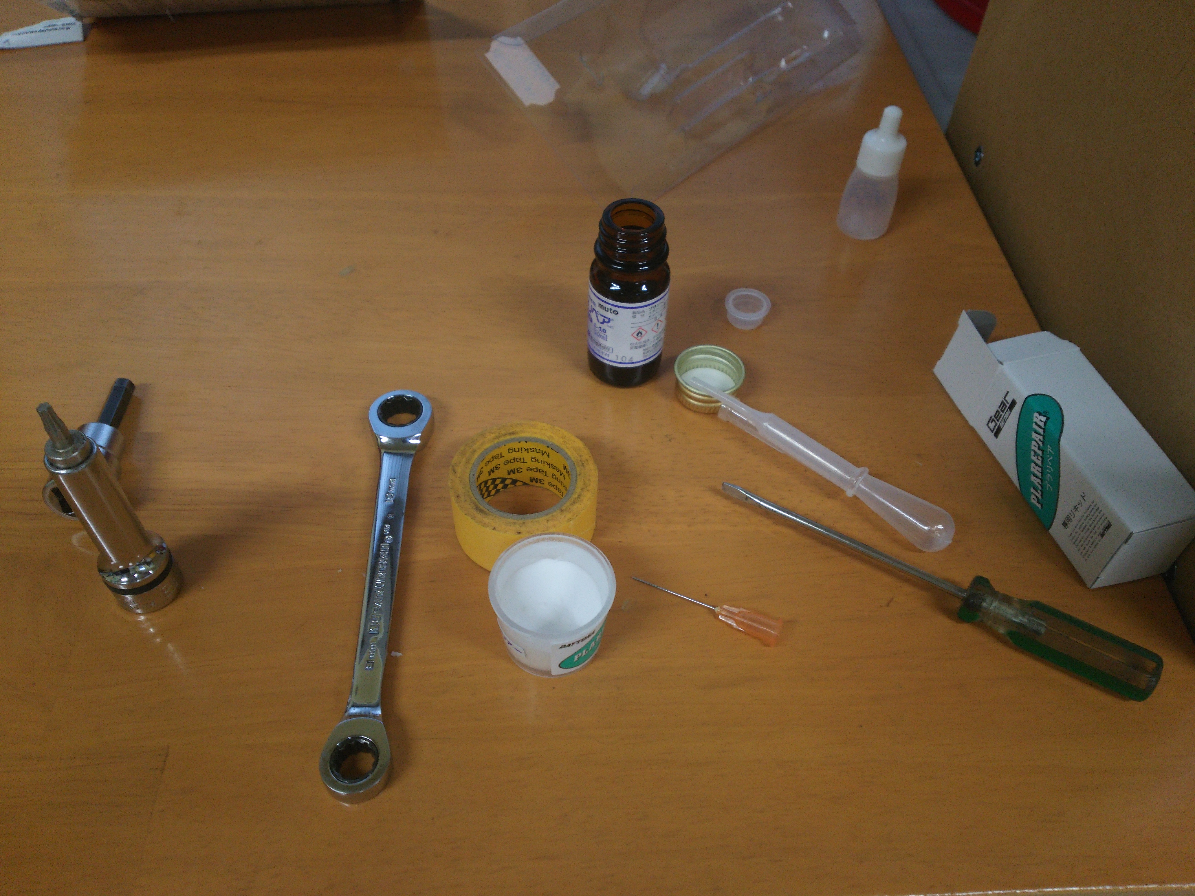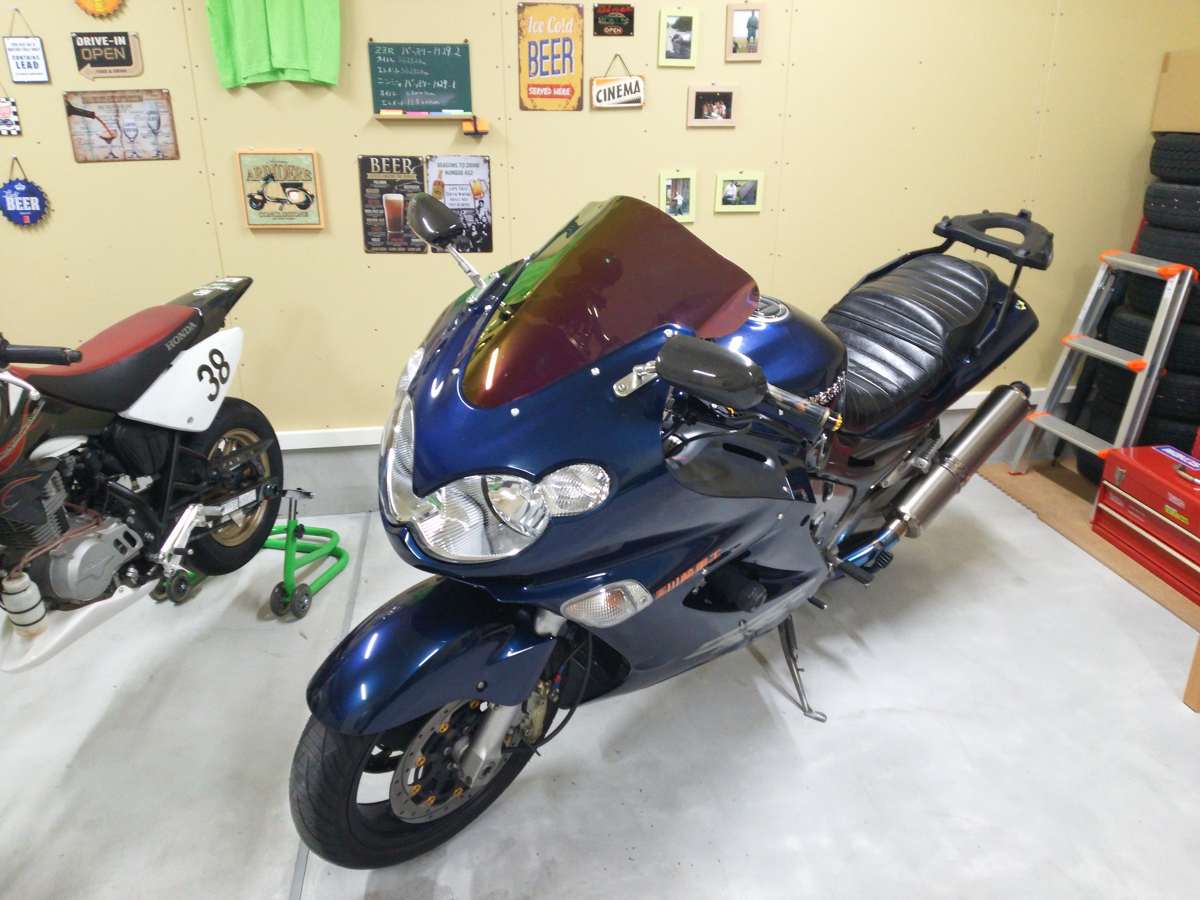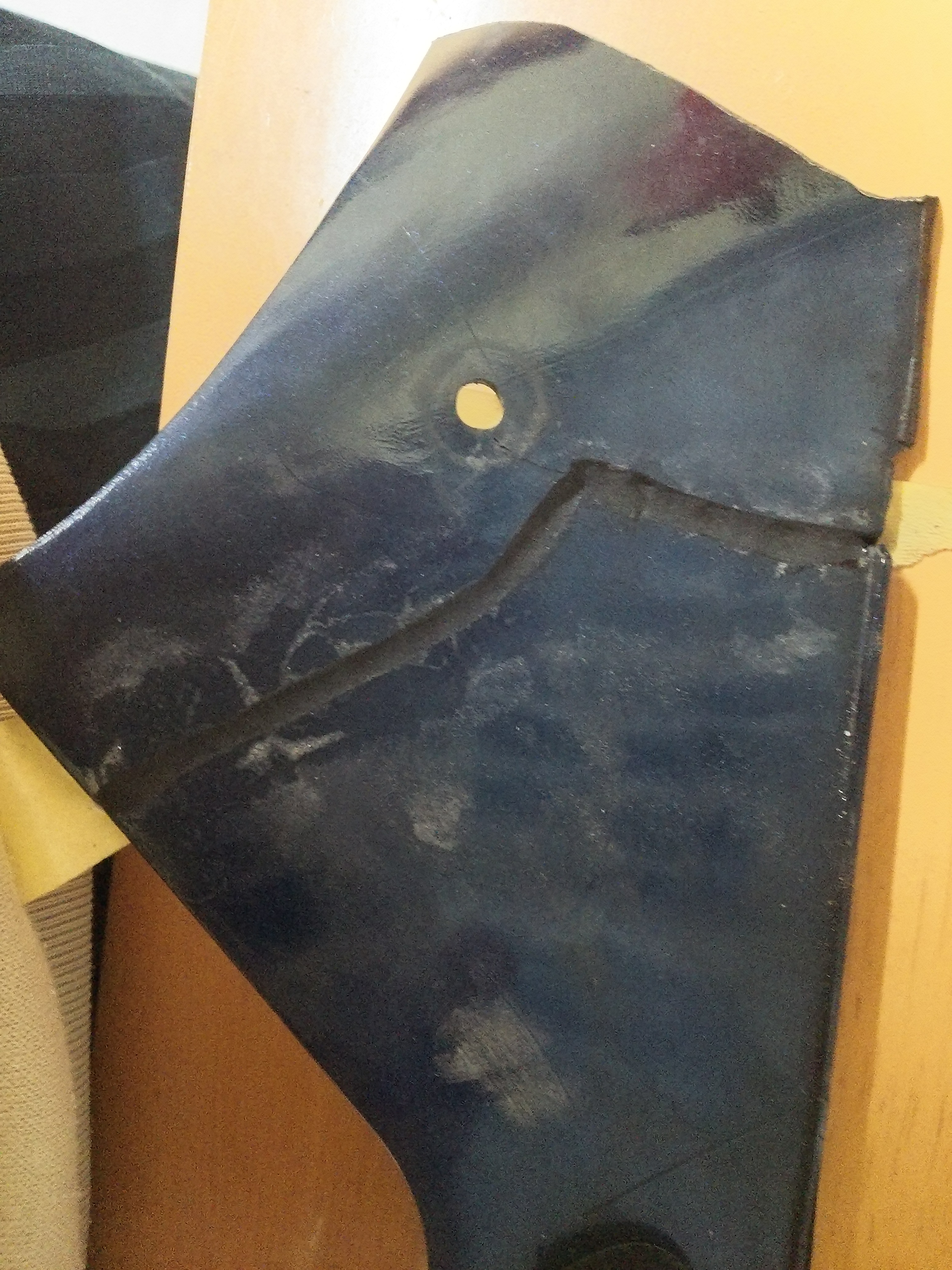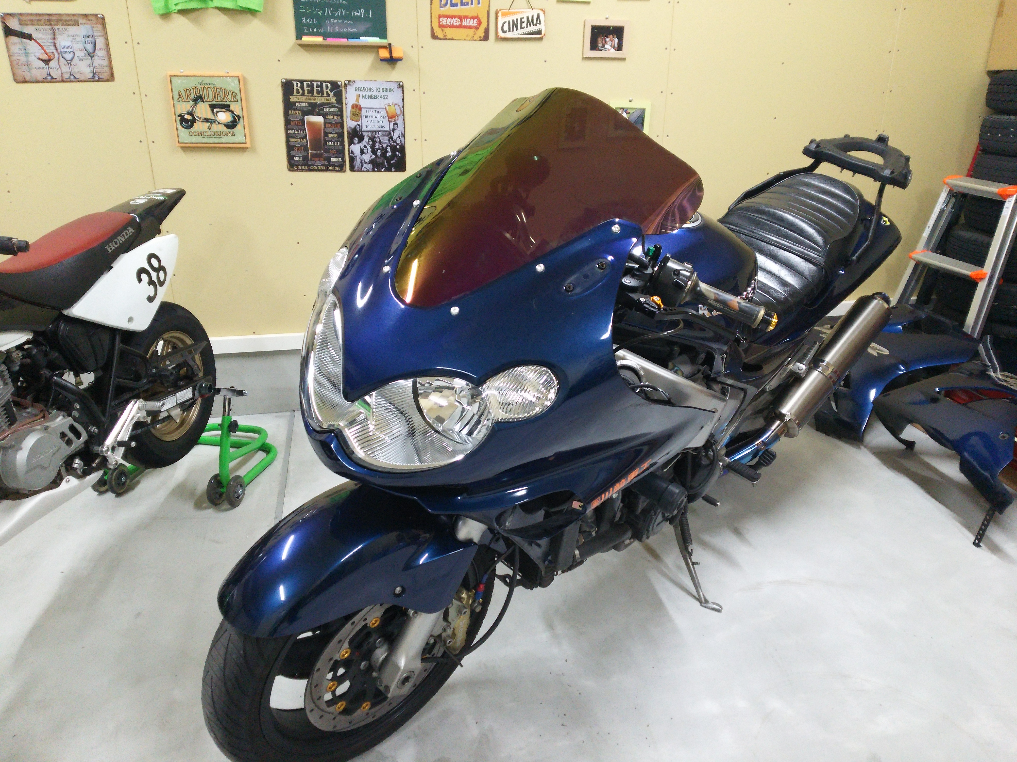 先日立ちゴケしたカウルですが、とりあえずの応急処置しかしていなかったので、ちゃんと補修せないかんと思い、やっとやることにしました。