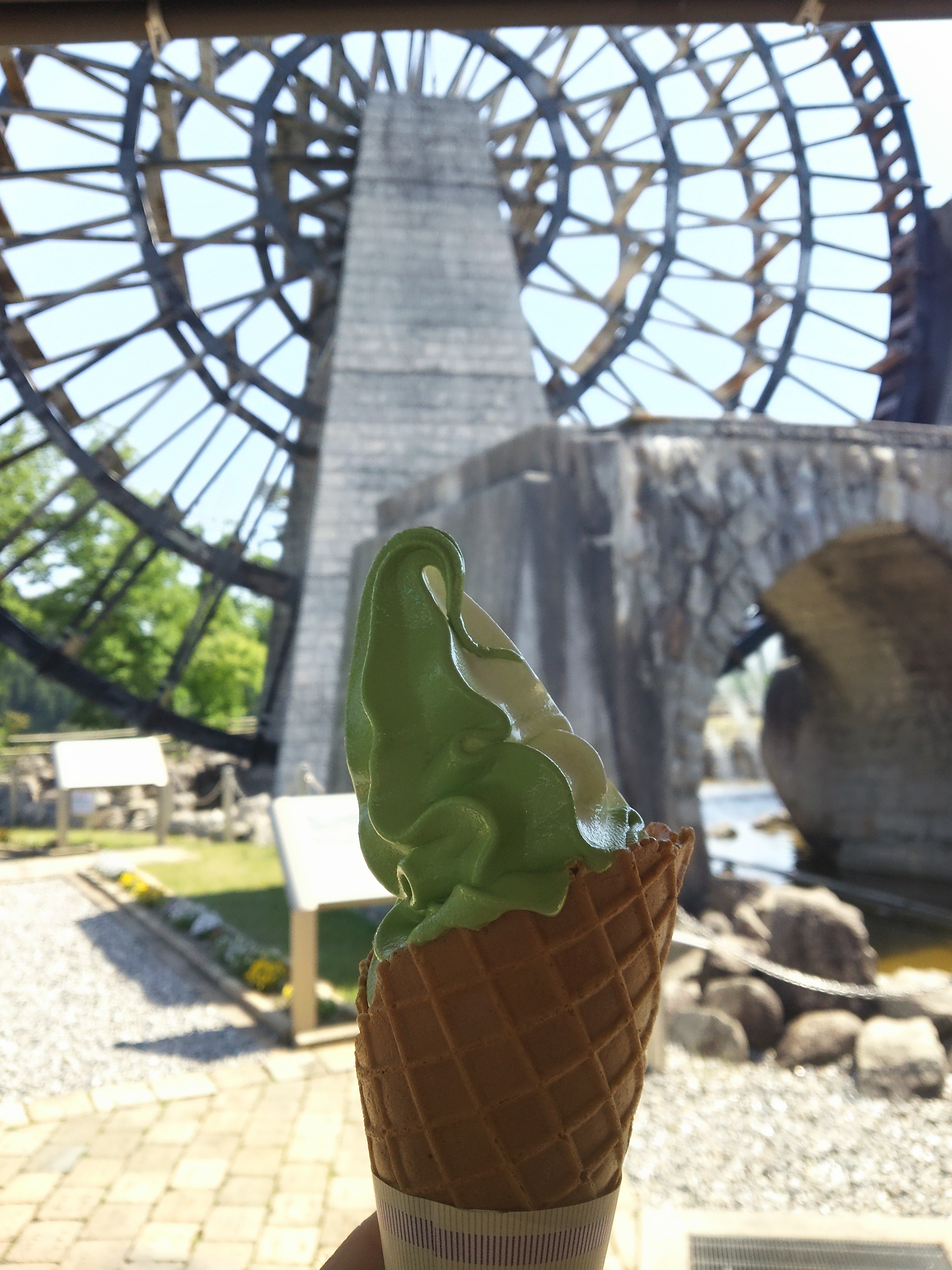 もらうものもらったら、売店に戻り、ソフトクリームを注入です。