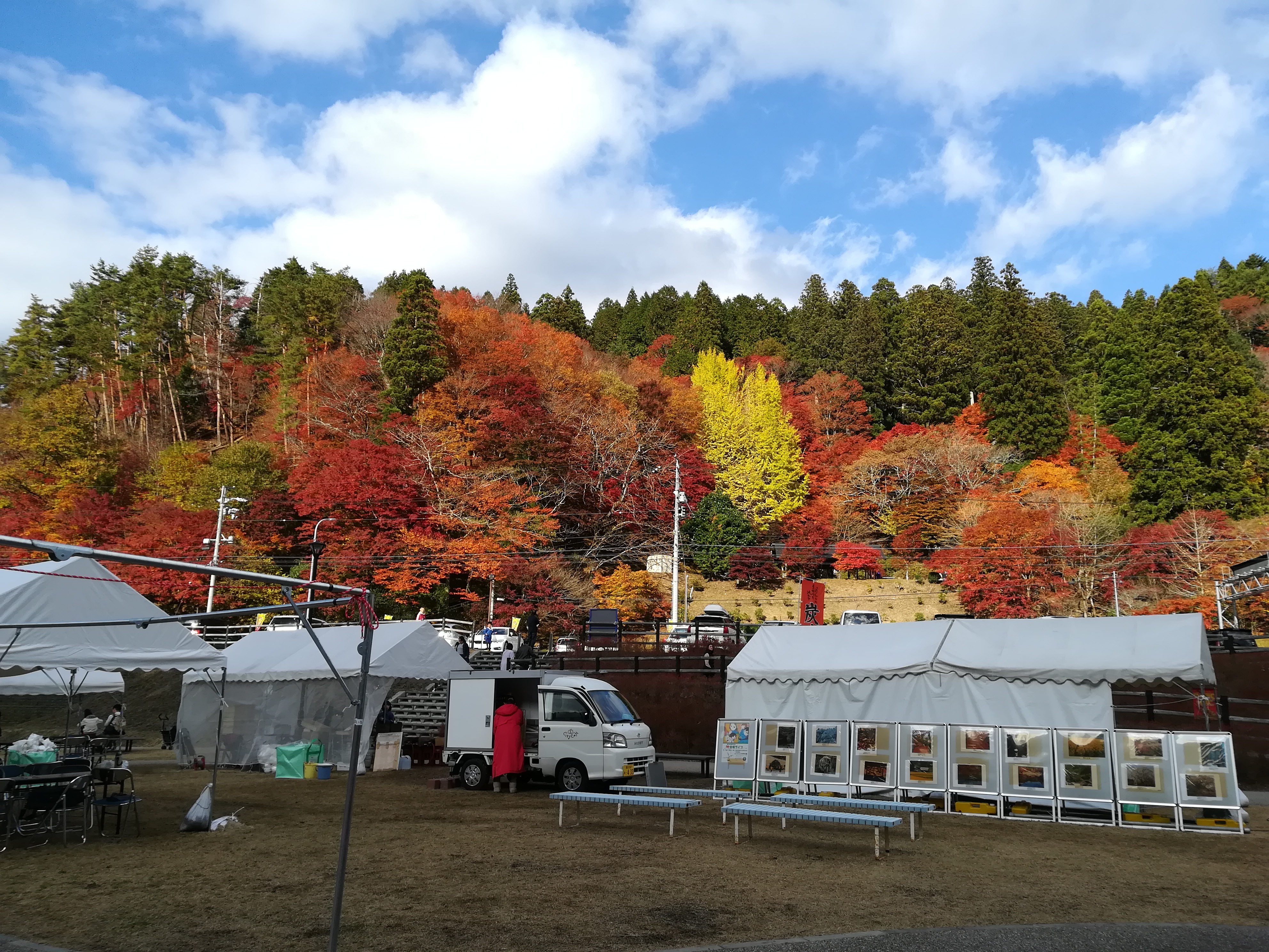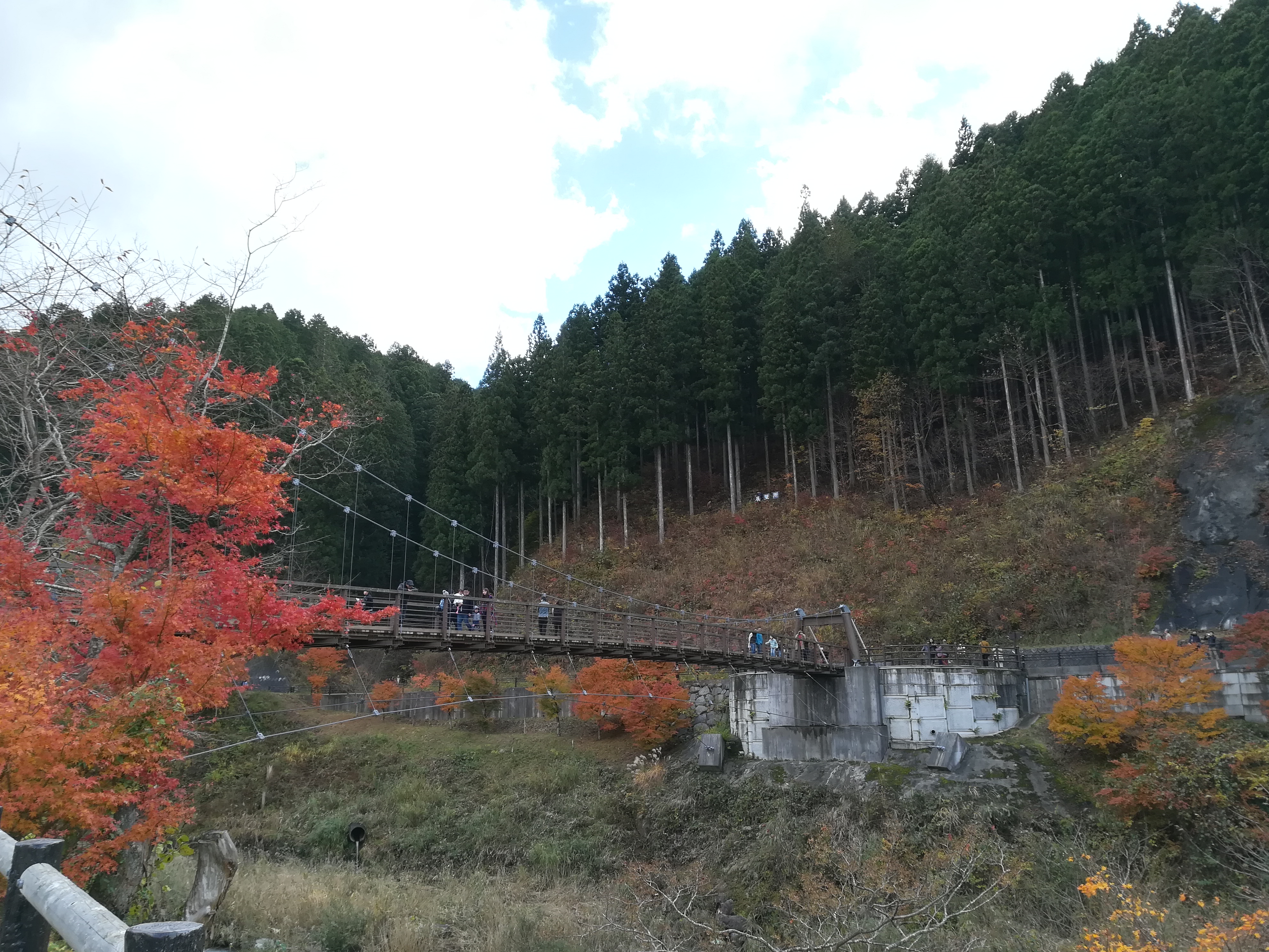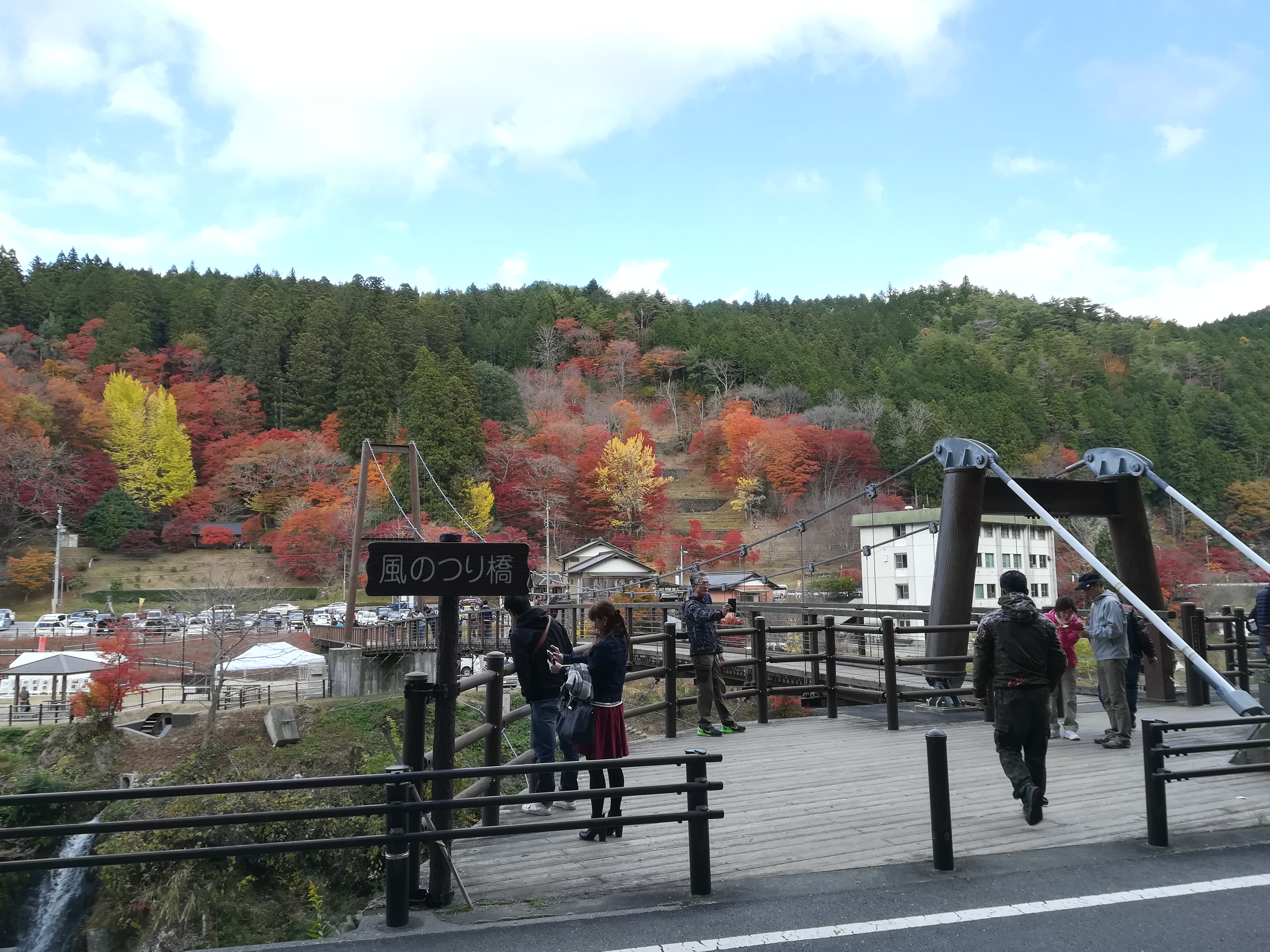 出店が出ていたりしましたが、お腹いっぱいなのでスルーし、紅葉とつり橋を満喫しました。