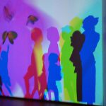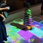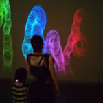 これは壁に映っている映像が体の動きに合わせて動き、いろんな絵に変化していきます。