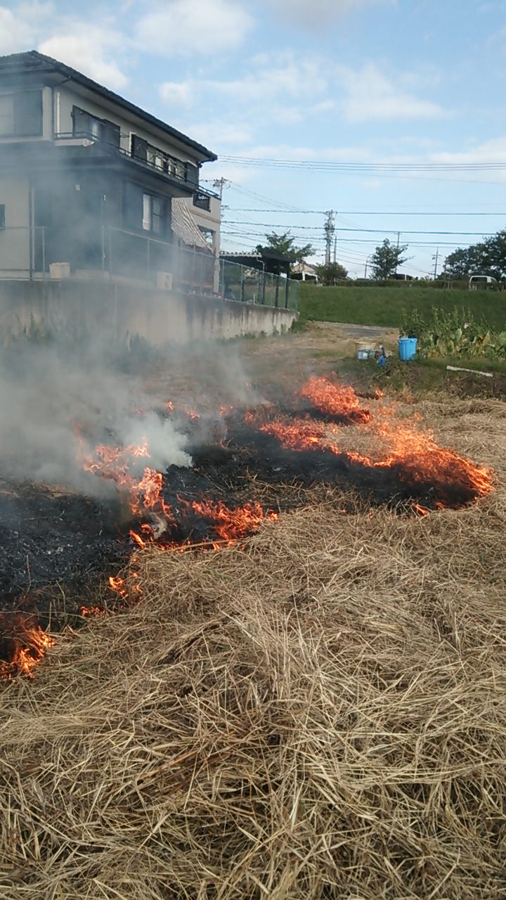 最後にメインイベントで枯れ草に火をつけて野焼きしました。