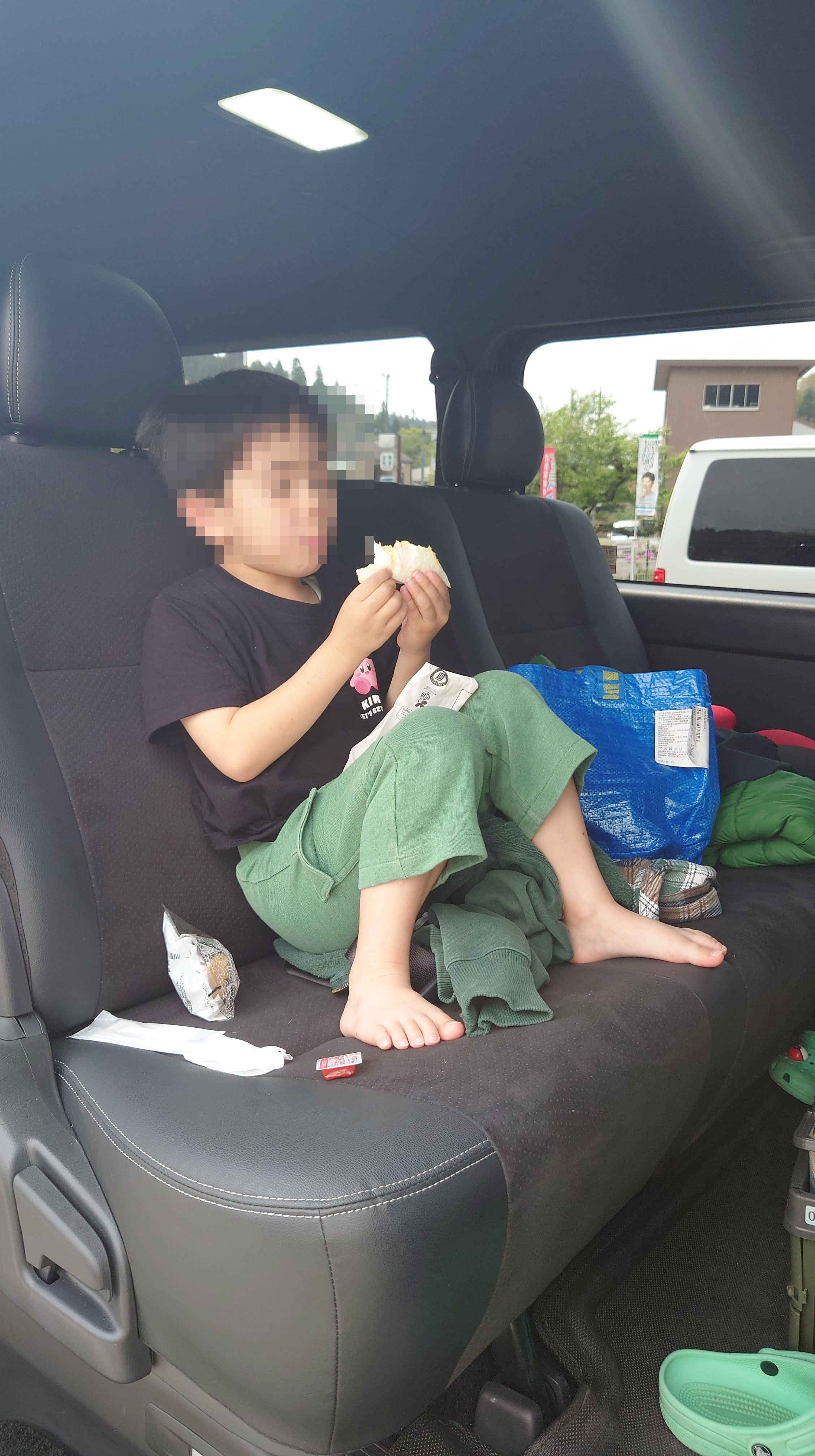 道中でお昼ご飯を食べようと思っていましたが、どこもいっぱいで諦めてコンビニ飯です。