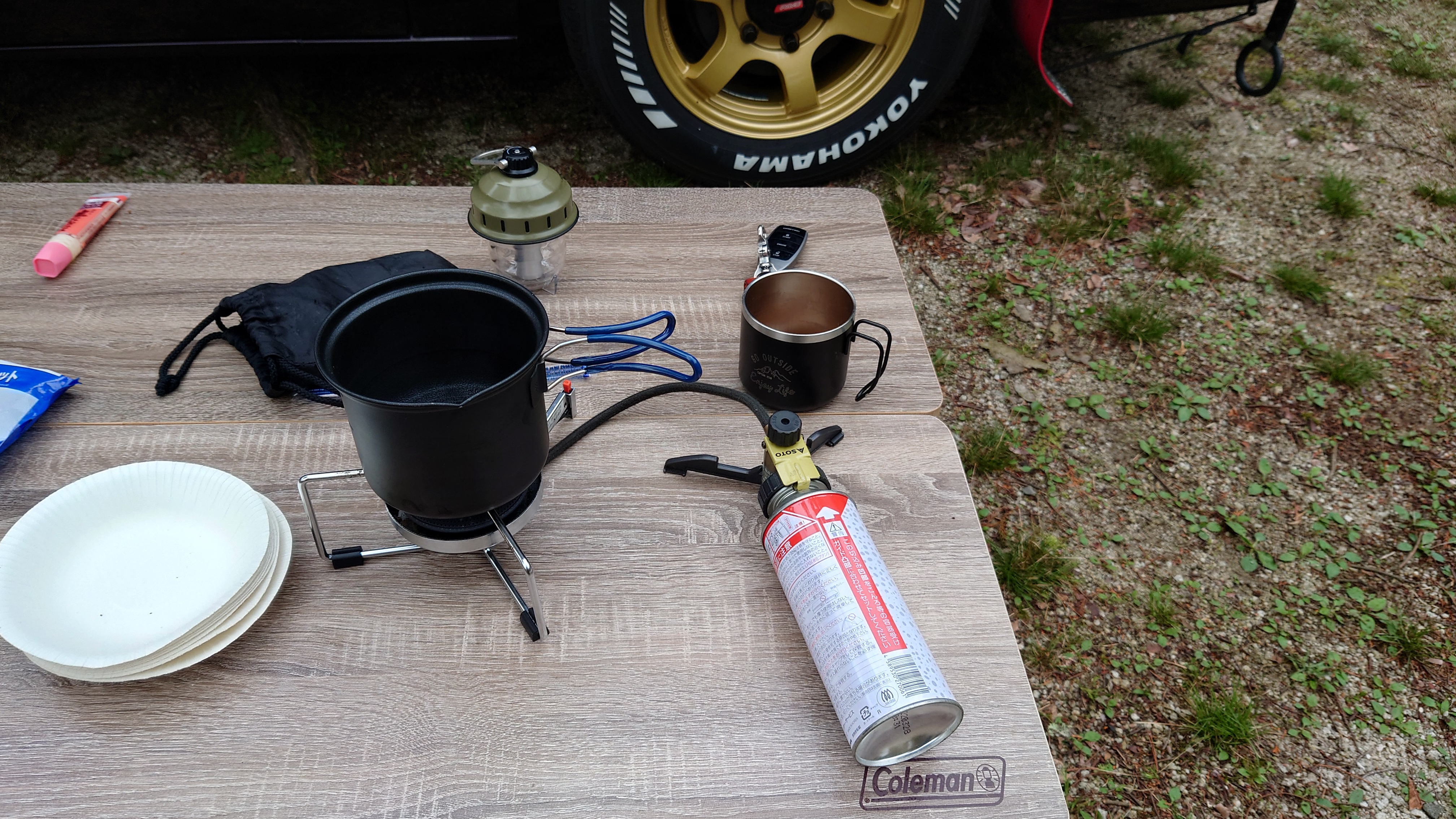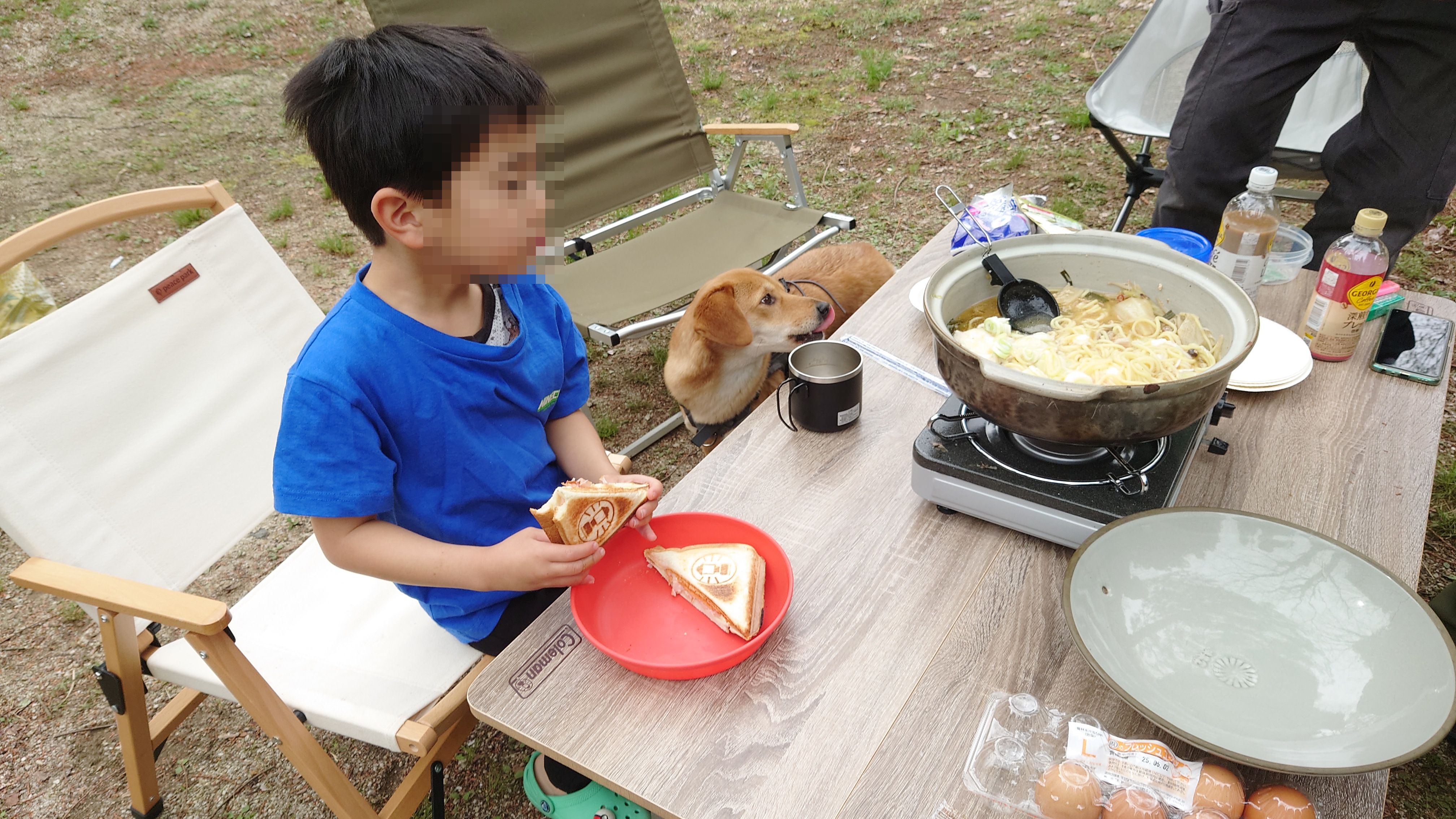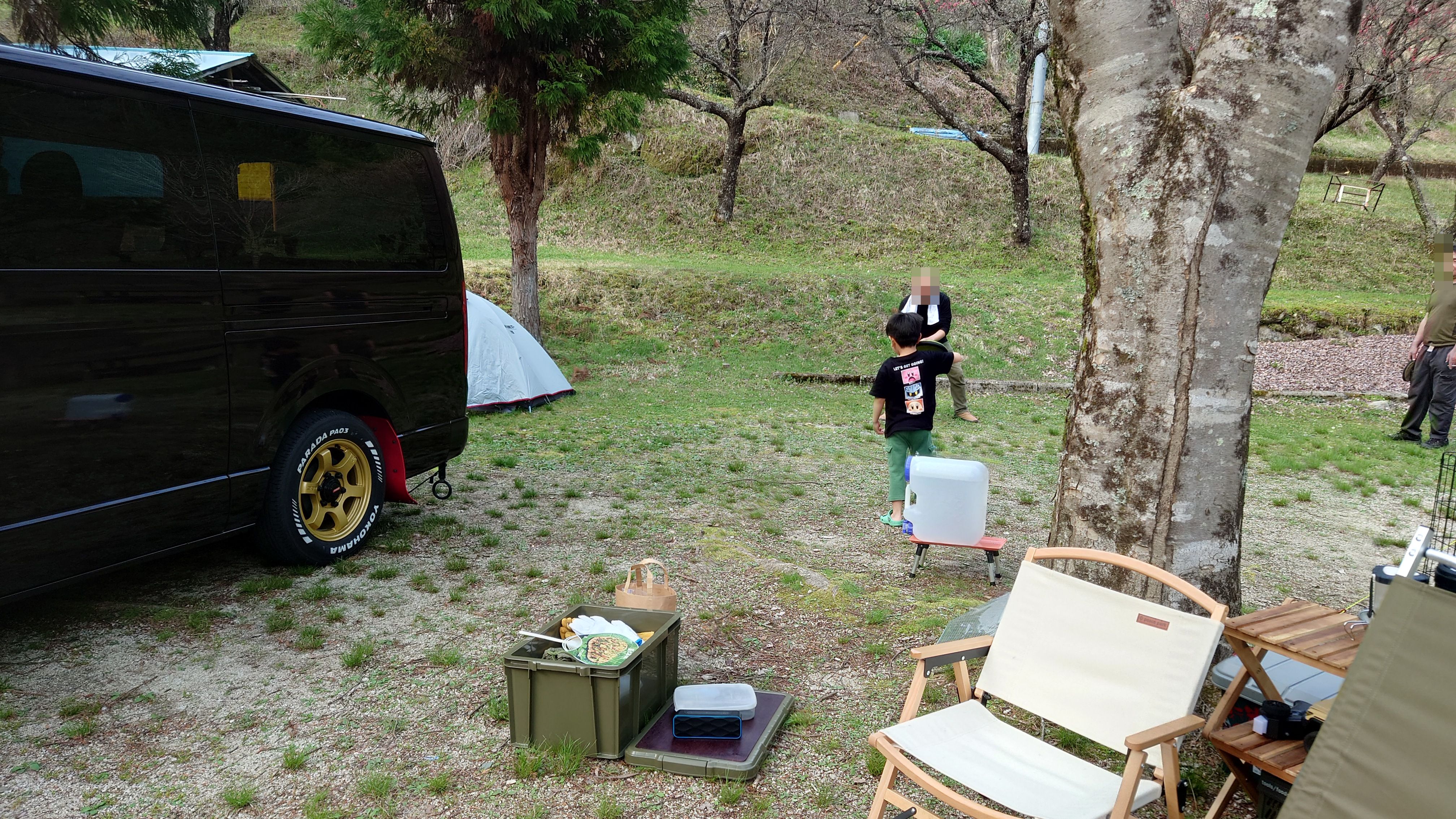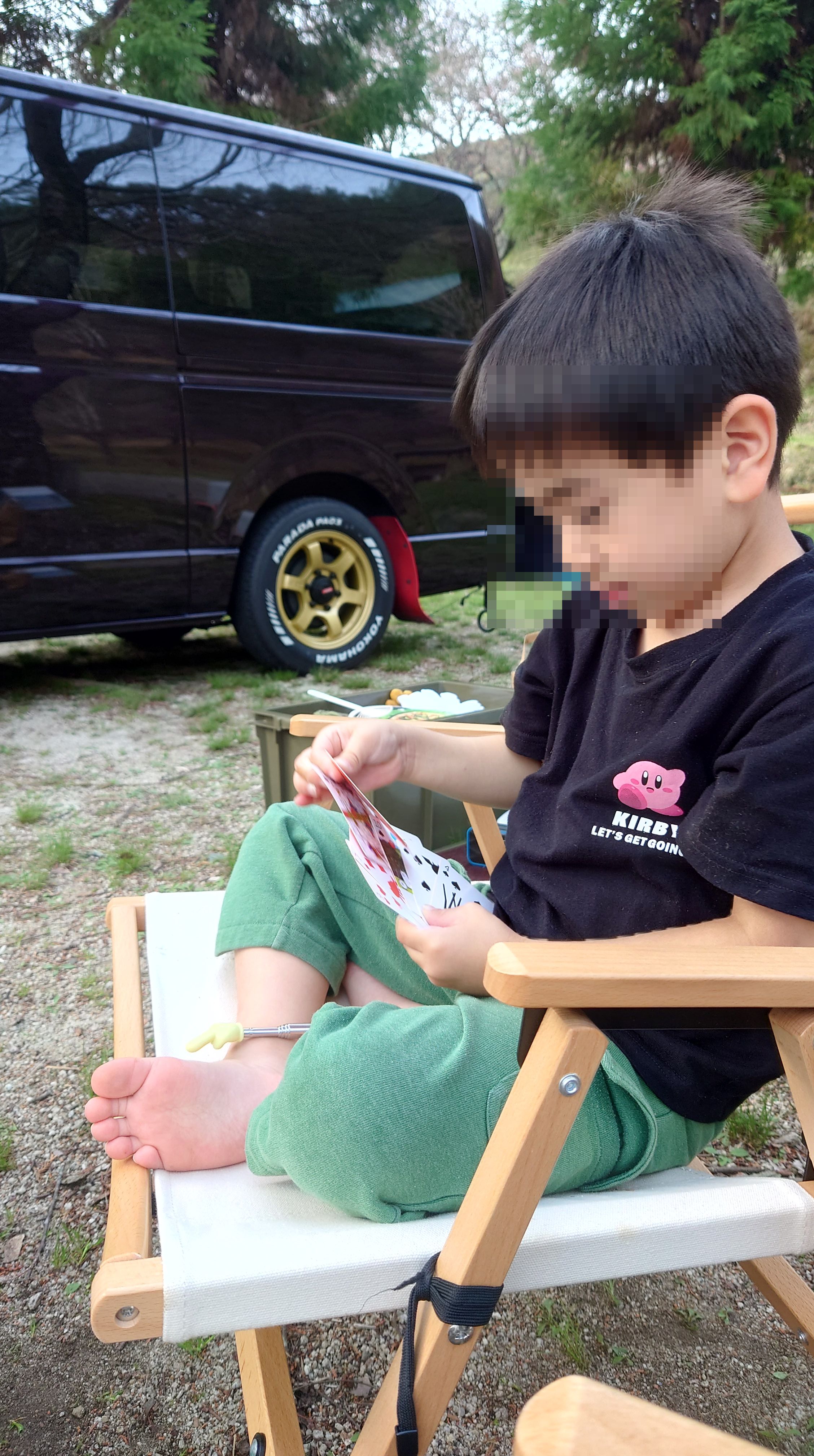 当初、一人でカブに乗って行くつもりでしたが、坊主が「父ちゃん明日どこ行くの?」と前日に聞いてきたので「一緒にキャンプ行くか?」と返したら、「行く!!」っていうので、急遽車に切り替えて、出発することにしました。