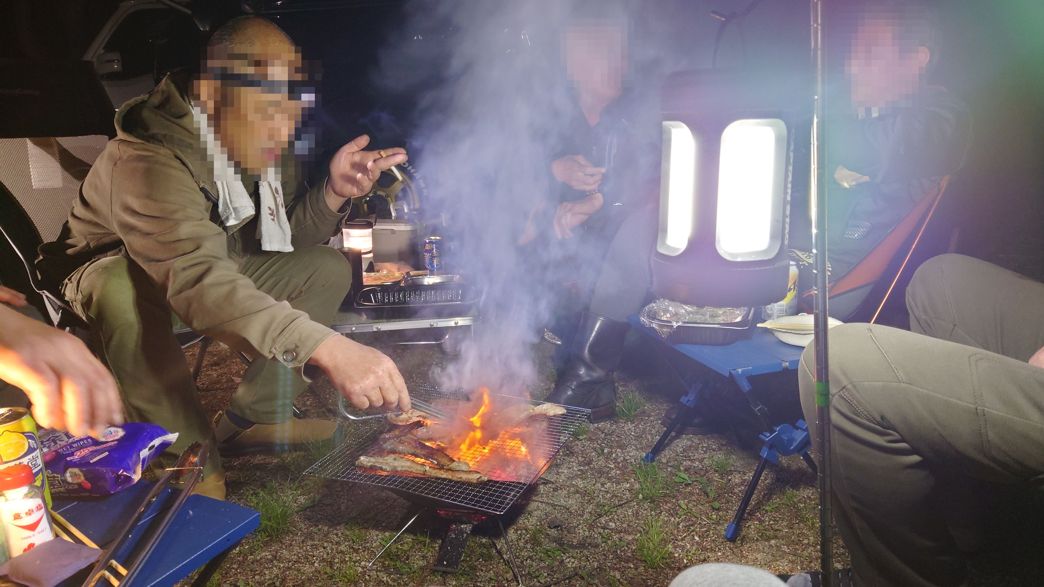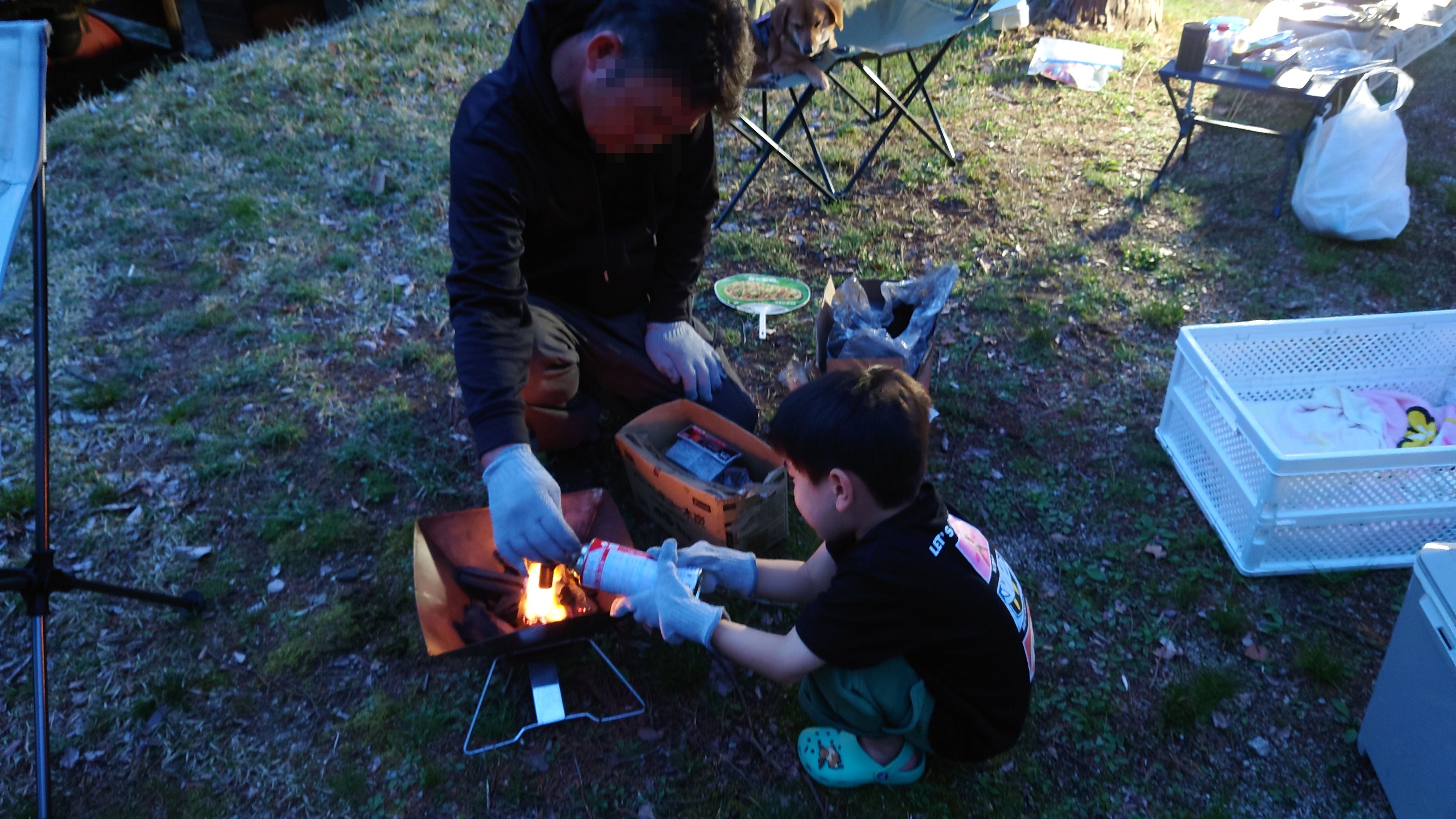 日が暮れてきたら、火起こしも手伝ってました。
