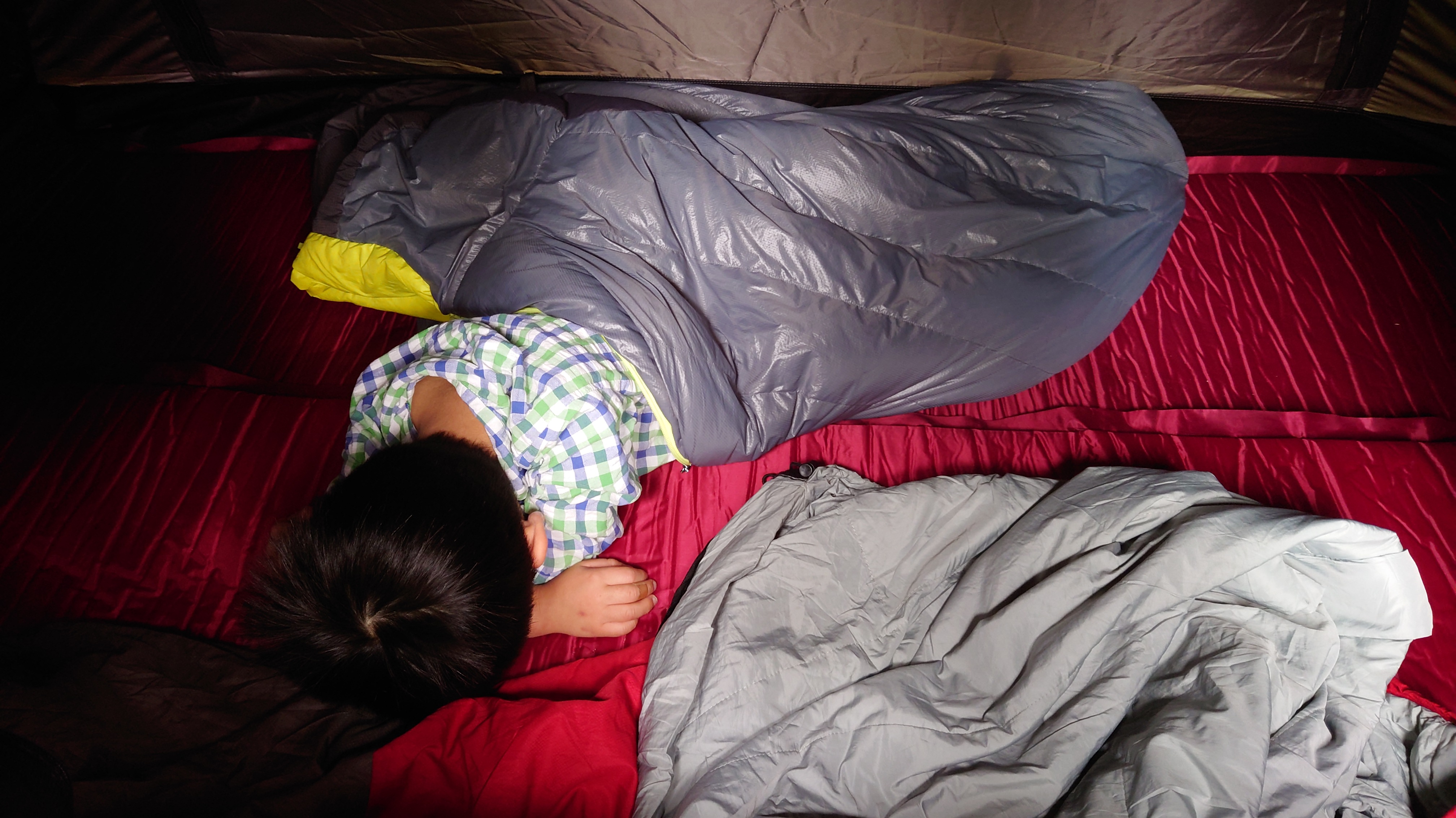 まだ坊主が小さいので、ソロ用のテントでも二人で寝れますね。