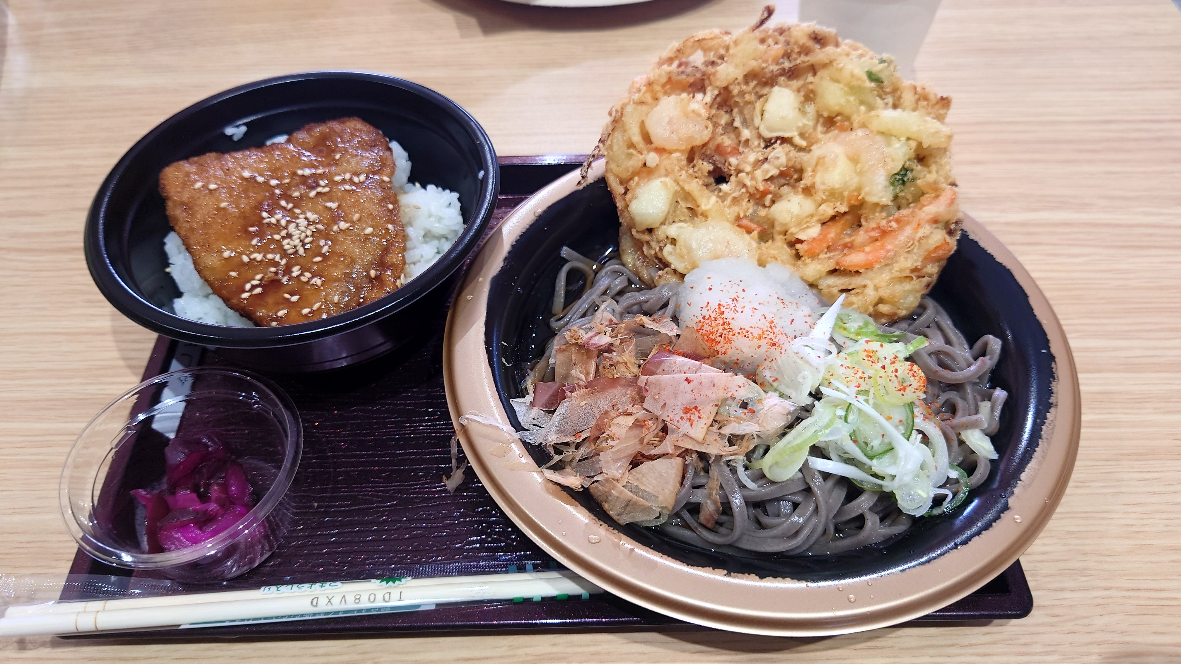 父ちゃんはソースかつ丼とかき揚げそばにしましたが、ハンバーガーの方がよかったかな…