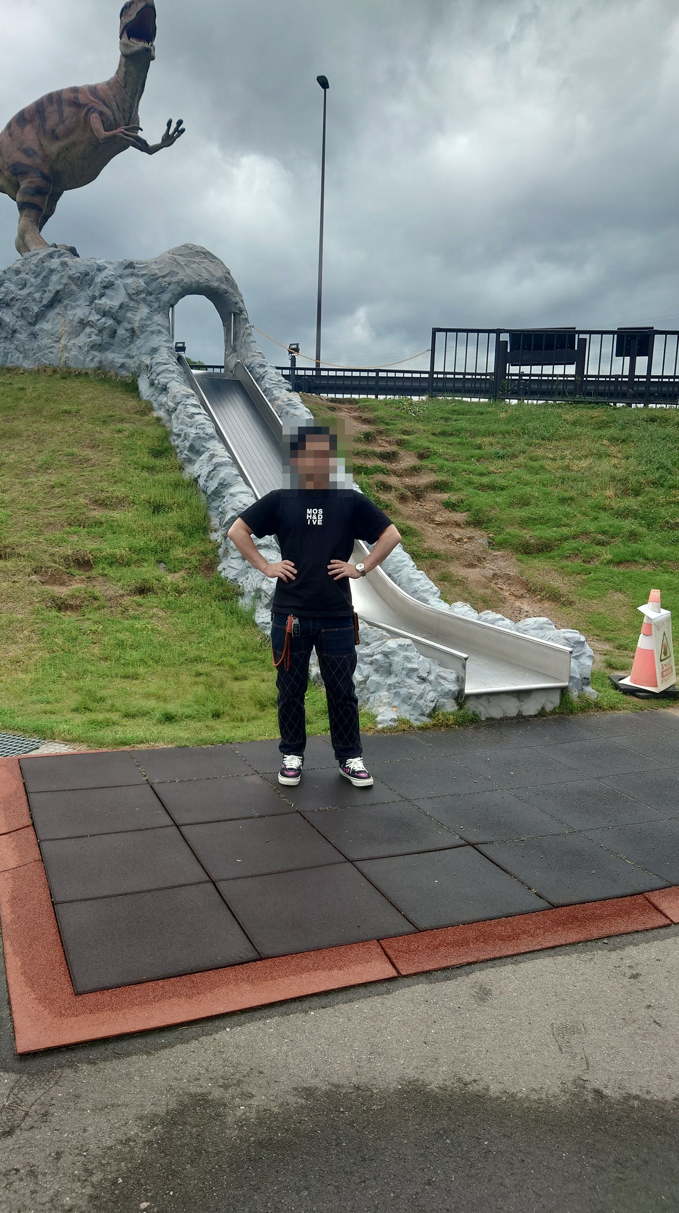 お腹いっぱいになった後は、裏にあった恐竜の頭で遊んだり、