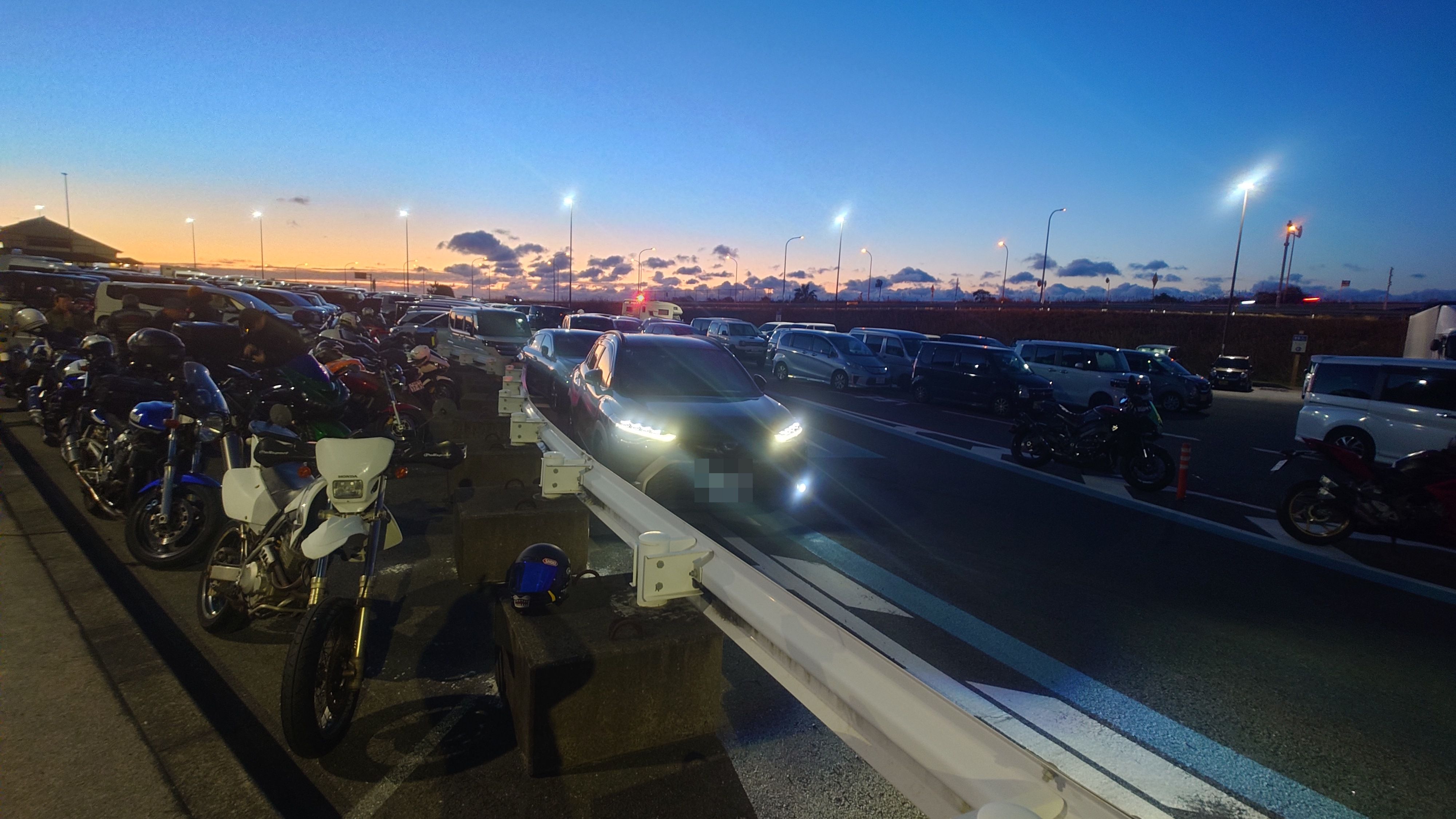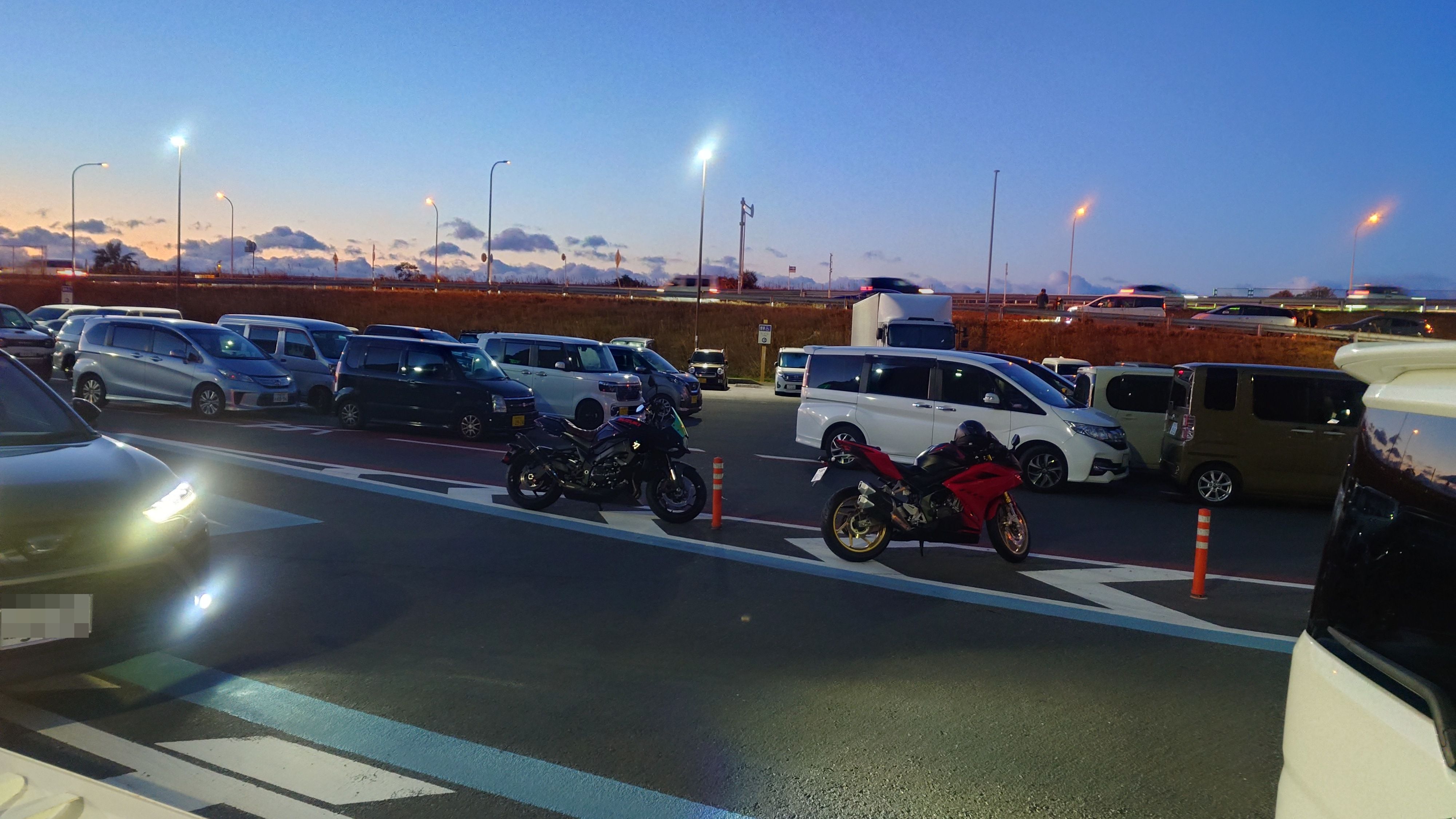 車とバイクでごった返していました。